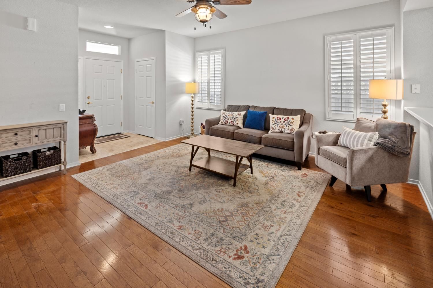 Great opportunity to live the dream in Sun City at an entry level price! Warm and inviting 2 bedroom/1.5 bath with large profile slate and wood flooring throughout Charming and quaint Mariposa Plan with Shutters throughout including the Slider! The kitchen is so quaint and charming with the red brick accent wall. And finally a beautifully designed entertainment center for a large TV! The backyard is a clean slate on which you can put your creative stamp! Enjoy the proximity of the Orchard Creek Lodge with all it's enriching activities and adventures. The Lincoln Hills Compass Magazine is available upon request!