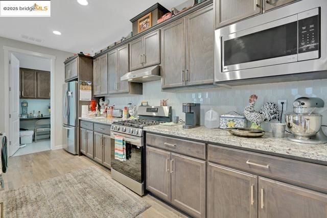 Welcome to this beautifully upgraded 1,569 square foot home in the desired Luminescence at Liberty, a 55+ senior active living community, featuring 2 spacious bedrooms and 2 lovely bathrooms. Thoughtfully designed for modern living, this home boasts a range of high-end finishes and functional options to elevate your lifestyle. Step into the heart of the home, where the kitchen is adorned with luxurious granite countertops and a full tile backsplash, providing a clean and elegant backdrop for your culinary creations. The upgraded LG appliances package ensures you'll be cooking in style. The adjacent gathering and dining rooms flow seamlessly with rich laminate wood flooring, creating an inviting atmosphere perfect for entertaining. This home also features an office space with large windows to maximize natural light and convenient access to the patio space. Step outside to the covered patio with fans that offer a perfect spot for morning coffee or evening relaxation, no matter the weather. Don't miss the opportunity to own this stunning Bungalow-style home with top-tier upgrades and ample living space, with exclusive access to so many community amenities and activities for your enjoyment.