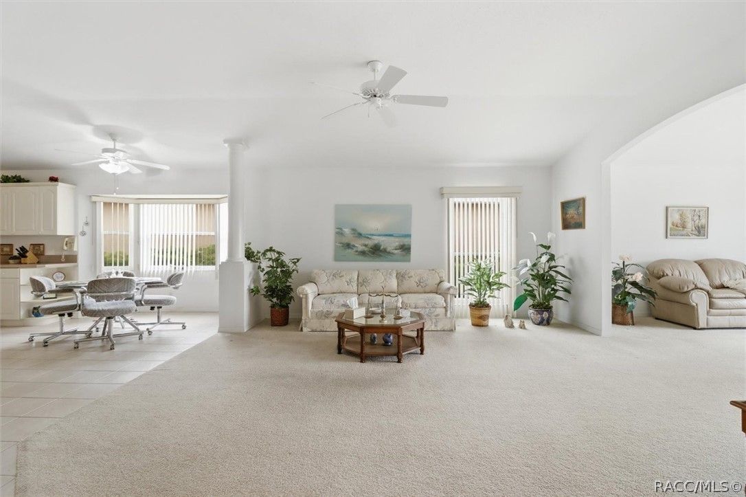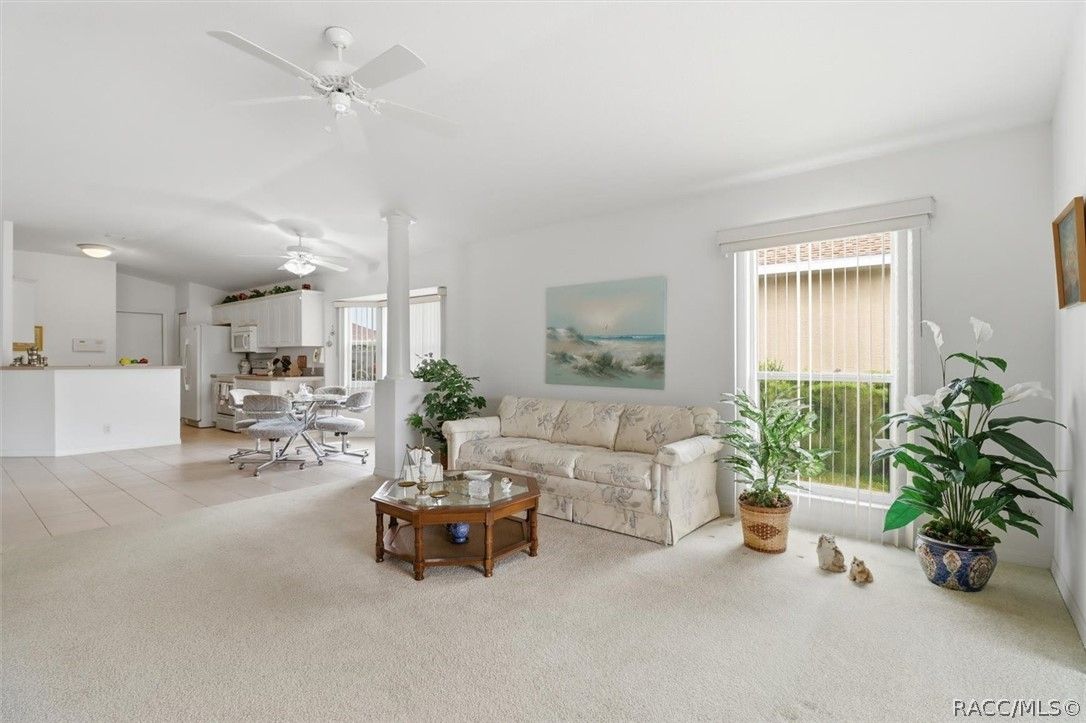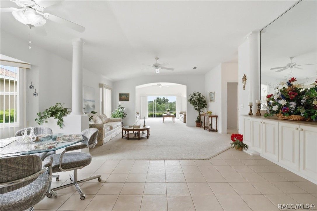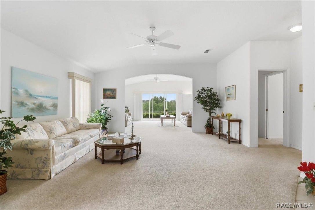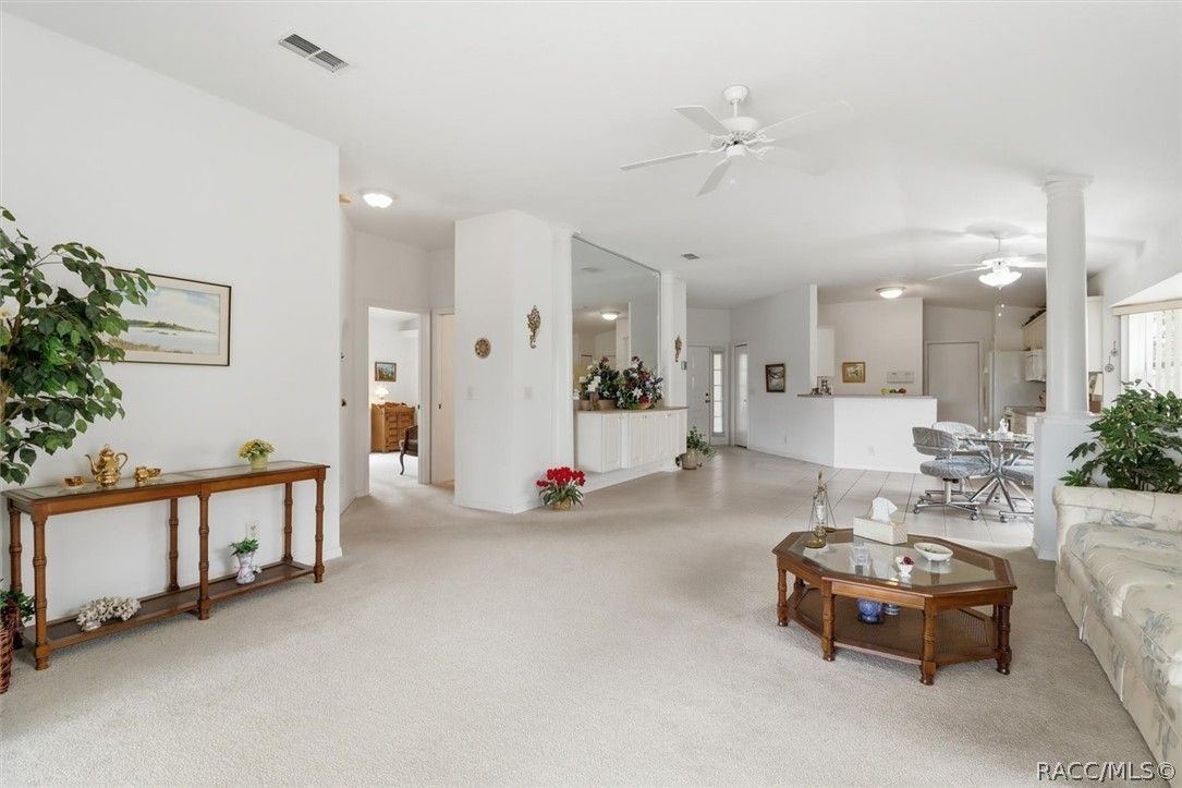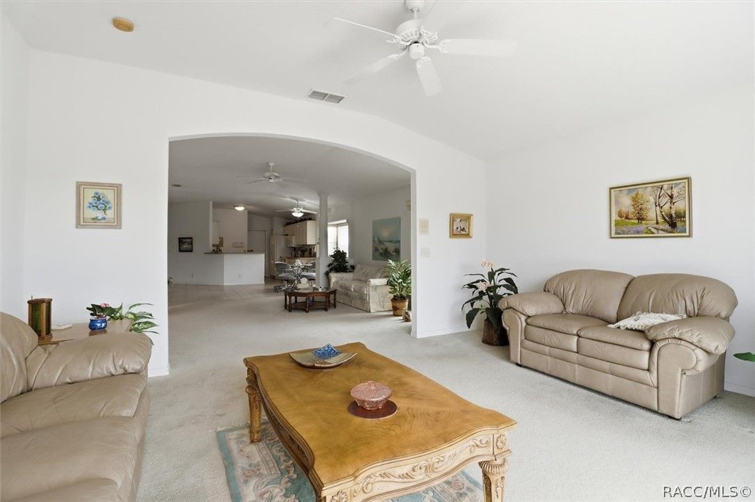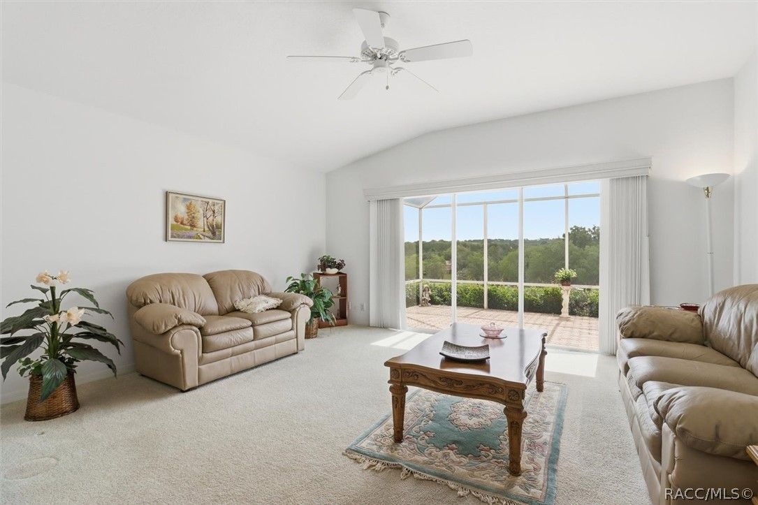 This home features a customized interior floor plan within the Brentwood community, originally modified during construction to enhance living space and functionality, resulting in a distinctive and practical layout. Enjoy golf course living with wide-open views and a comfortable, flowing design, with main living areas positioned to capture the scenery and an extended lanai offering added privacy and a peaceful 180-degree view of the course. A versatile bonus room can serve as a third bedroom, office, or dining area. The primary suite includes a large walk-in closet and walk-in shower, while the guest bedroom provides comfortable accommodations as well as a second full bath for visitors. Recent updates include a new lanai screen, HVAC service, and a roof inspection indicating good condition. Additional features include a built-in intercom system and a two-car garage. Maintenance-free living includes access to Citrus Hills Golf & Country Club amenities, including golf, clubhouse, pool, fitness center, and social activities.