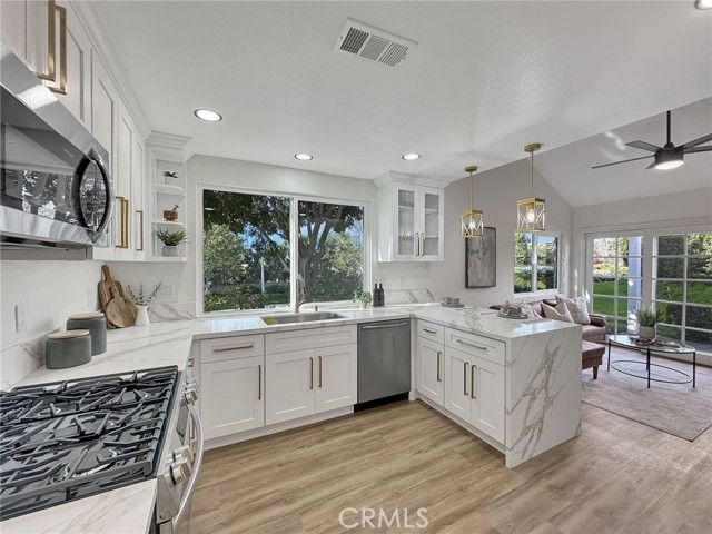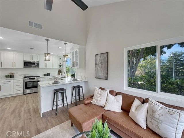 Beautifully Upgraded Home in the 55+ Community of Casta Del Sol*** Welcome to this exceptional single-detached residence located in the prestigious gated community of Casta Del Sol. Thoughtfully designed for comfort and style, this home features a spacious floor plan with the primary suite conveniently located on the main level. The remodeled primary bathroom showcases a luxurious double-sink quartz vanity, while a generous secondary bedroom is perfect for guests or a home office. A large remodeled guest bath adds convenience and functionality. The kitchen is a true showpiece, offering quartz countertops, shaker cabinetry with soft-closing doors and drawers, and stainless steel appliances. Adjacent to the kitchen, a cozy family room opens to a private patio—ideal for outdoor dining and entertaining. The dramatic living room boasts soaring vaulted ceilings and a custom-tiled fireplace, creating a bright, open ambiance perfect for both relaxing and hosting gatherings. Upstairs, a versatile loft with its own full bath provides the flexibility of a third bedroom, home office, or bonus retreat, complete with an additional storage or sleeping area. Nestled on a quiet cul-de-sac, this home enjoys serene views of surrounding trees and the rolling hills leading toward Lake Mission Viejo, enhancing the sense of peace and natural beauty. Don’t miss the opportunity to experience resort-style living in one of Mission Viejo’s most sought-after 55+ communities, where residents enjoy exceptional amenities, a vibrant social atmosphere, and the best of Orange County living.
