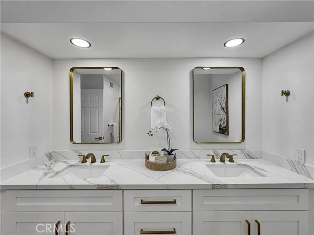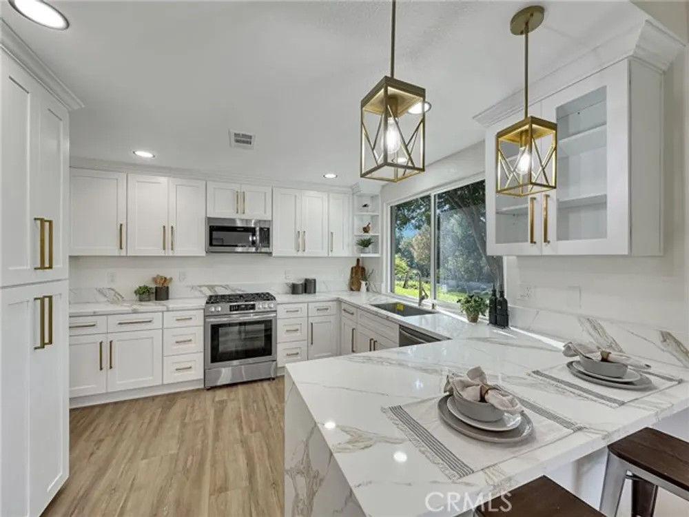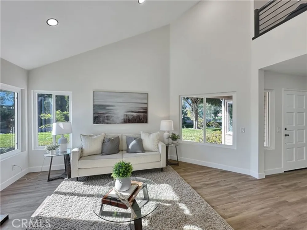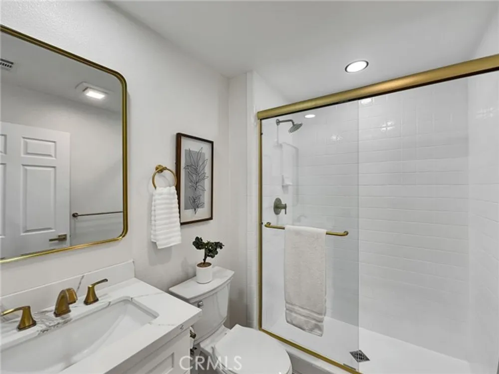 Beautifully Upgraded Home in the 55+ Community of Casta Del Sol*** Welcome to this exceptional single-detached residence located in the prestigious gated community of Casta Del Sol. Thoughtfully designed for comfort and style, this home features a spacious floor plan with the primary suite conveniently located on the main level. The remodeled primary bathroom showcases a luxurious double-sink quartz vanity, while a generous secondary bedroom is perfect for guests or a home office. A large remodeled guest bath adds convenience and functionality. The kitchen is a true showpiece, offering quartz countertops, shaker cabinetry with soft-closing doors and drawers, and stainless steel appliances. Adjacent to the kitchen, a cozy family room opens to a private patio-ideal for outdoor dining and entertaining. The dramatic living room boasts soaring vaulted ceilings and a custom-tiled fireplace, creating a bright, open ambiance perfect for both relaxing and hosting gatherings. Upstairs, a versatile loft with its own full bath provides the flexibility of a third bedroom, home office, or bonus retreat, complete with an additional storage or sleeping area. Nestled on a quiet cul-de-sac, this home enjoys serene views of surrounding trees and the rolling hills leading toward Lake Mission Viejo,