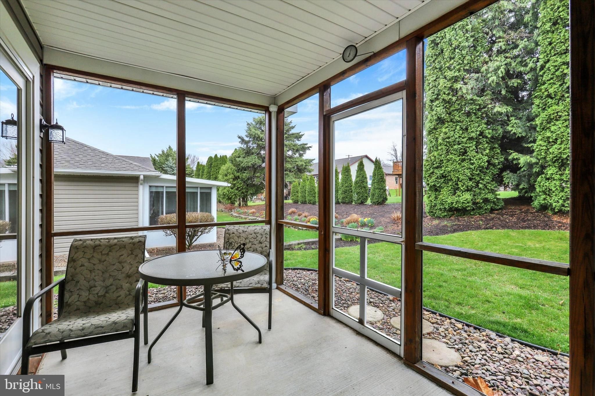Welcome to this beautifully maintained single-story 2-bedroom, 2-bath villa in the highly sought-after Penn National Golf Course community. Step inside to a bright, open layout featuring vaulted ceilings, a spacious living room, and an inviting kitchen with a sunny breakfast area. The primary suite offers a private retreat with a full bath and walk-in closet, complemented by a formal dining room and a flexible office space. Recent upgrades—including fresh paint, stylish quartz countertops, and new LVT flooring—add modern appeal throughout. Relax on the charming front porch with scenic views, or unwind in the screened-in rear porch. With an oversized two-car garage, no HOA, and a prime location, this home truly has it all. Lovely walkable community offers 36 holes of 4-star golf, outdoor pool, tennis/pickleball, yoga, community garden, hiking in Michaux State Forest, 40 + social clubs, restaurant/bar, coffee shop, and so much more! See Pro Shop for membership details.