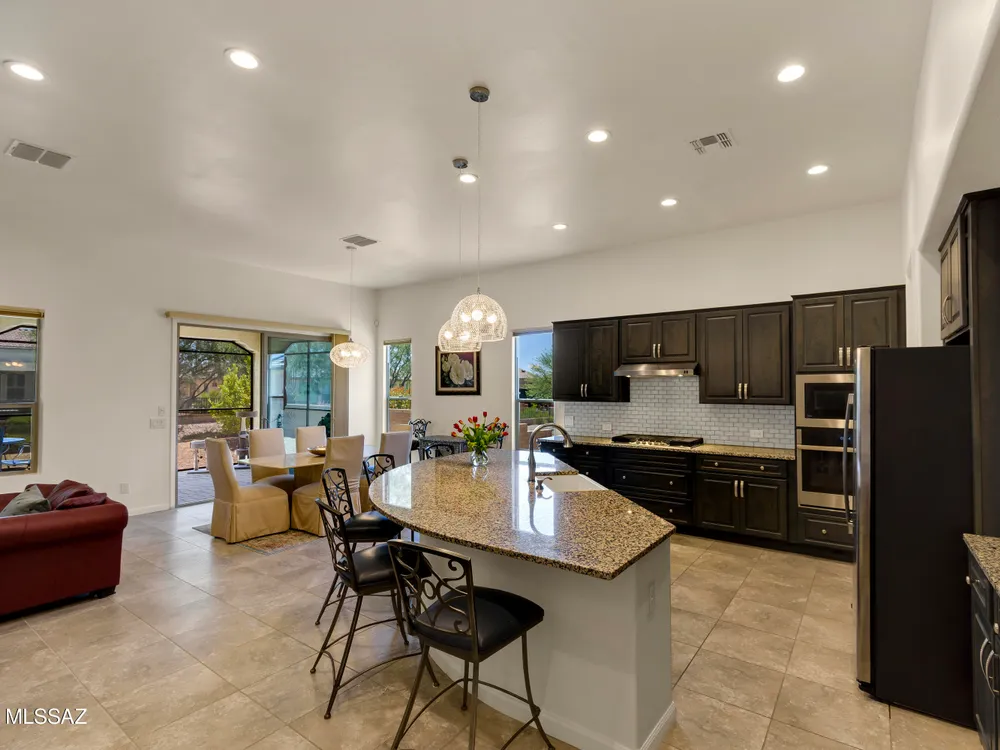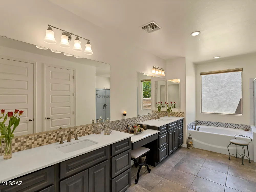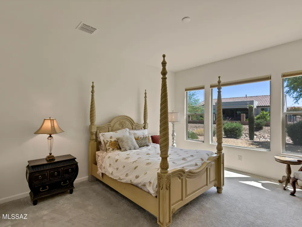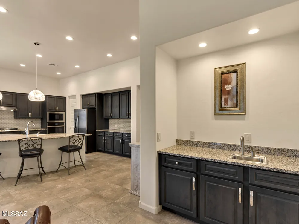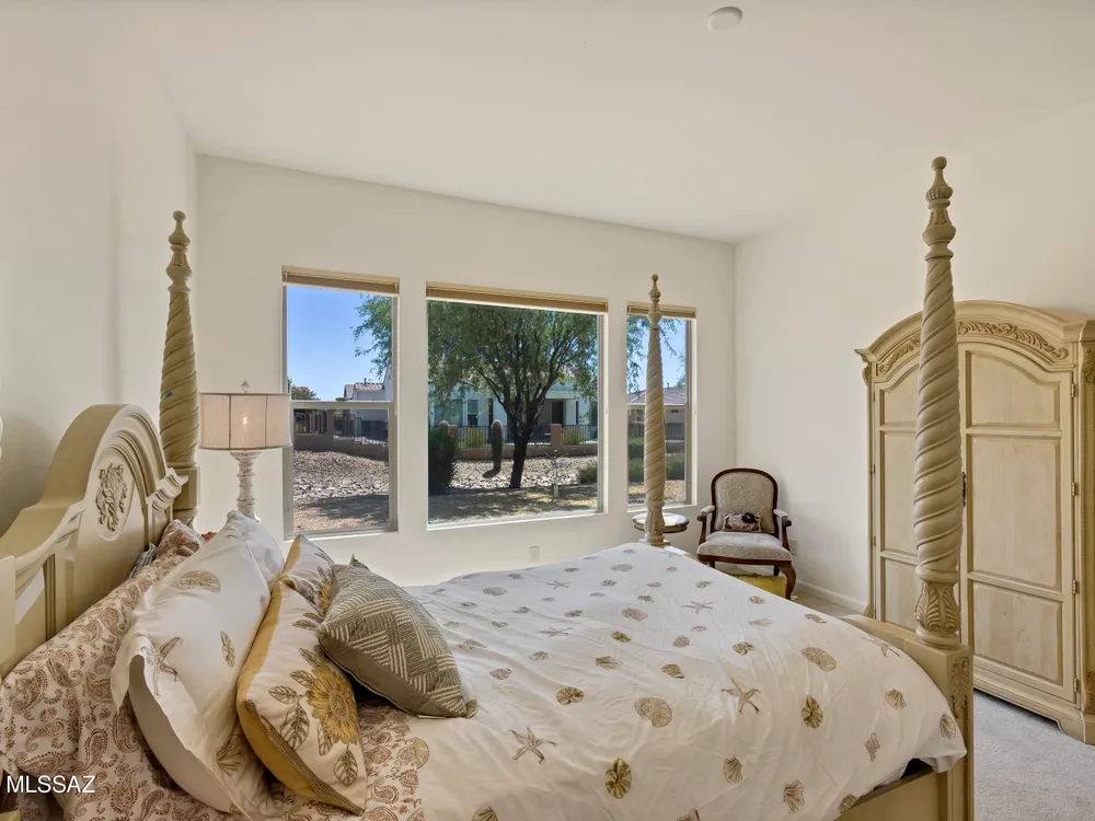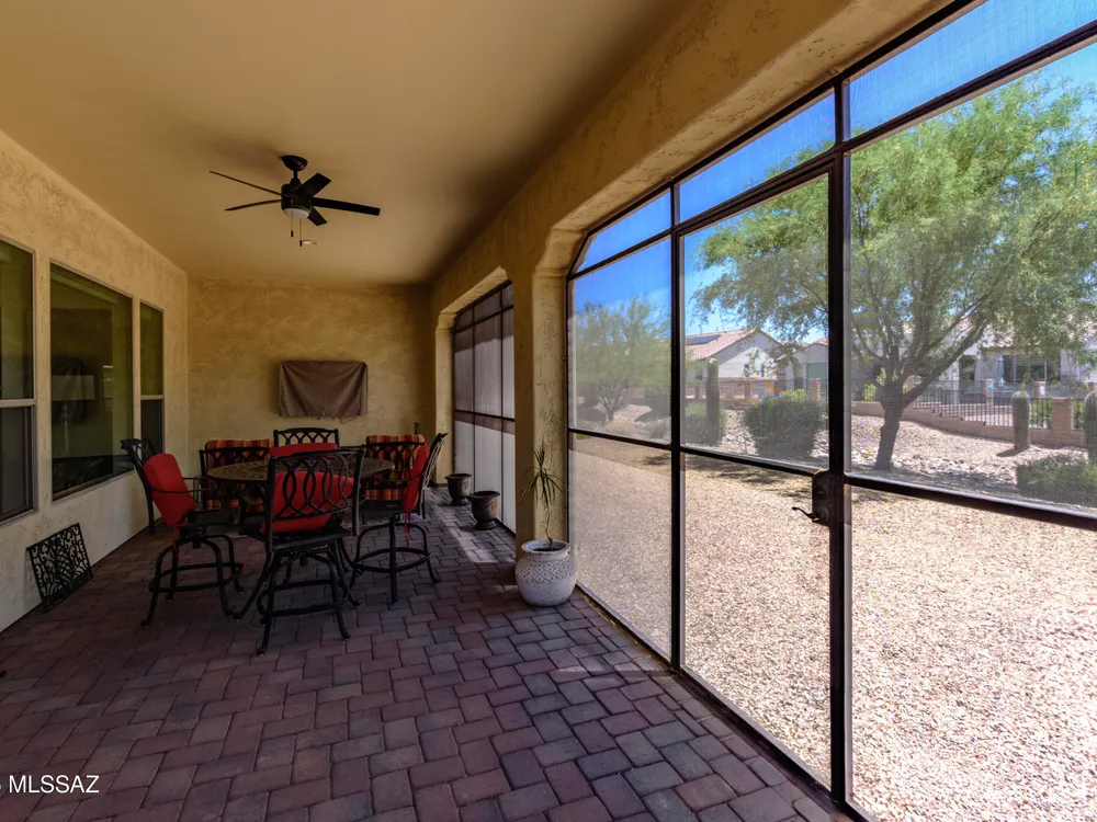 $12,000 price improvement and seller will pay $3008 Capitol improvement fee with acceptable offer. Stunning light & bright 2021-bulid home in the sought after 55+ Quail Creek Country Club! This upgraded 3-bed, 3.5 bath residence features ensuite bedrooms and an attached casita for guests or hobbies. Enjoy the screened in Arizona room perfect for those hot sunny days and cool evenings. Custom tile flooring throughout. A chef's kitchen with granite counters, Blanco farmhouse sink, 41'' uppers, under-cabinet lighting and a full height designer backsplash and door pulls. The spacious primary bath offers a quartz double vanity, soaking tub, walk-in shower and large custom built closet & linen closet. Extras include a walk in pantry, wet bar, large laundry room, custom media the great room..