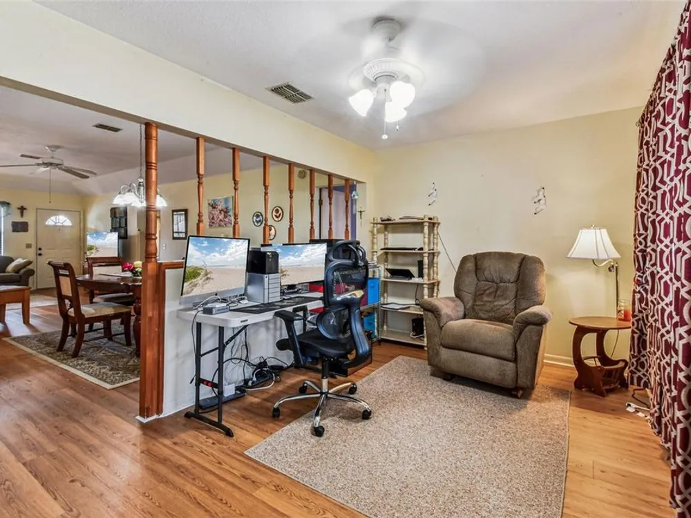 Huge Price Adjustment! Welcome to this beautifully maintained 2-bedroom, 2-bath home in one of the most desirable 55+ communities! Featuring a brand-new 2025 roof, this move-in-ready gem is designed for comfort, convenience, and an active lifestyle. Step inside to a warm and inviting atmosphere, where the spacious open living and dining area perfectly blends elegance with functionality. The bright kitchen offers ample cabinetry, while a separate office provides the ideal workspace and leads directly to the screened back lanai—perfect for relaxing with a morning coffee or evening breeze. Your private primary suite is a true retreat, complete with two walk-in closets and an en-suite bathroom offering generous counter space for added comfort. Enjoy both a screened front porch and a screened back porch, providing multiple options for taking in the Florida weather. Resort-style living made easy: With low HOA fees that include Spectrum cable, high-speed internet, lawn care, and weed control, you can spend less time on chores and more time enjoying life. The interior laundry room, complete with washer and dryer, adds everyday convenience. Roof (2025), Water Heater (2021) A/C (2012). Prime location: Just minutes from the mall, I-4, shopping, dining, and entertainment, you’ll have everything at your fingertips. Bring your golf cart and experience the welcoming, vibrant Highland Fairways lifestyle!