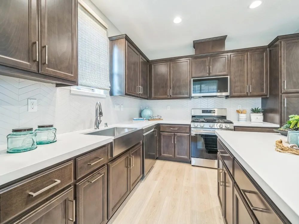 - Dishwasher, Disposal, Electric Water Heater, Free-Standing Gas Range, Free-Standing Refrigerator, Range Hood, Microwave, Self Cleaning Oven