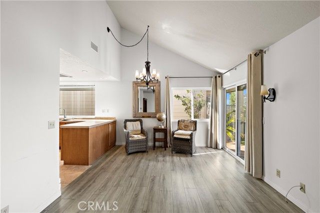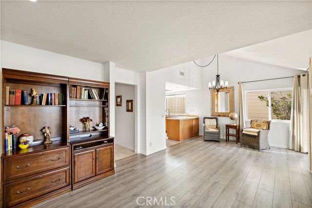 Welcome to 23247 Villena — a truly exceptional retreat perched above it all. This impeccably maintained Monterey floor plan offers 1,818 square feet of refined living, showcasing breathtaking panoramic city lights and Saddleback Mountain views from one of the most elevated and scenic locations in Casta del Sol. Rarely available, this sought-after model blends timeless elegance with thoughtful upgrades designed for both comfort and style. Originally a three-bedroom residence, the home has been beautifully reimagined into a spacious two-bedroom layout, creating an expansive and light-filled family room—perfect for entertaining or relaxing. The flexible design allows for an easy conversion back to a three-bedroom home if desired. The Mediterranean-inspired kitchen is standout, featuring rich tile finishes, a custom backsplash, and high-end appliances, including a refrigerator. It opens seamlessly into the oversized family room, making it ideal for gatherings both intimate and grand. The downstairs primary suite is a serene haven, complete with a sliding glass door that opens to the rear patio—where sweeping views provide a stunning backdrop morning and night. The spacious primary bathroom offers dual sinks and ample comfort. Upstairs, a private bedroom/loft with its own full bathroom provides a perfect guest retreat, office, or creative space. And then—the views. Commanding, unobstructed, and unforgettable. From sparkling city lights to rolling valleys and majestic mountains, this home captures it all. Located within the beautifully landscaped 484-acre Casta del Sol community, residents enjoy mature trees, gentle hills, and an unparalleled resort-style lifestyle. The association offers two recreation centers with amenities including pickleball, tennis, pools, spa/hot tubs, fitness center, lawn bowling, sport courts, clubhouse, billiard room, and more. Front yard maintenance, exterior painting, trash service, and grounds upkeep are all included. As a 55+ community, residents also enjoy membership to Lake Mission Viejo, offering picnic areas, swimming, fishing, and additional recreational facilities. This is more than a home—it’s a lifestyle defined by views, comfort, and community. ?