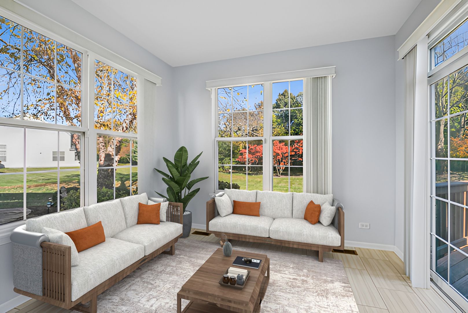 This lovely home is situated on the largest lot in Carillon North and backs to a beautiful tree line, offering added privacy and serenity. The inviting layout features soaring ceilings and abundant natural light, along with a main-floor primary suite and a convenient laundry room for effortless first-floor living in a two-story home. Enjoy the light-filled four-season sunroom and a newly replaced deck. Upstairs, a sprawling loft offers flexible living space in addition to the two additional bedrooms, while the finished basement adds even more versatility with a 4th bedroom, full bath, and generous recreation area and large storage room. Located within the active, gated 55+ Carillon North community, residents enjoy a beautifully maintained setting with amenities such as a conveniently located clubhouse (just a short walk from this home), golf course, indoor pool, fitness center, walking trails, various social activities and more! Combining comfort, space, and community, this home truly offers the best of resort-like living while close to shopping and within an easy 10 minutes to I-94.