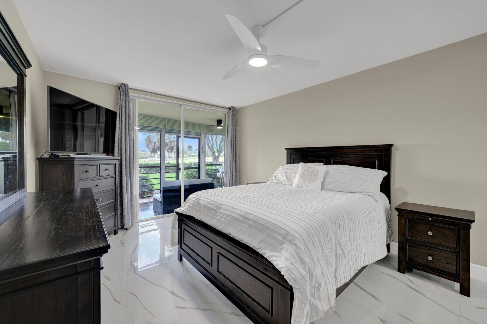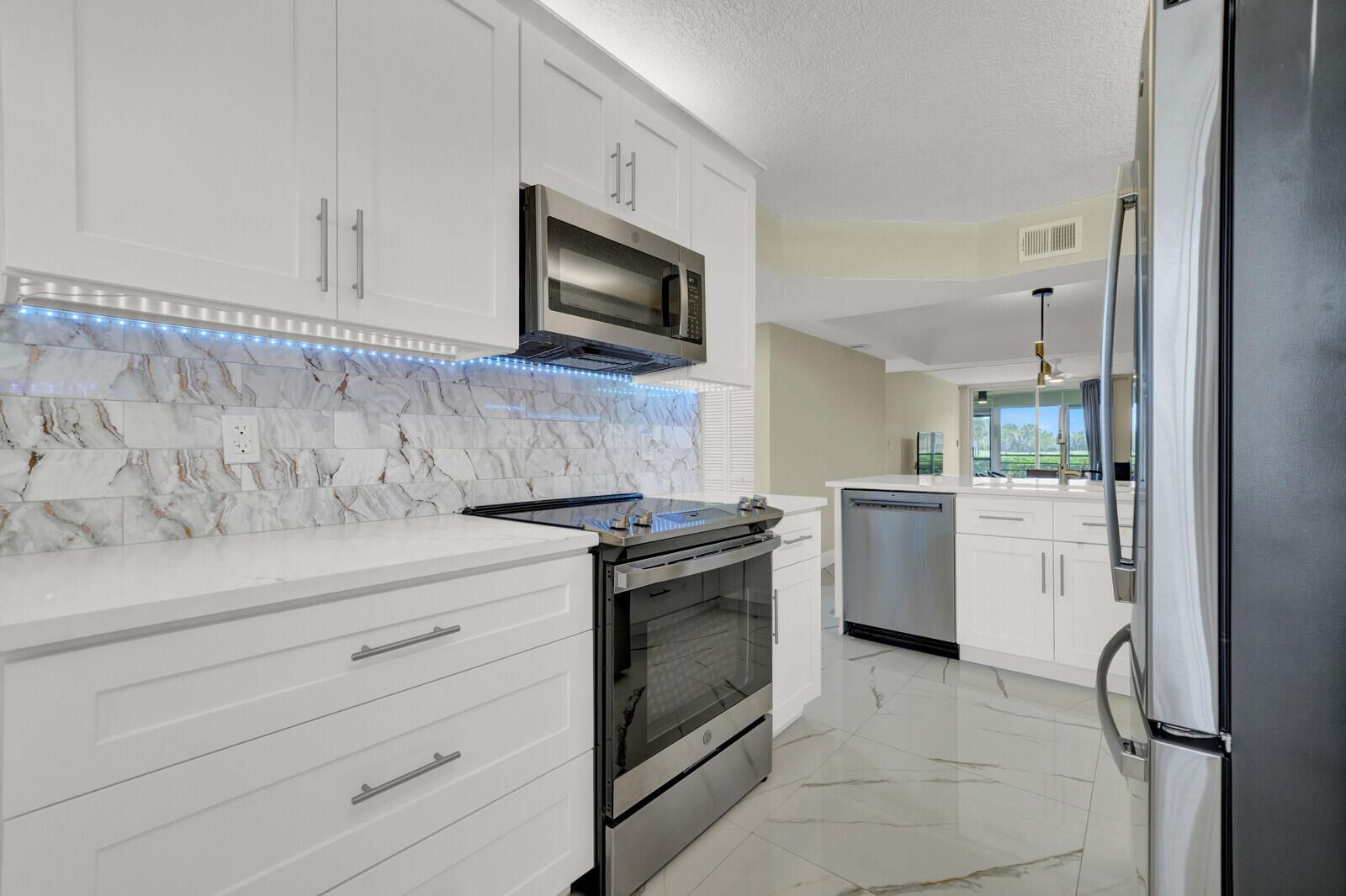 Imagine moving into a home where every detail has already been perfected. This beautiful 2BR/2BA residence offers a blend of sophisticated design & comfort. This home features stunning 30x30 tile flooring & a designer-inspired chef's kitchen equipped with quartz countertops, shaker cabinetry, & gorgeous under-cabinet lighting. Both bathrooms are transformed with chic finishes and illuminated mirrors, with the primary suite offering a custom-optimized walk-in closet. Enjoy total peace of mind with full impact windows, tankless water heater, & new appliances. Living here means more than just a beautiful interior; it's a lifestyle; whether on the tennis or pickleball courts, relaxing in the community resort-style pool or enjoying your own little piece of paradise on your private patio.