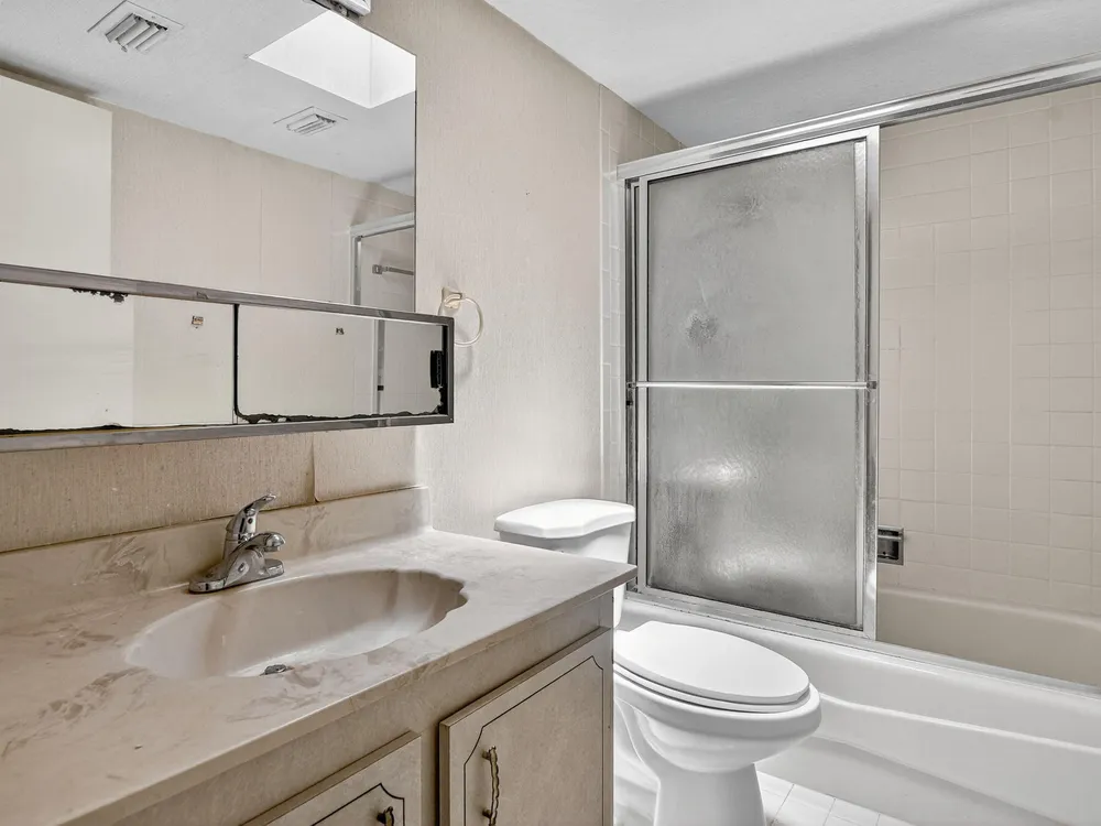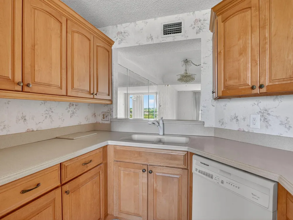 2/2 4th floor unit, skylights in the bathroom, great views. This association has their Engineering and SRS study completed. Great building. This unit needs remodeling and is livable. Great building for an investor flip or owner remodel. New Elevator. Complex is beautifully landscaped and a covered parking space comes with the unit. Heated pool, Tennis and pickleball courts, club house has pool table, card table, library and a meeting room for residents. Active Women's club. Basic cable and HBO, monthly pest control.