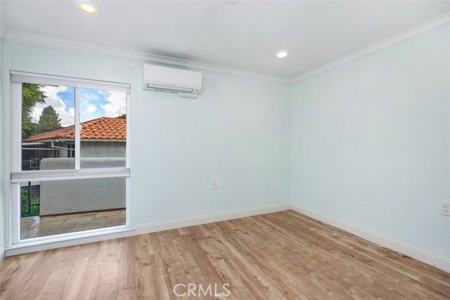 - Crown Molding, Balcony, Quartz Countertops, Unfurnished, Recessed Lighting, Open Floorplan, Primary Bedroom, Main Level Primary, Kitchen, Living Room, Bedroom on Main Level, Primary Bathroom
