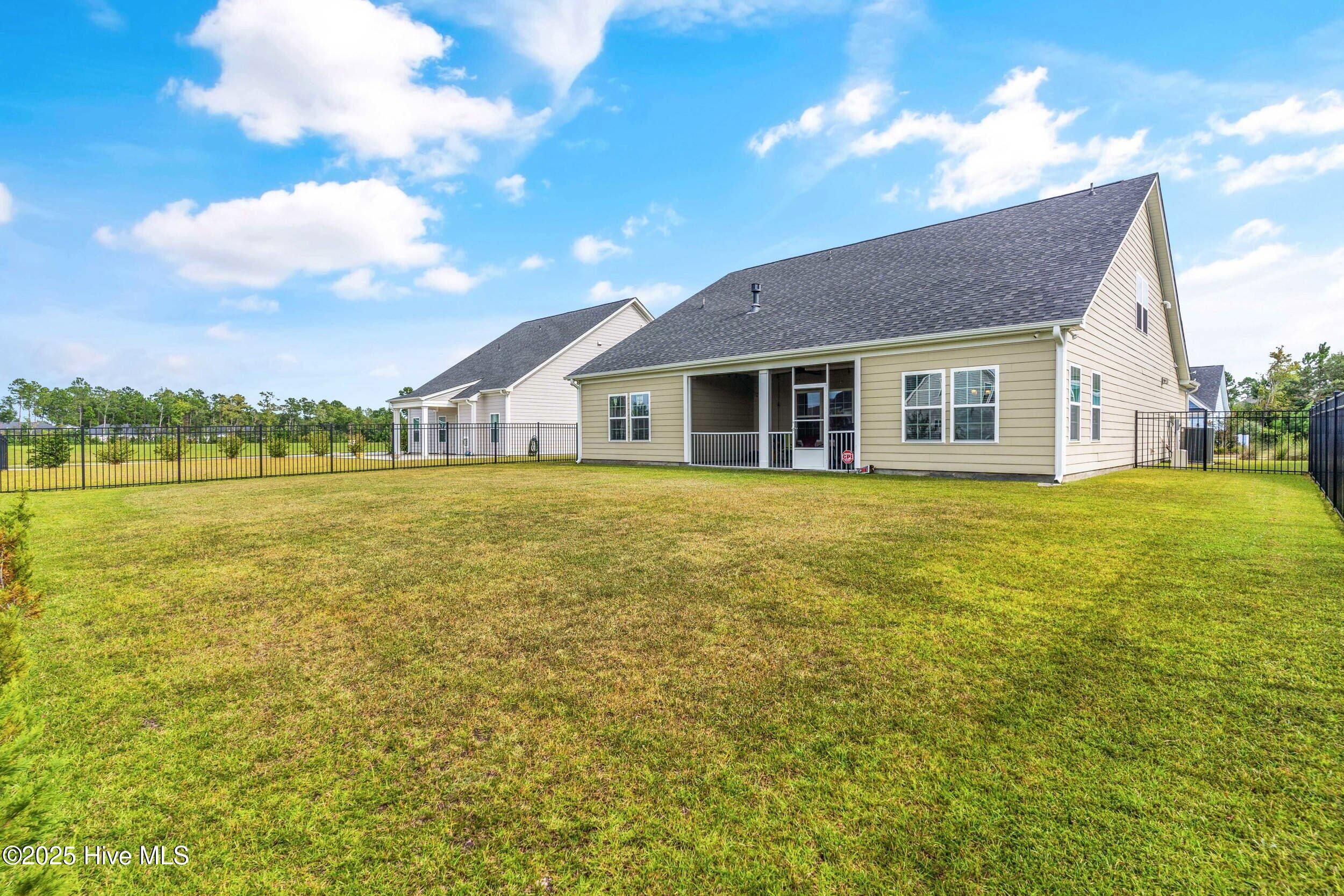 Price Improvement! $569,900.00 for 2966 square feet of living space, fenced in back yard and a community pool. Close to 17 and all the shopping Leland has to offer. This beautiful 4-bedroom, 3-bathroom home, built in 2020, offers the perfect blend of modern design and everyday comfort. Step inside to discover an open-concept floor plan ideal for entertaining or relaxing with loved ones. The spacious primary suite is conveniently located on the main floor, featuring easy access to the laundry room for added convenience. The heart of the home includes a large living room and a dedicated dining area that opens to a screened-in porch,''perfect for indoor-outdoor living. The gourmet kitchen boasts a large granite island, sleek finishes, and a generous walk-in pantry, making it a dream for home chefs and hosts alike. Two additional bedrooms and a full bathroom on the main level provide flexible options for guests, home office space, or family members. Upstairs, you'll find a versatile open bonus room, an additional bedroom, and a full bathroom, ''perfect for multi-generational living, a media room, or private guest quarters. The fully fenced backyard is a true bonus, offering both privacy and a safe space for pets or play. Schedule your showing today!