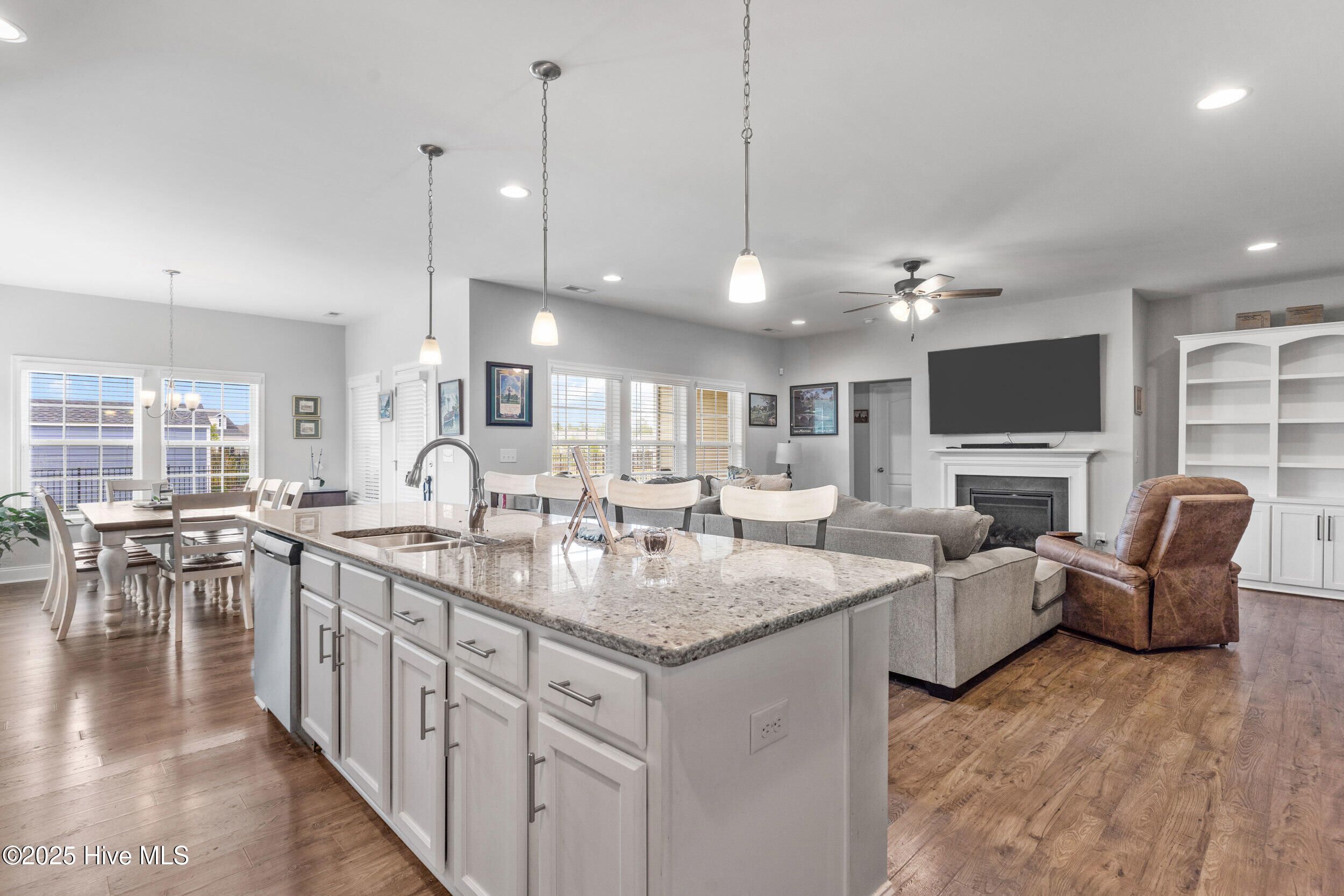 - Master Downstairs, Walk-In Closet(s), High Ceilings, Kitchen Island, Ceiling Fan(s), Blinds, Kitchen/Dining Combo