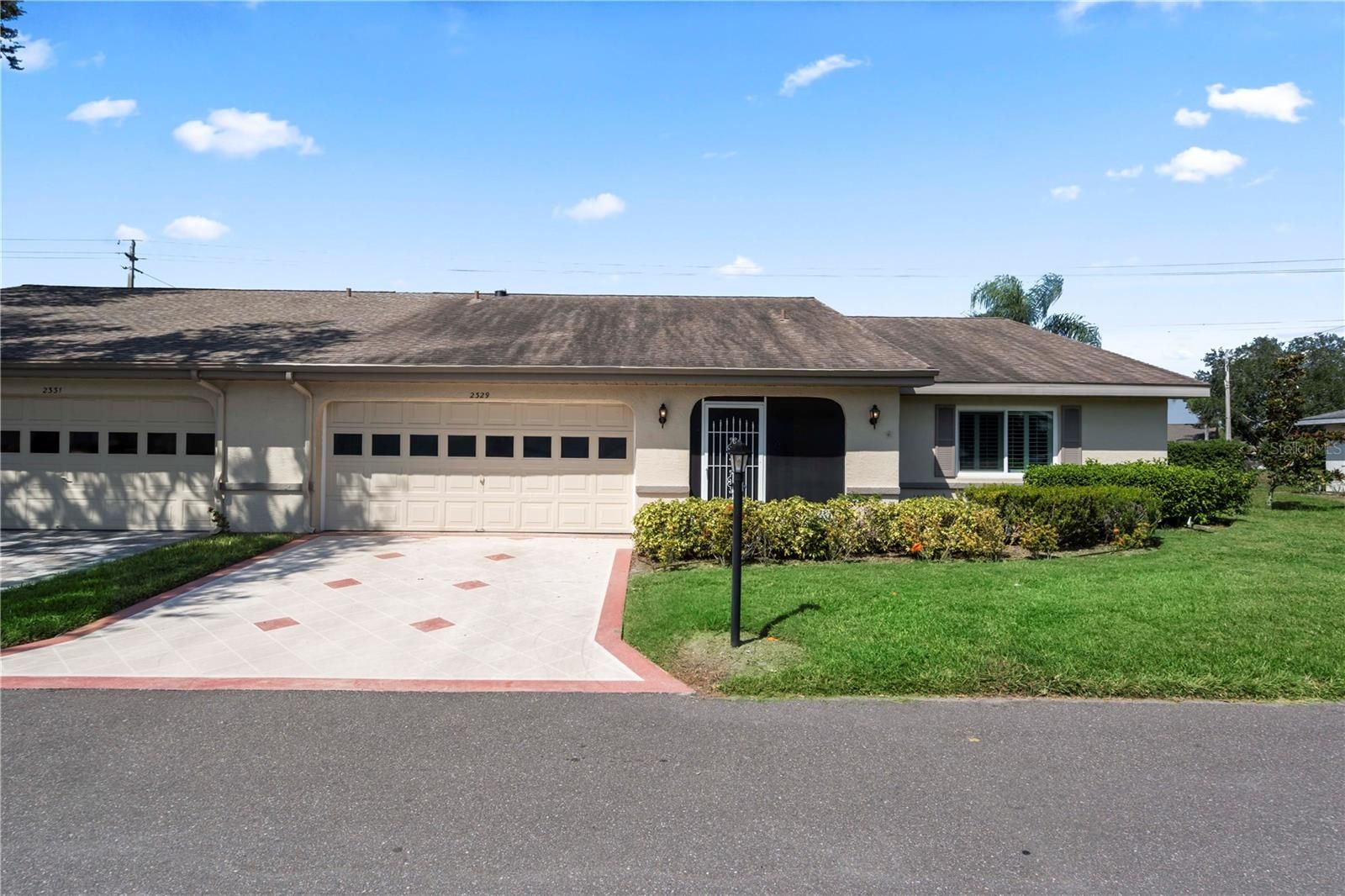 Welcome home to this spacious 2-bedroom, 2-bath residence that offers the feel of a single-family home — the largest layout in the popular Kings Point Golf Community! Designed for comfort and ease, this beautifully cared-for property combines modern updates with effortless Florida living. Step through the screened front porch with a painted decorative floor and into a freshly painted interior featuring no carpet — just tile and laminate flooring throughout. Plantation shutters add timeless charm and natural light control across every room. The kitchen is a chef’s delight with soft-close wood cabinets, stone countertops, a stone-tiled backsplash, a skylight, and a cozy breakfast nook. The adjoining family room and dining area offer plenty of space for entertaining or relaxing, while an additional Florida room provides a bright, versatile bonus area surrounded by windows. The primary bedroom suite includes a large walk-in closet and an ensuite bath featuring a walk-in shower and skylight. The guest bedroom offers two separate closets and a charming window nook, while the guest bath includes a shower/tub combo. An indoor laundry room with a utility sink plus a washer and dryer that convey adds everyday convenience. The 2-car garage features four built-in storage closets, perfect for organization. A golf cart is also available for purchase — ideal for getting around this active community. Enjoy all the incredible amenities Kings Point offers: multiple pools, golf courses, fitness centers, clubs, and social activities. Conveniently located between Tampa and Sarasota, you’re close to airports, shopping, dining, sports venues, and Florida’s world-famous beaches. Experience the best of resort-style living in one of Florida’s most affordable and vibrant 55+ communities — where relaxation and recreation meet in perfect balance.