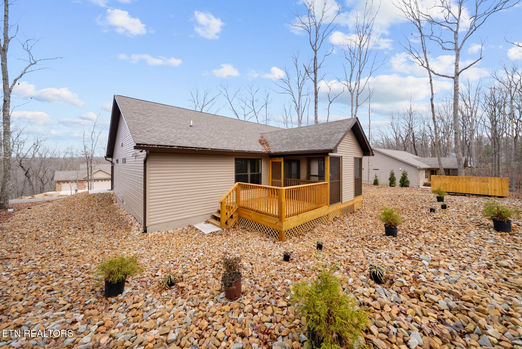 Wow!!!!!!!! Looking for a private setting in Fairfield Glade???? We know how difficult it is getting. This quality new construction home by one of Fairfield's premier builders is nestled near the end of a cul de sac road and is completely surrounded by vacant lots and wooded property. Imagine sitting on your screened in porch enjoying the gas fireplace in complete privacy. This extremely popular floor plan offers a totally open and spacious feel with a living room that is substantially larger than most plans this size. And the kitchen - absolutely gorgeous with a gas cook top, built in appliances, nice sized pantry with a barn style door, and an island overlooking the dining and living areas. The builder puts in so much that most builders charge an upgrade for. Features include an 18' garage door, On Demand Water Heater, Encapsulated Crawl Space, Upgrade Trim Package, 2nd Fireplace on the Pine Tongue and Groove trimmed screened porch, hardwood throughout the home (no carpet whatsoever), and a Master Bath you'll love with his and her Walk-In closets and gorgeous double vanity and Custom Tile Shower.