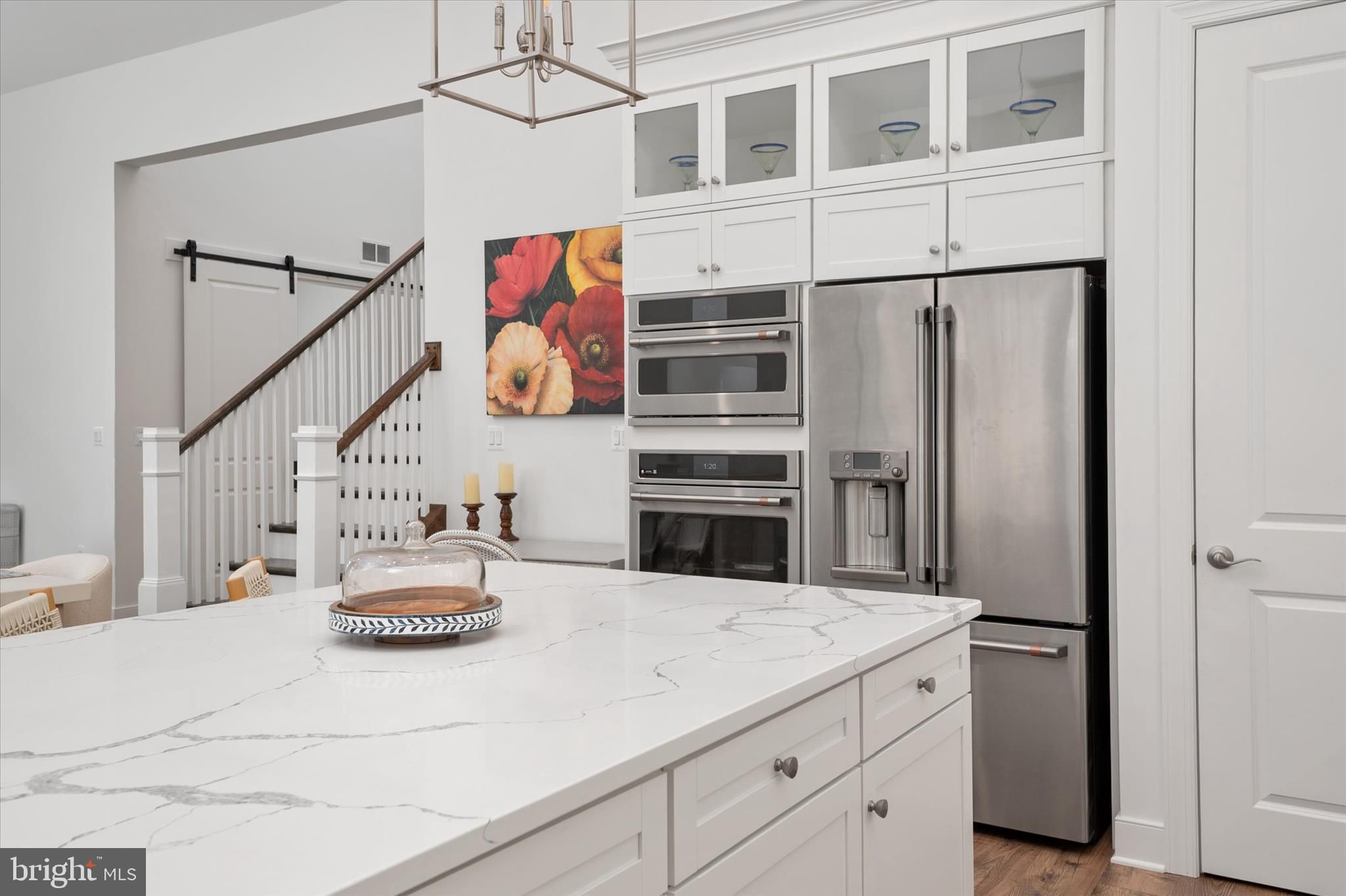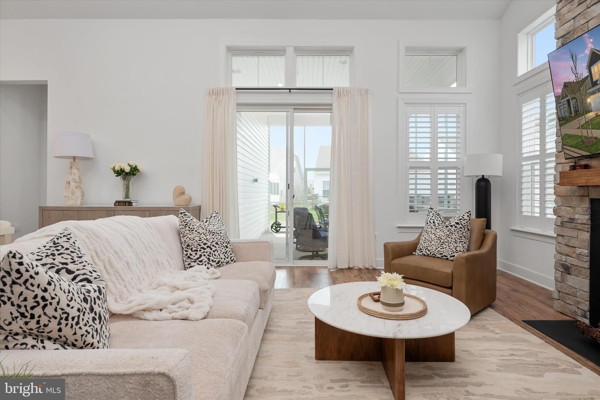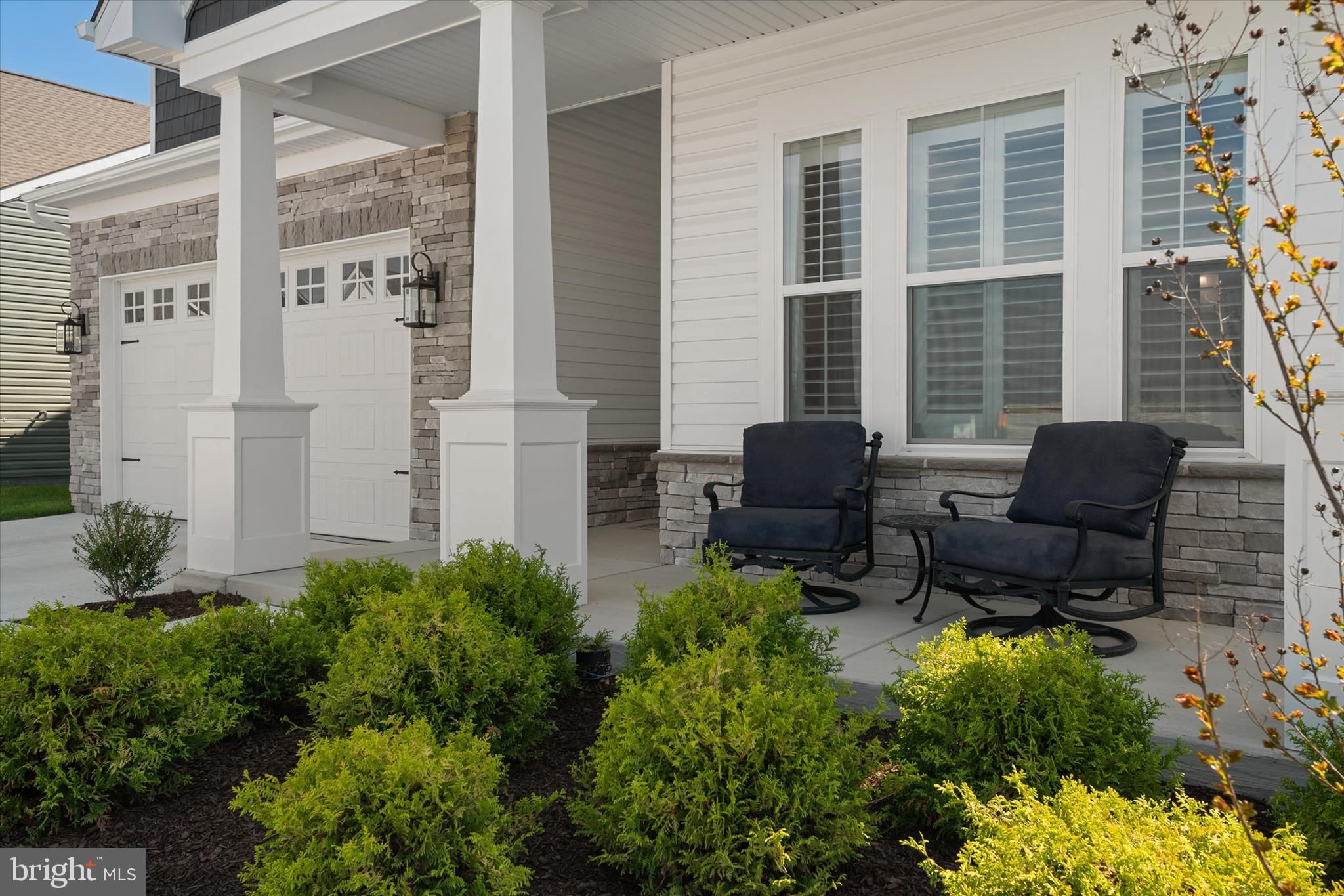 Welcome to luxury coastal living in the highly desirable Four Seasons at Kent Island 55+ community in Chester. Built in 2025, this practically new home offers the perfect blend of elegance, comfort, and convenience — without the wait for new construction. Ideally situated on coveted Kingfisher Lane, this exceptional Tuscaloosa model offers over 3,200 square feet of beautifully designed living space with 5 bedrooms and 4.5 baths. The upgraded stone-and-shake exterior creates stunning curb appeal, while the covered front porch offers peaceful peek-a-boo water views — the perfect place to enjoy your morning coffee at sunrise. Inside, the open-concept main level showcases a thoughtfully upgraded interior with classic cabinetry, glass display cabinets, and professional-grade GE Café appliances in the kitchen. The spacious living area is anchored by a dramatic stone gas fireplace, while custom wall detailing and molding upgrades in the foyer and primary suite add warmth and sophistication throughout the home. Norman shutters on every window, upgraded carpet with premium padding, and carefully selected finishes elevate every room. The main-level primary suite offers a private retreat with elegant trim details and a spa-inspired en suite bath featuring a luxurious soaking tub designed for relaxation. Additional upgrades include a screened porch for outdoor enjoyment, epoxy garage flooring, painted garage walls, and a dedicated EV charging station for modern convenience. Located just a short distance from the community dog park, playground, pickleball and tennis courts, and the state-of-the-art clubhouse, this home offers not only exceptional design but also an unmatched lifestyle. Residents of Four Seasons at Kent Island enjoy resort-style amenities including indoor and outdoor pools, a fitness center, walking trails, social spaces, and activities designed to support an active and vibrant coastal lifestyle. All of this is ideally located just minutes from the Chesapeake Bay Bridge, offering convenient access to Washington and Baltimore, while also being close to shopping at the Queenstown Premium Outlets and an array of local waterfront dining and everyday conveniences.