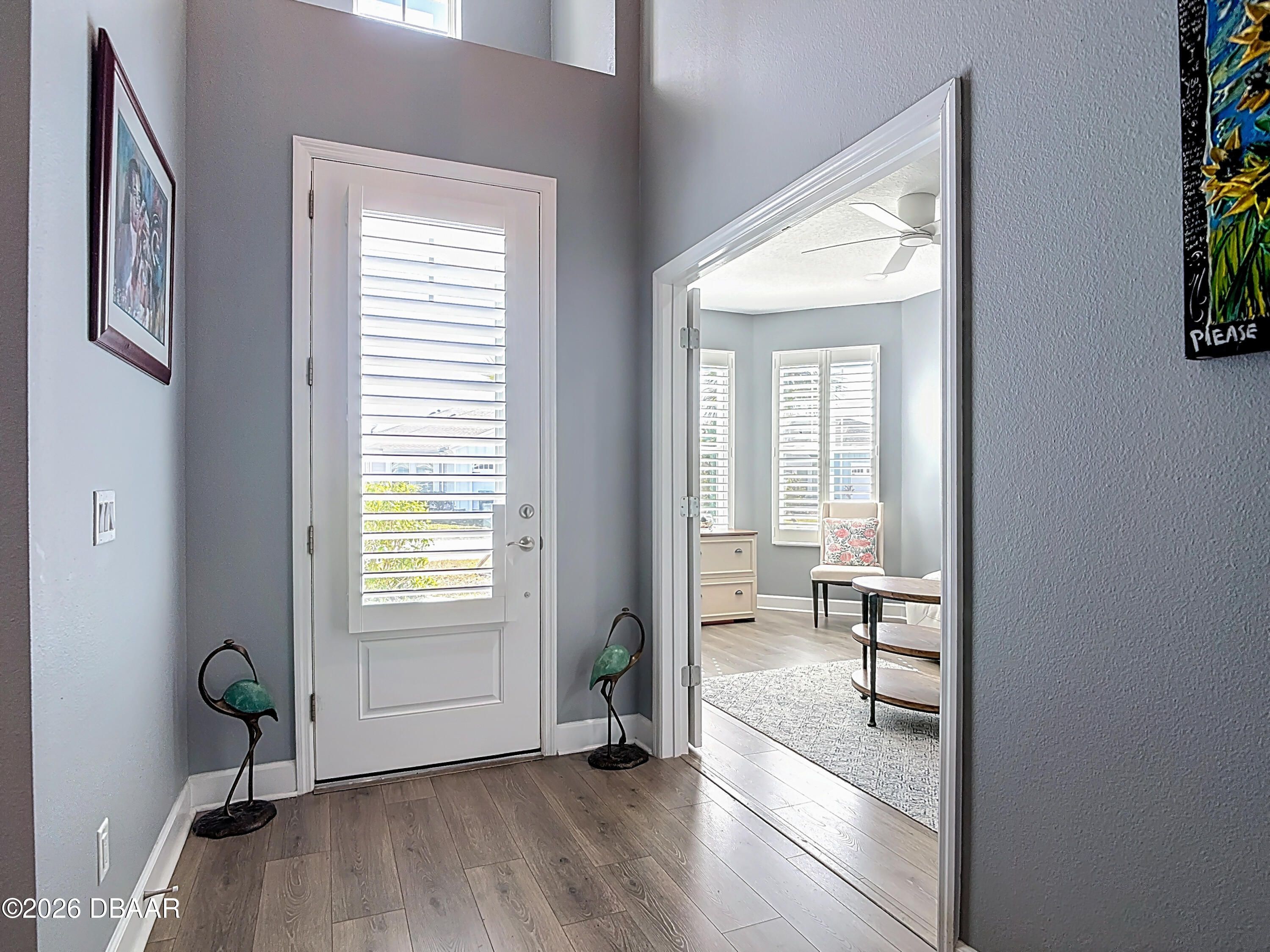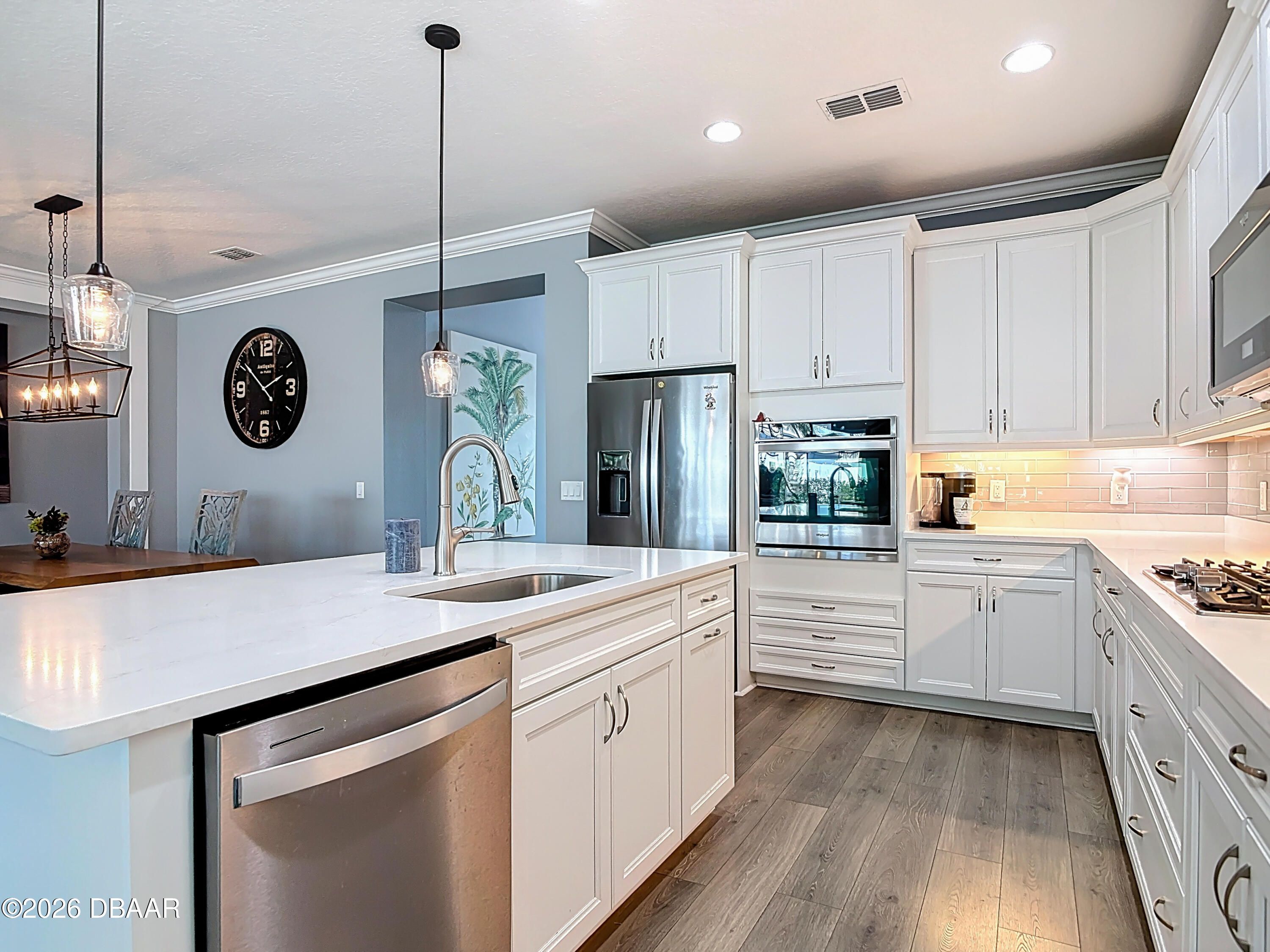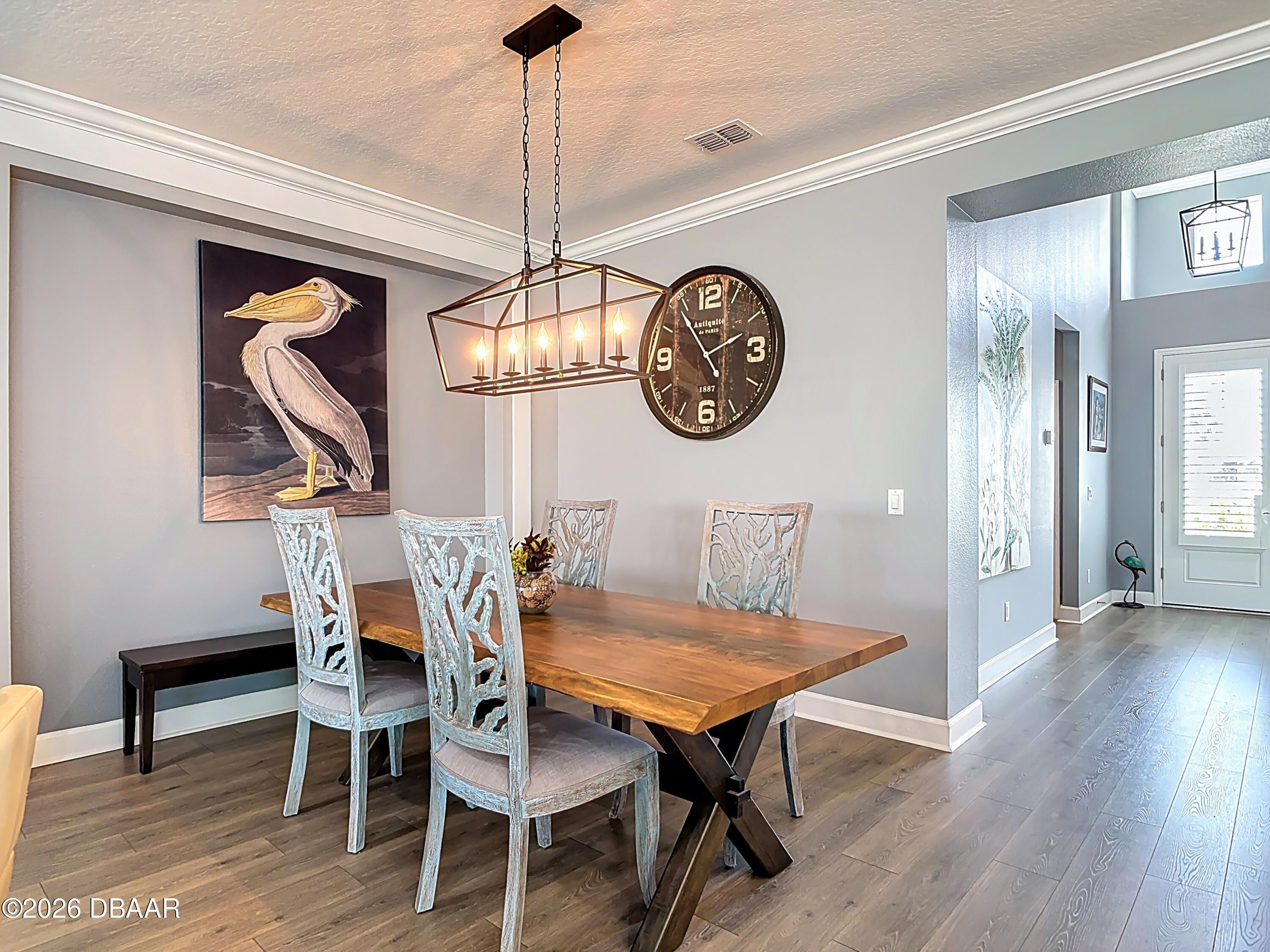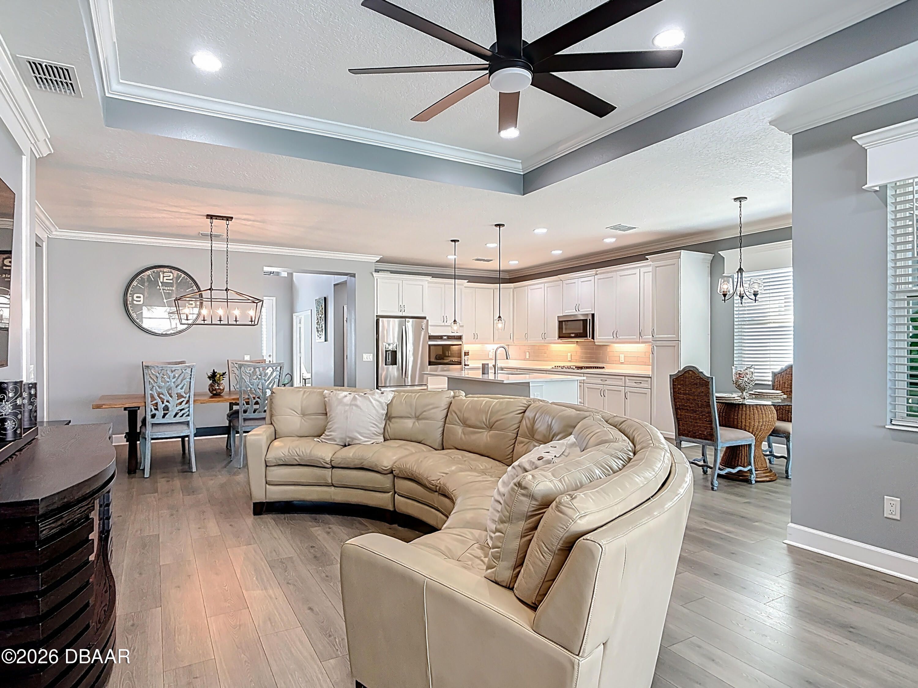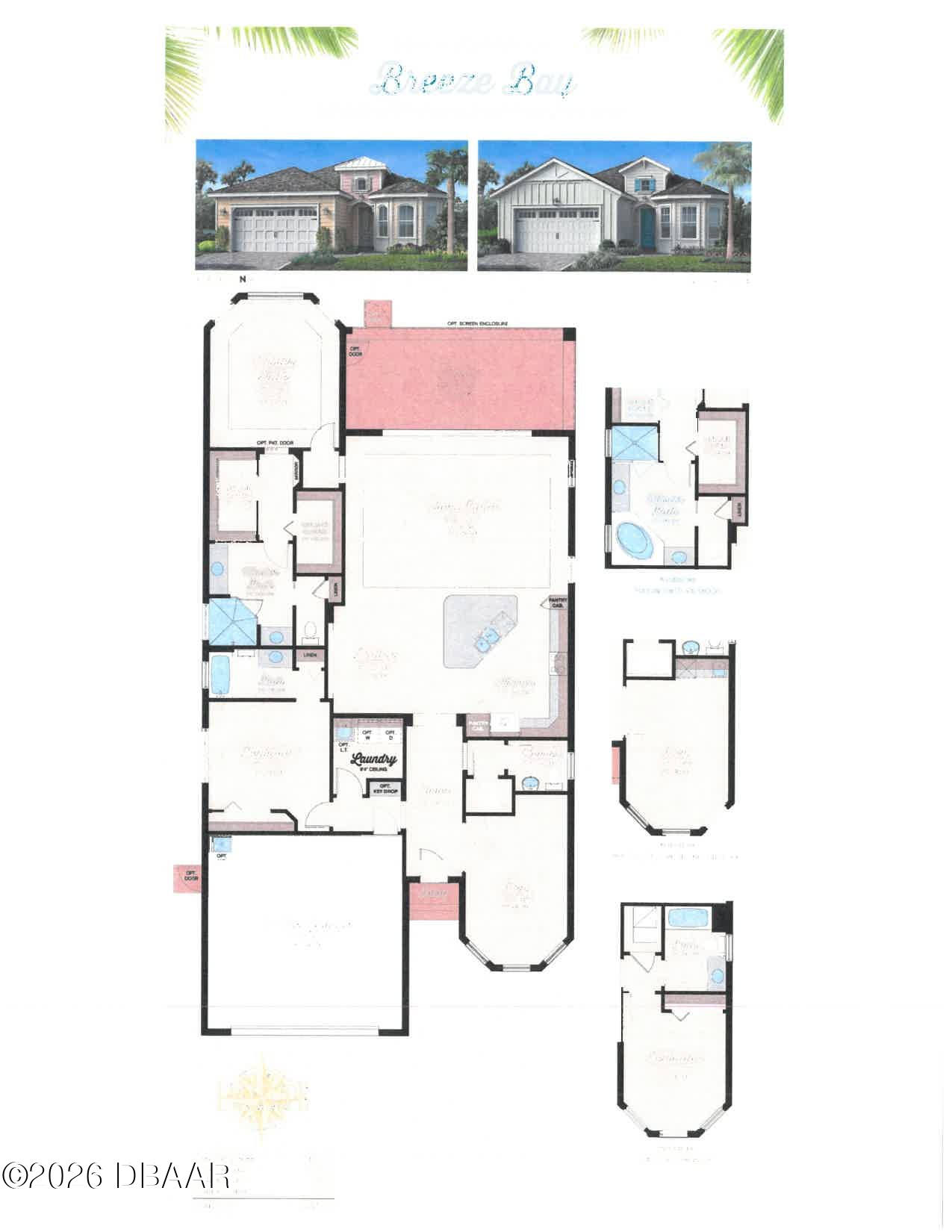 Luxury Breeze Bay in Latitude Margaritaville—beautifully upgraded and truly move-in ready. Designed for relaxed elegance, this home offers a saltwater pool with integrated spa and dual heat (solar + electric), plus an extended paver lanai for effortless indoor-outdoor living. Enjoy a gentle glimpse of the pond in the distance when you step outside to unwind. Inside, you'll love the fresh coastal feel with LVP throughout, plantation shutters, crown molding, tray ceilings with recessed lighting, and majestic 8' doors. The kitchen shines with 42'' white cabinetry, gas cooking, and pots & pans drawers—perfect for entertaining. Laundry includes a utility sink; closets feature wood shelving; and the primary suite offers a linen closet in the water closet. Sealed driveway pavers add the finishing touch. Furniture negotiable. ''Where every day feels like vacation.''