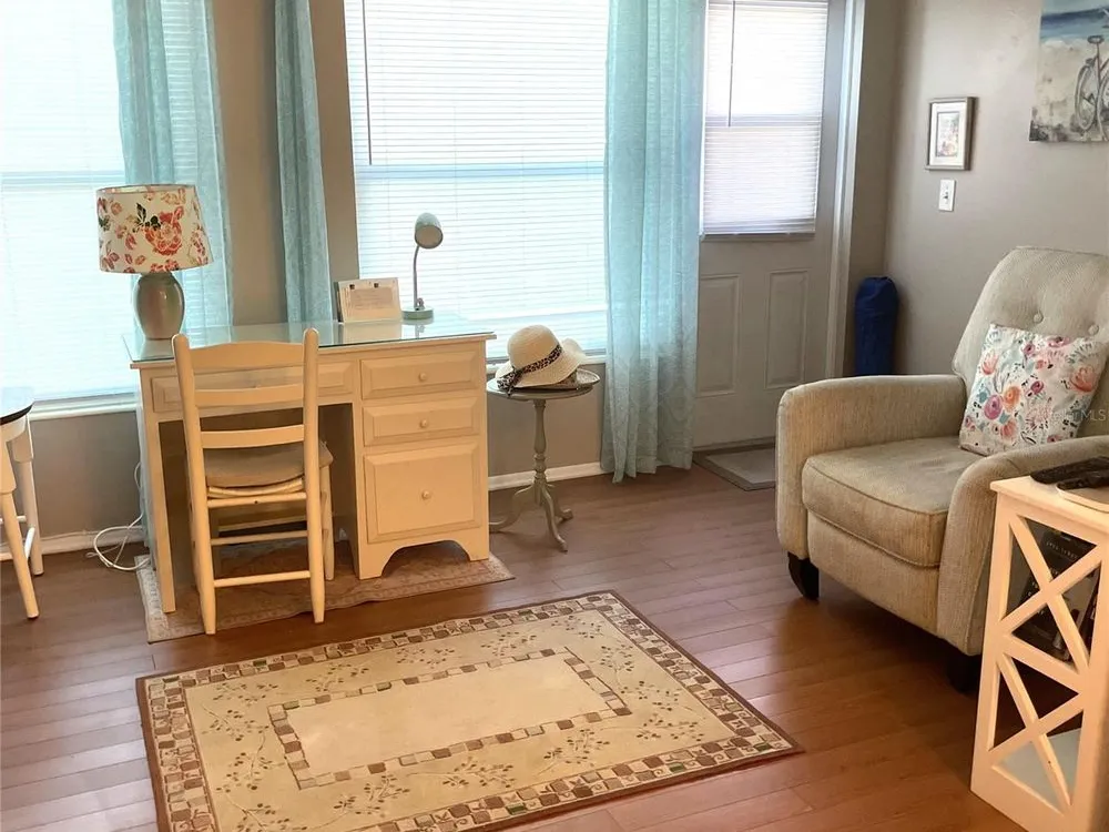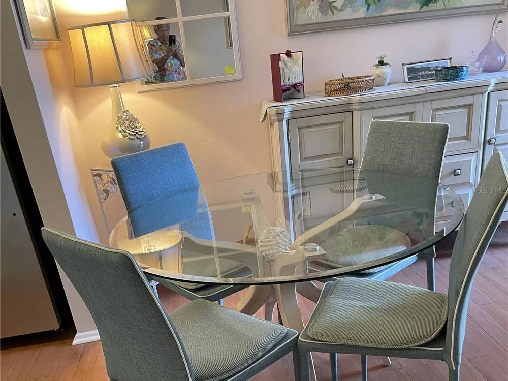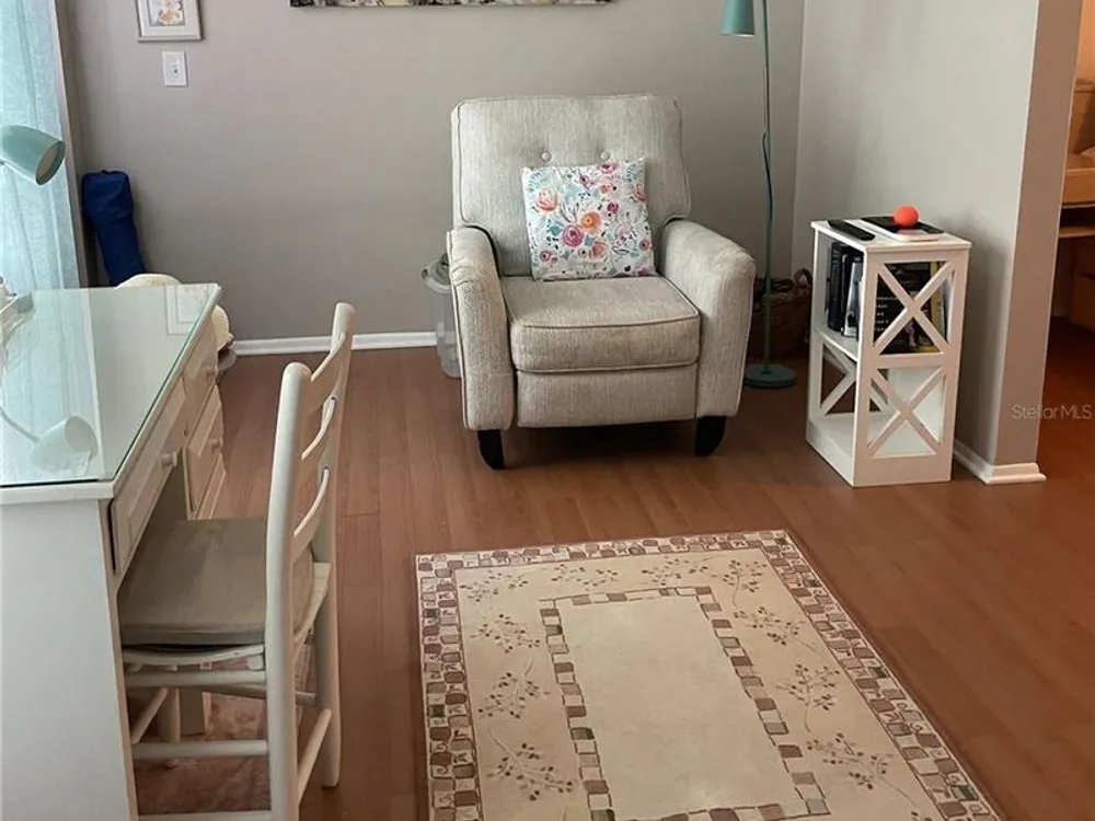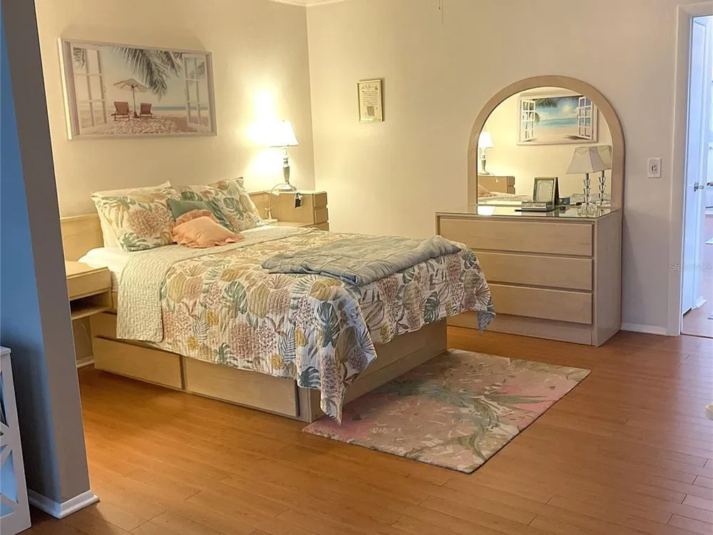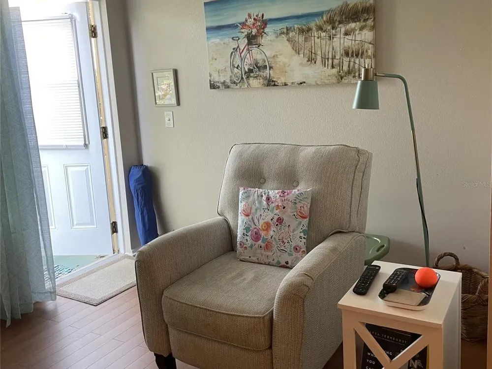$10,000 PRICE REDUCTION!! Come and see this beautiful 1st floor unit with Beautiful laminate flooring throughout .Wait to you see the beautiful open Livingroom/dining room/kitchen. Italian marble top in the island, wood cabinets. topped off with granite countertops, impact Resistant AAA certified 50/50+ designed wind pressure window installed in 2014. HVAC and HWH replaced in 2013, Bedroom and living room have ceiling fans. Check out the unique cubby holes storage features in bathroom and also in kitchen. Rear patio overlook tree covered greenbelt area. Furniture in included . Assigned parking in front of unit . This super 55+ community has 2 activity centers also 2 golf courses 9 and 18 holes FREE for resident owners . Enjoy the 2 swimming pools, 1 heated. Gym after you swim. Enjoy hobbies at the hobby studios.. Have a dog there is a Dog Park so they can enjoy running and playing (large dogs allowed) There are indoor activities indoor on the hot day ,fitness classes, dancing, clubs and cards and even more things to keep you busy. According to Top of the World the exact CONDO FEE IS $517.58