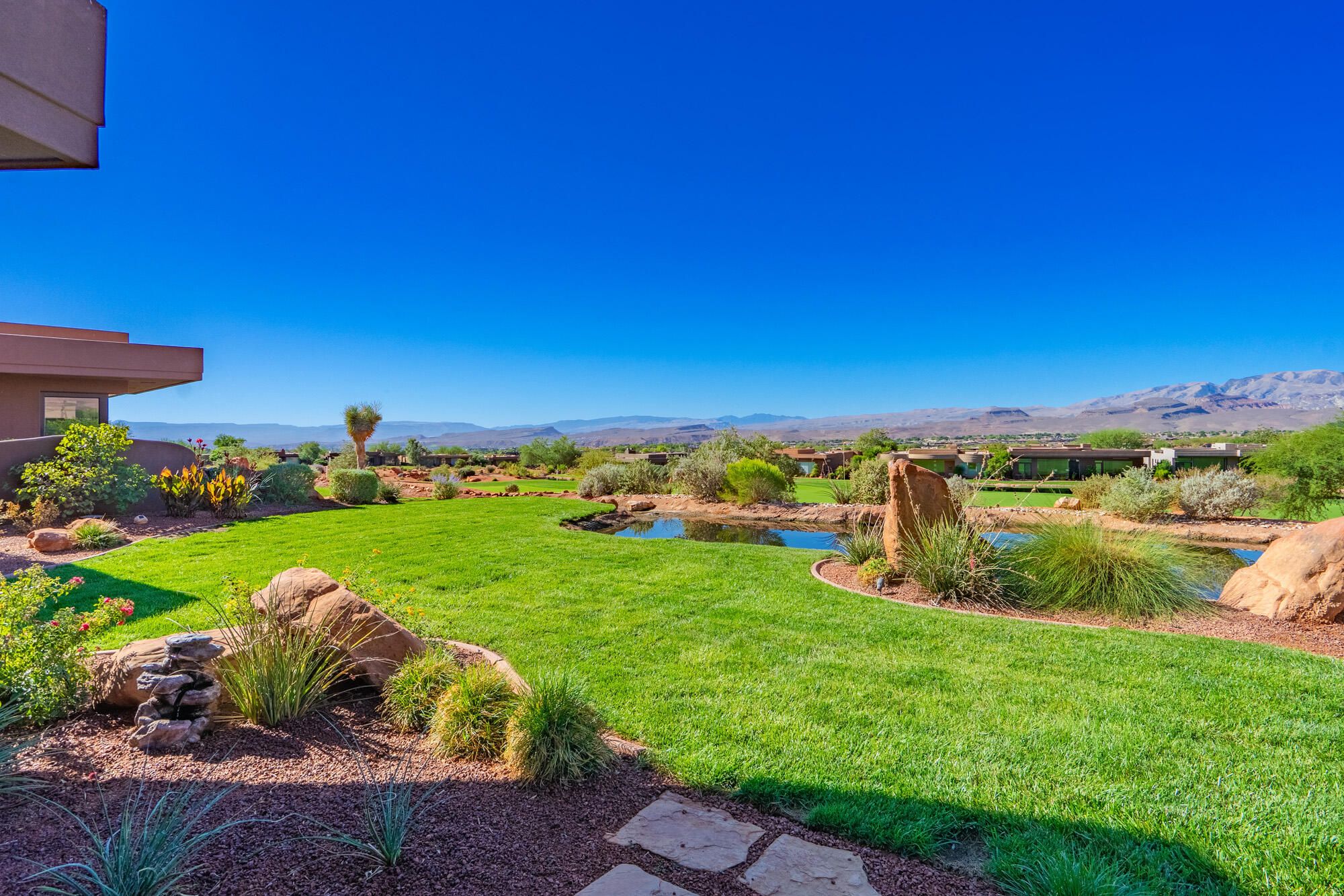 Nestled amongst the serene beauty of the prestigious Entrada Golf Course, this luxurious estate offers an unparalleled living experience with breathtaking views of the iconic Arizona Strip, Utah Hill, Red Mountain and the mesmerizing sunsets. Designed with a spacious, open layout, the home seamlessly blends indoor and outdoor living, featuring endless walls of windows that invite the stunning scenery inside. At the heart of this exquisite home lies an expansive interior courtyard, artfully integrated within its horseshoe-shaped floor plan. This inviting space features a cozy fireplace, perfect for creating a warm and welcoming ambiance. The dedicated dining area is perfect for hosting elegant dinners, while the art wall hallway leads to the guest room and a charming casita, offering privacy and comfort for visitors. The gourmet kitchen is a chef's dream, equipped with top-of-the-line appliances that make cooking a delight. The home is meticulously maintained, with ample storage space in the garage to keep everything organized and tidy. Step outside to the giant covered back patio, where you can unwind in style. The built-in BBQ and fire-pit make it an ideal spot for entertaining or simply relaxing while taking in the beautifully landscaped surroundings. This exquisite home is a true sanctuary, offering a cozy and relaxing retreat with every modern convenience and luxury. Residents can indulge in a wide range of clubs and activities including pickleball, tennis, swimming, yoga, and Pilates. Whether you're looking for outdoor adventures like hiking or exploring the fascinating beauty of the area, or simply want to enjoy a delicious meal at Sol Mesa or The Grille, Entrada has something for everyone. It's a place where you can easily make new friends and create lasting memories. It's important to note that all property owners in Entrada are required to become associate members of the country club, which includes a monthly fee of $210 and an annual food expense of $800 at the restaurant. Golf membership, however, is a separate cost.