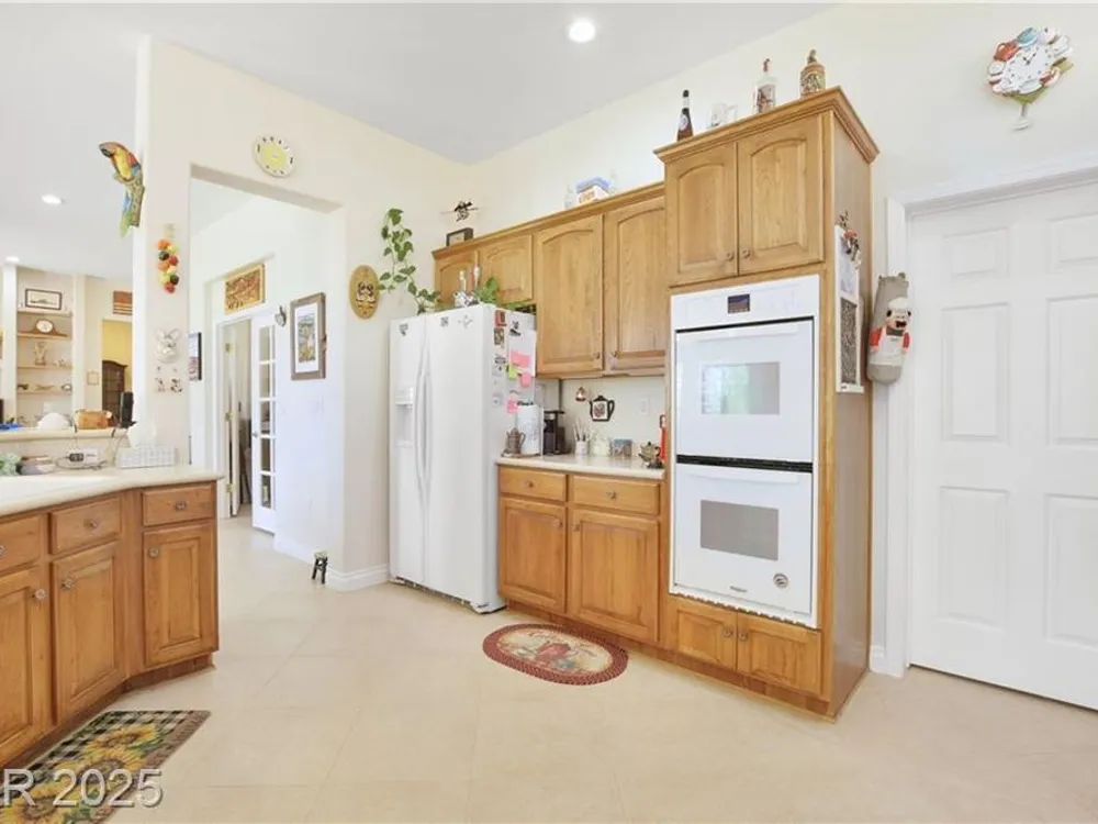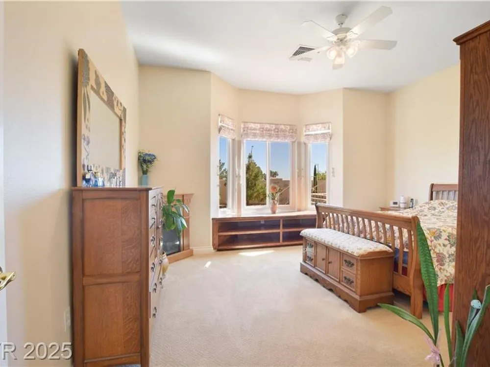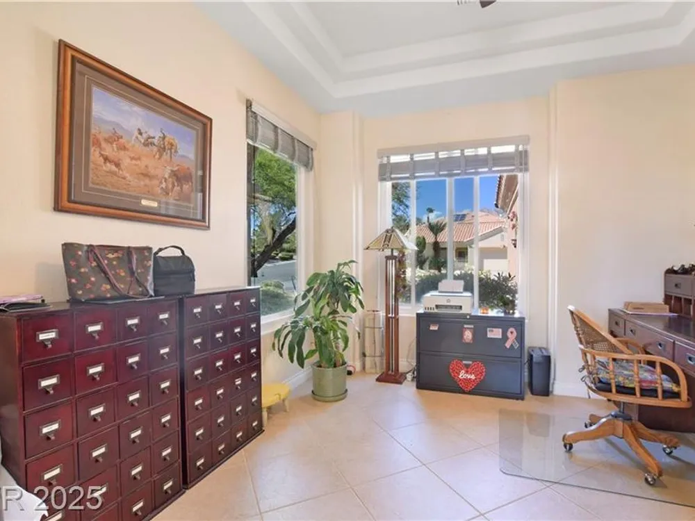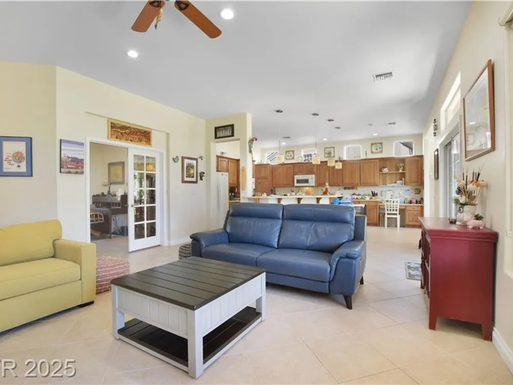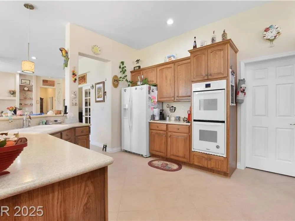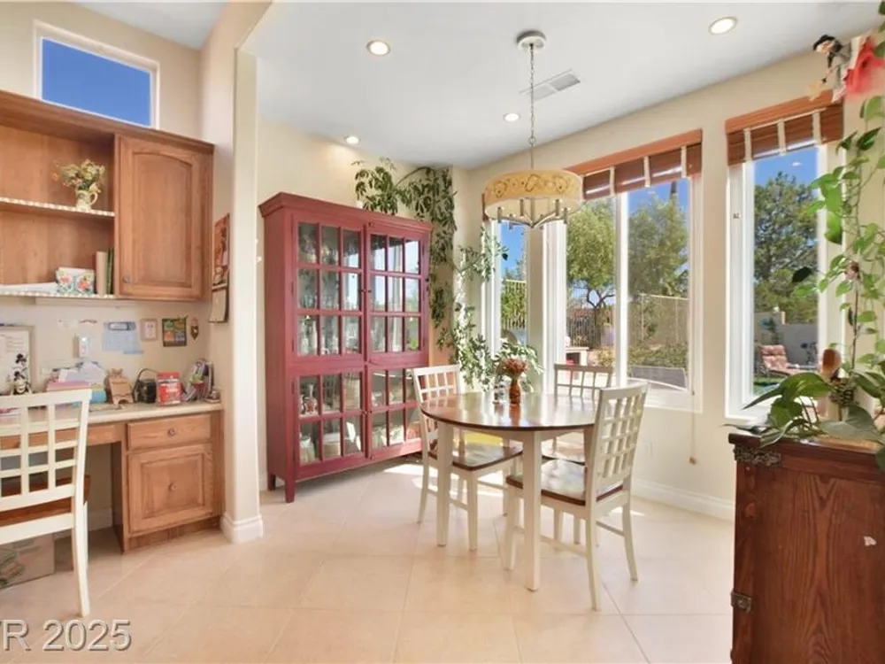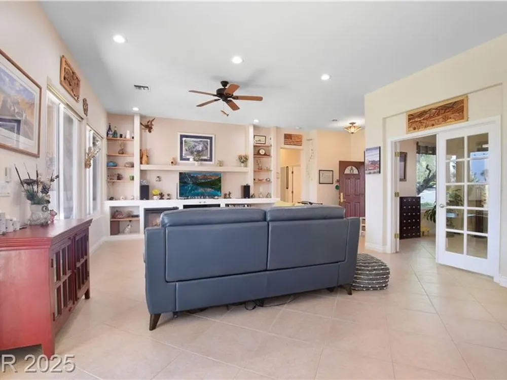 Remarkable one-story corner lot home on a 1/4 acre in highly sought-after Sun City Summerlin & across the street from the Pinnacle Community Center. The owner spared no expense with new Milgard energy-efficient windows & sliding doors, as well as new front & storm doors. The office/den also features new French doors. The house has been recently painted both inside & outside, plus new fans & light fixtures have been installed. The primary bathroom has been remodeled with a custom shower, new vanity, & light fixtures. The hallway bathroom has a new Jacuzzi 10 Jet bathtub, light fixtures, tile, & faucet. The kitchen is a chef's dream with newer appliances including a 5-burner gas cooktop, double ovens, & microwave in addition to tons of storage with pull-out shelves. The front & backyard are beautifully landscaped with refreshed, decorated rock and updated drip & sprinkler systems. There is an updated BBQ with electrical outlets, a spacious covered patio & additional raised patio.