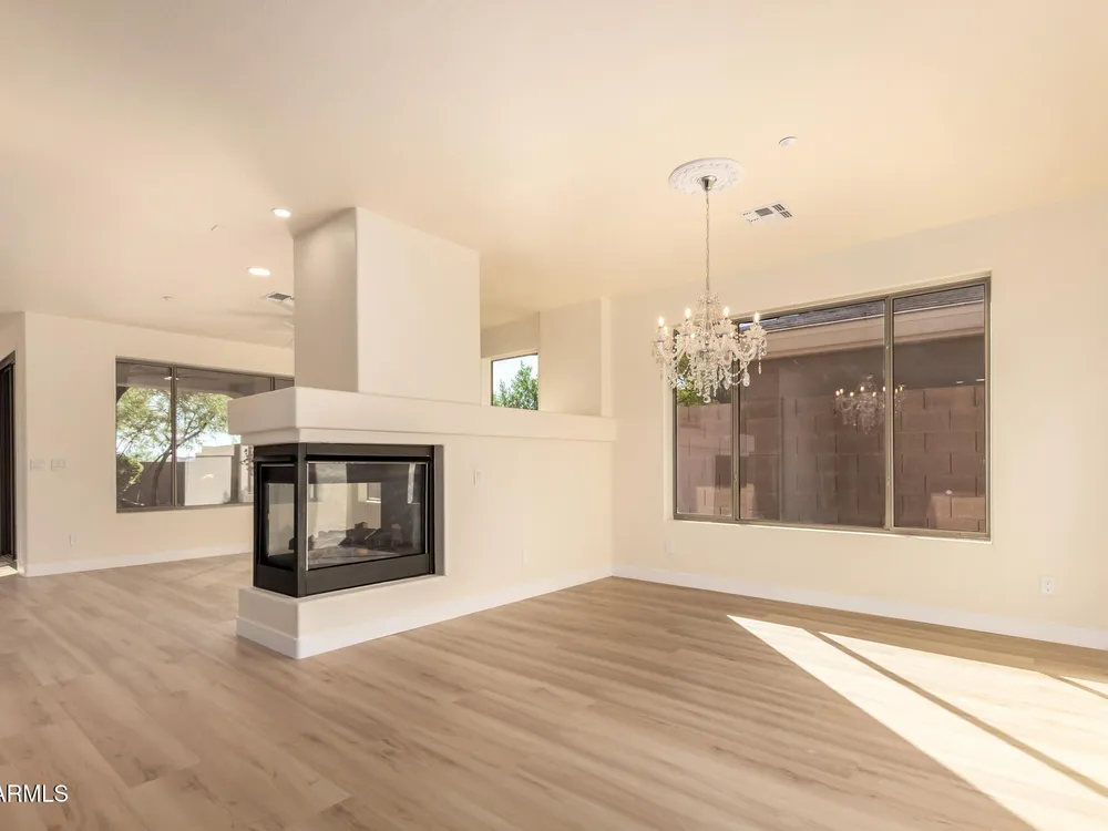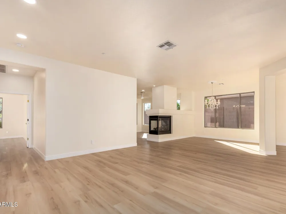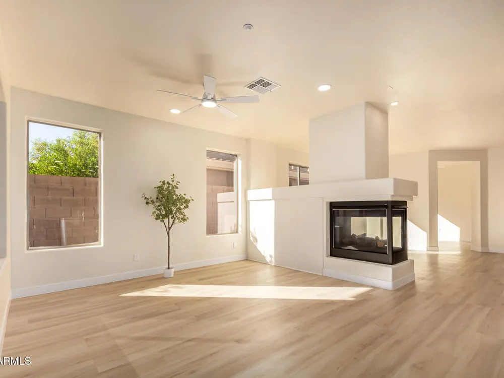 Anthem Country Club Luxury Remodel - Guard-Gated Living at Its Best. Fully renovated 2BR + Den / 2BA home on a corner lot in the exclusive Anthem Country Club community. Over 2,000 sqft of open living with modern updates throughout: Designer kitchen w/ quartz countertops, shaker cabinets & stainless steel appliances. Spa-inspired bathrooms w/ frameless glass showers & floating vanities. Brand-new luxury vinyl floors, LED recessed lighting, dual-sided fireplace. Epoxy garage w/ storage, fresh exterior paint, low-maintenance desert landscaping. Private covered patio on a premium corner lot. HOA includes: •24/7 guard-gated access •Golf, tennis, gym, heated pools, trails, clubhouses. •Lock-and-leave lifestyle with premium security. Located in Anthem, AZ - just 30 mins from North PHX.