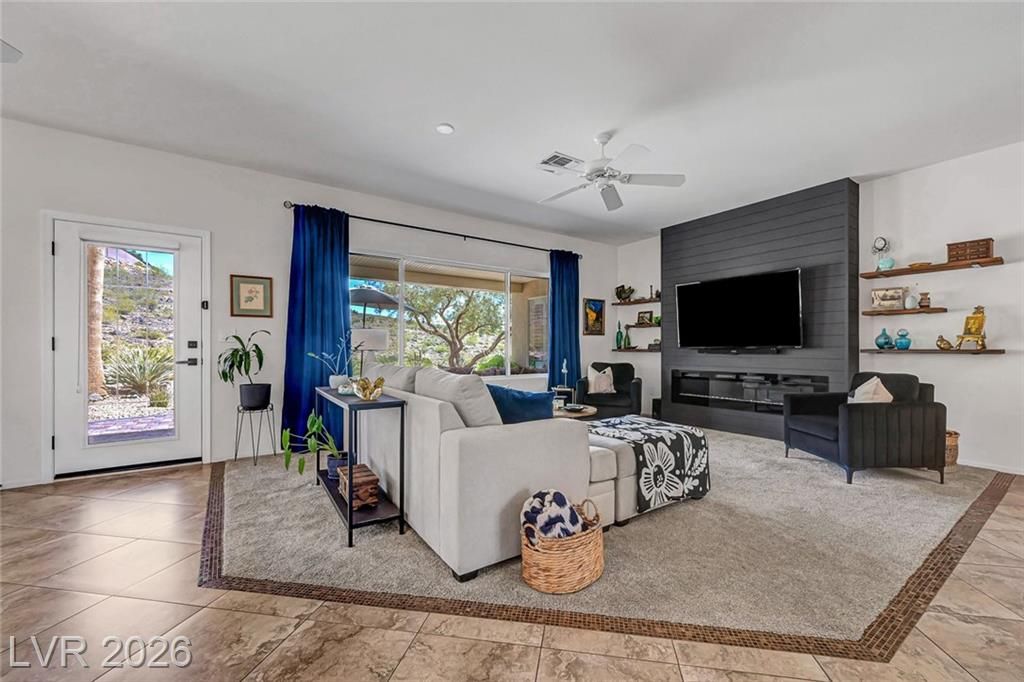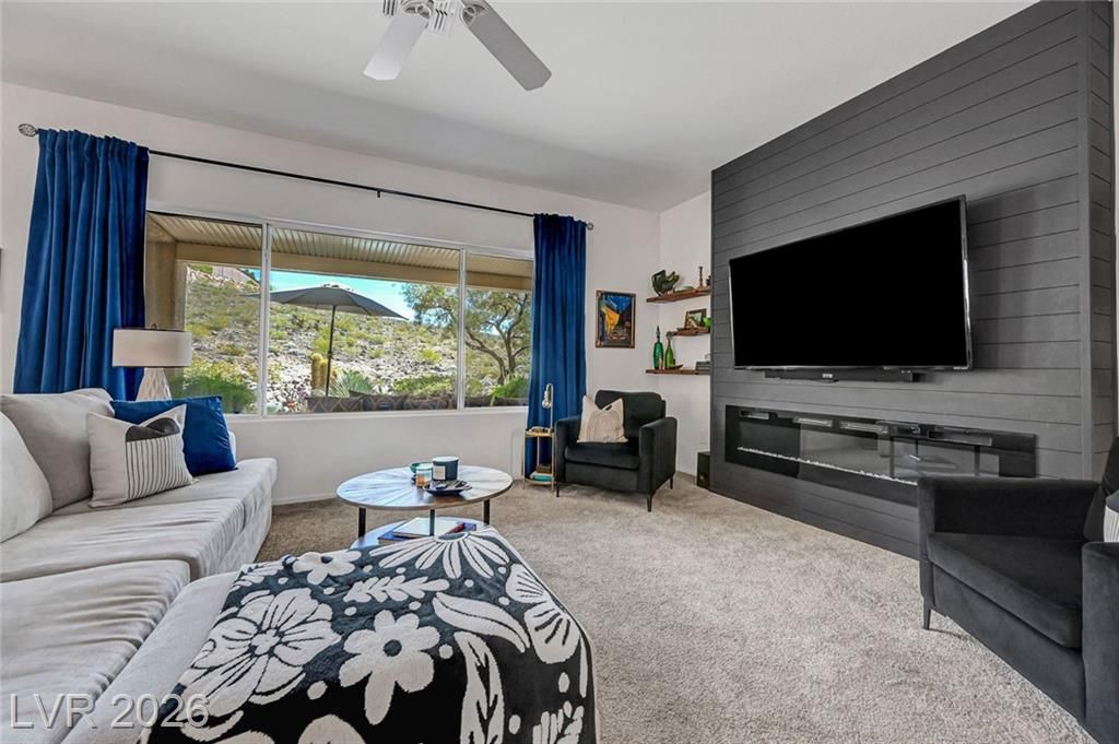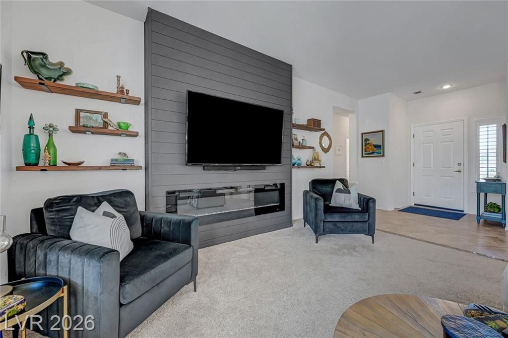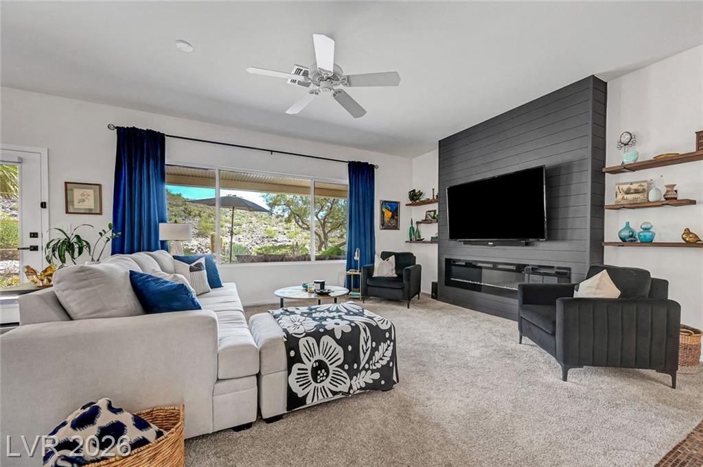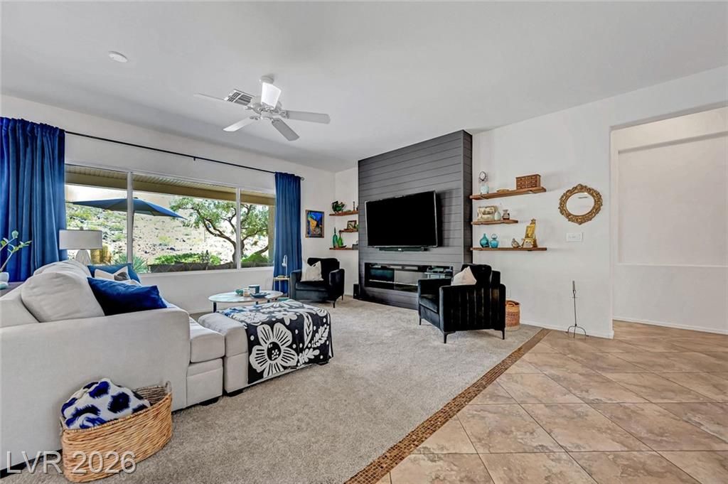 Welcome to this stunning Monroe model nestled in the 55+ community of Sun City Anthem! Thoughtfully designed, this property offers a bright and open floor plan with spacious living area perfect for both relaxing and entertaining. Living room has a custom fireplace and newer carpet. The kitchen features sleek, quartz countertops, ample cabinetry, pantry, and a newer sink, stove, microwave, and dishwasher. Den can be used as an office or a 3rd bedroom. Garage is 2 car with epoxy floor, newer water heater, and cabinets for storage. Step outside to a beautifully maintained backyard, with a covered paver patio, water fountain, and an amazing view of the open desert terrain. Sun City Anthem is a 55+ age-restricted community and lifestyle where residents enjoy 3 Clubhouses, 2 restaurants, 2 golf courses, swimming pools/spas, tennis, pickleball, club activities, and an active social calendar Don’t miss your opportunity to make it yours!
