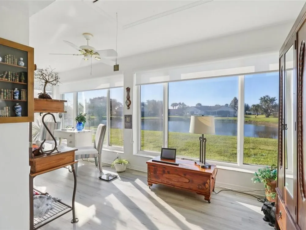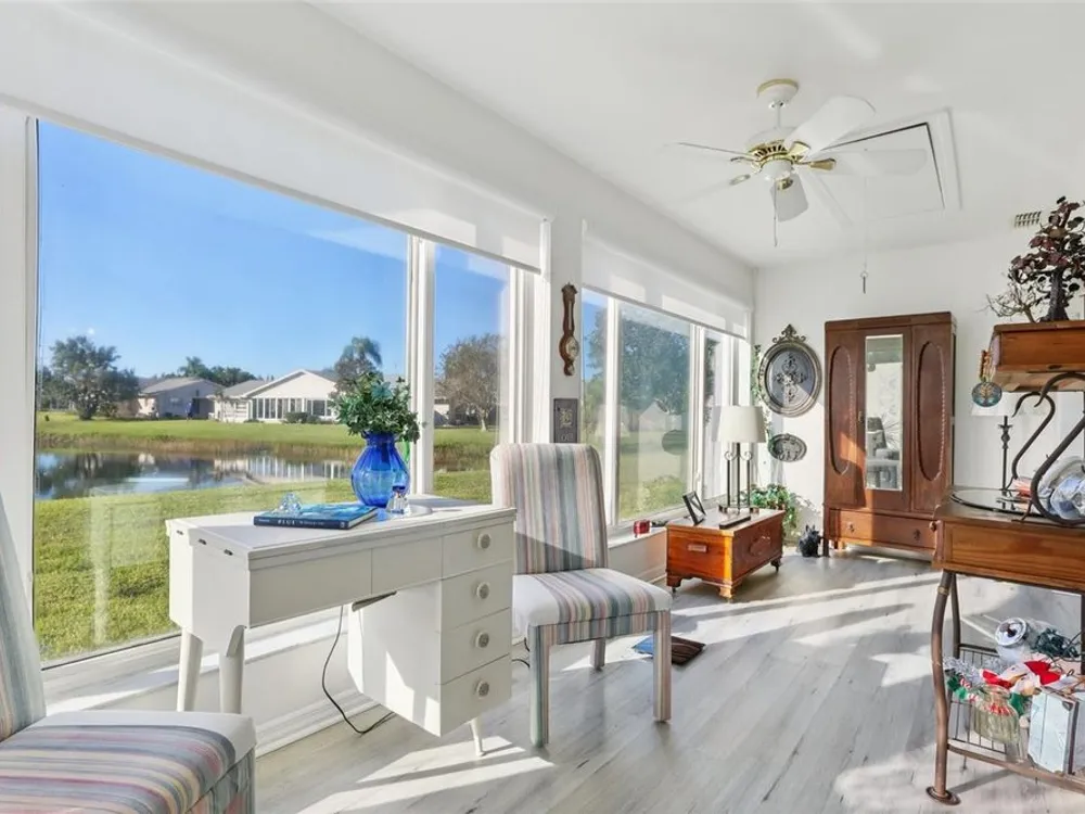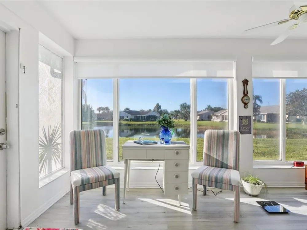 Your Waterfront Oasis Awaits in Kings Point! Imagine waking up to sparkling water views every day in this lovely 2-bedroom, 2-bathroom waterfront condo nestled in the highly sought-after, active 55+ community of Kings Point in Sun City Center. This charming condo offers the perfect blend of comfort and convenience. You'll appreciate the ease of a covered carport right outside your door, and a welcoming, screened-in side porch provides a pleasant entryway. Inside, the common areas feature low-maintenance laminate flooring, with tile in the kitchen and cozy carpet in the bedrooms. The kitchen is the heart of the home, offering an open flow with views into the dining and living rooms—perfect for entertaining! The dining room also features attractive built-in cabinets for extra storage and display. The primary bedroom is a true retreat with a private en suite bathroom featuring a walk-in shower. The second bedroom is nicely sized and sits conveniently next to the second full bathroom, which includes a tub. The real highlight is the Florida room across the back of the condo. It's the ideal spot to relax, sip your coffee, and soak in the beautiful water views that make living here so special. You’ll love the gated community of Kings Point, which has amazing facilities, pools, clubs and events just waiting for you to enjoy. Located between Sarasota and Tampa, this home is perfectly positioned for a convenient ride to airports, great shopping, dining, and professional entertainment. With easy access to award-winning, sandy beaches, you’ll experience the best of all worlds—without the stress of big city life. Leave the hustle behind and embrace a new chapter in Sun City Center, Florida, the state's top-ranked and most affordable 55+ retirement community.