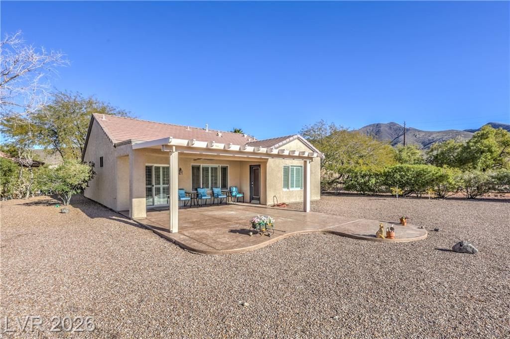 Stunning single-story cul-de-sac home situated on one of the largest lots in Anthem Sun City, offering over 16,000 sq ft & breathtaking mountain views from nearly every room. Designer front door w/open-air insert welcomes you into entry foyer & expansive great rm featuring an open floor plan & tile flooring. Kitchen includes granite countertops, upgraded cabinetry w/pull-out drawers, pantry, breakfast bar & breakfast nook. Great rm & dining area open to an impressive backyard showcasing exceptional mountain views from every angle. Enjoy outdoor living on covered patio w/patio extension designed to take in the scenery. Primary suite features backyard access, walk-in closet & private bath. Separate 2nd bedrm & full hall bath provide privacy for guests. Add'l highlights include plantation shutters, solar screens, exterior paint completed in 2024, recently added water softener, new microwave & garbage disposal, finished 2 car garage, new irrigation system & MyQ garage door opener.