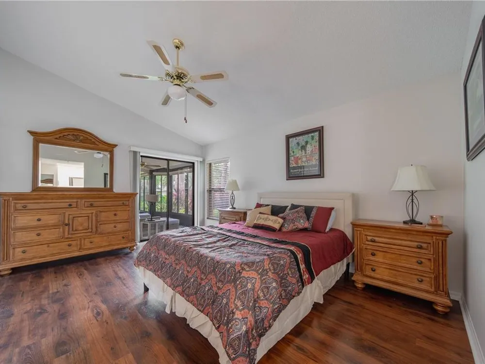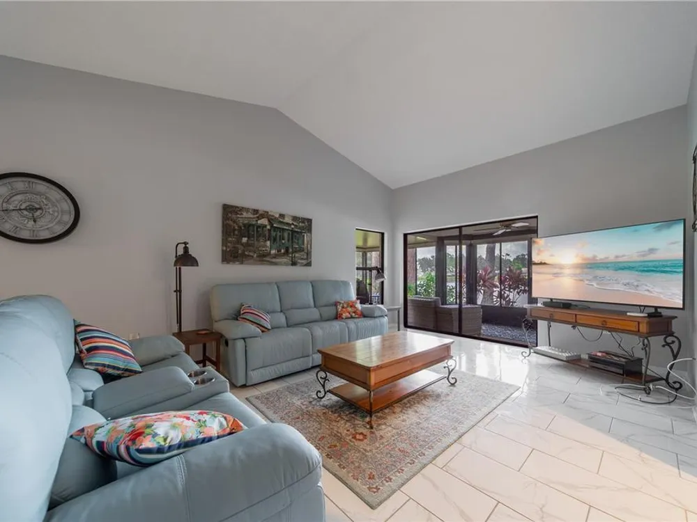 Beautifully updated 3-bedroom, 2-bath villa with stunning lakefront views you can enjoy from your living room in the highly desirable Myrtle Trace community of Venice's Plantation Golf & Country Club. Since 2019, this home has seen numerous quality upgrades, including tile flooring in the main living areas, luxury vinyl plank in all bedrooms, full interior paint, a custom closet organizer in the primary suite, and new gutters. The kitchen features stainless steel appliances (2020), the guest bathroom was fully remodeled, and the primary bath includes a new vanity and toilet (2022). Additional updates include a new A/C unit (2021), sun shades on the lanai (2023), and a new water heater and electrical panel (2019). Relax on your screened lanai and enjoy peaceful lake views perfect for morning coffee or evening sunsets. The HOA provides maintenance-free living, covering all common area maintenance and landscaping, roof and exterior repairs (including windows, doors, and garage door), roof cleaning, insurance on the exterior of the unit, and basic cable TV. All this in a vibrant, friendly neighborhood just minutes from Gulf Beaches, golf, and the charm of downtown Venice. Seller is offering a $5,000.00 credit towards the first year of the annual cost of the HOA.