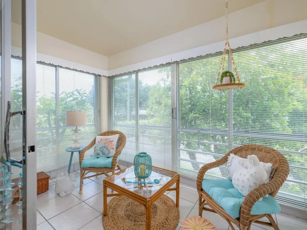 - Entry Level Living Area, Walk-In Closet(s), Florida Room, Living/Dining Room, Blinds