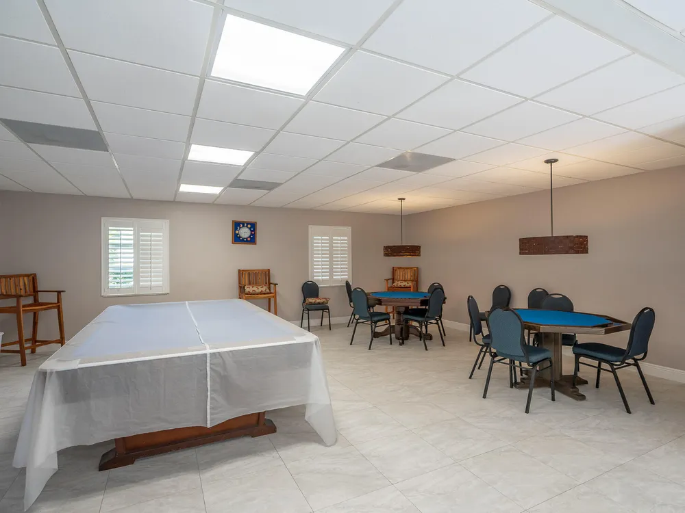 - Billiard Room, Clubhouse, Laundry, Community Room, Library, Pool, Shuffleboard, Street Lights