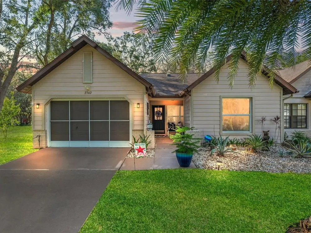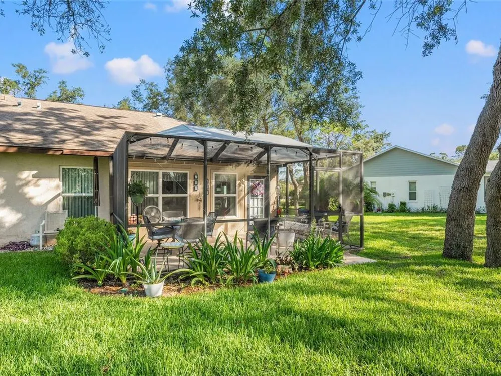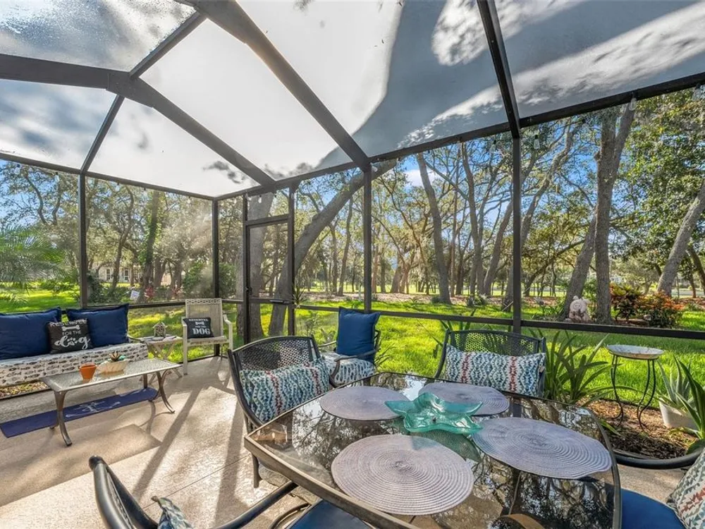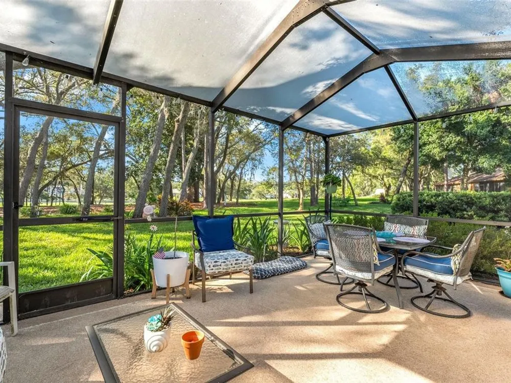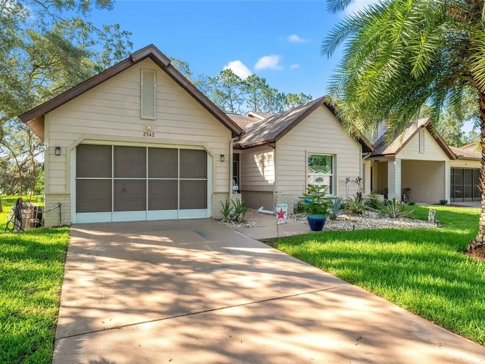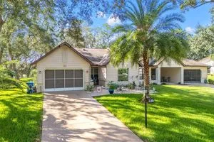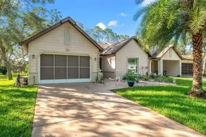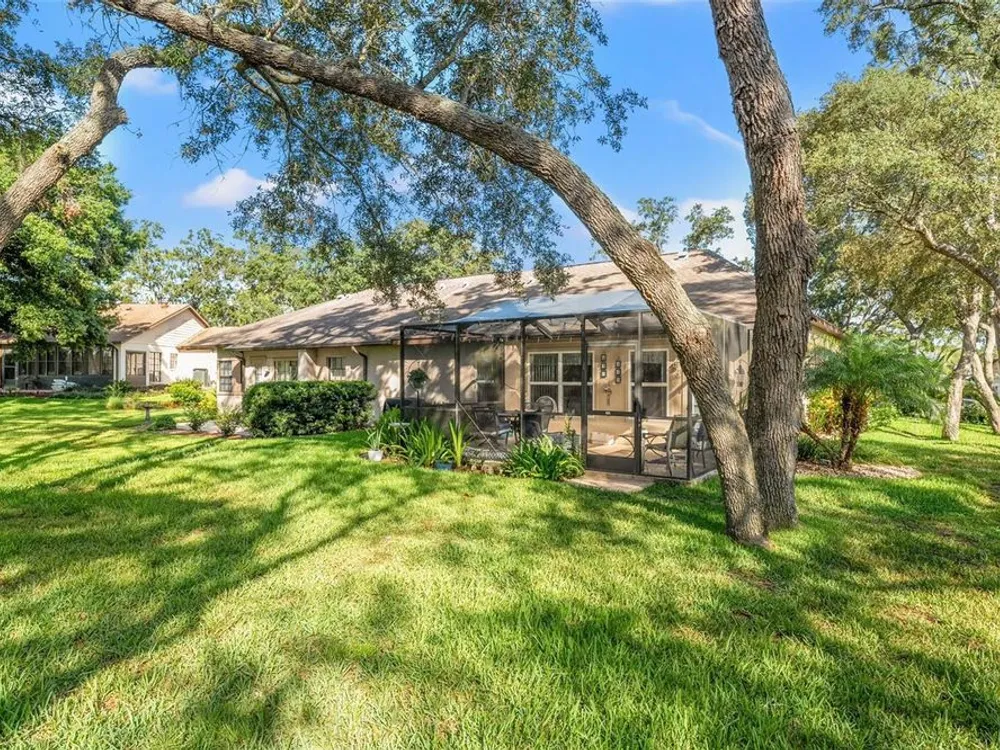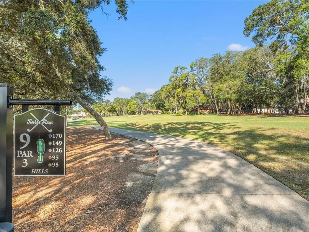 PENDING. WELCOME TO YOUR AWESOME GOLF COURSE HOME in the AWARD-WINNING 55+ COMMUNITY OF TIMBER PINES! Formerly a model center for Timber Pines, this home is uniquely positioned on an oversized lot with beautiful views of the #9 hole of the Hills Golf Course. It blends style, comfort, and location—perfect for Florida living. Step inside to a freshly painted interior, featuring wood flooring, a solar tube for natural light, and a spacious open-concept living and dining area. You'll love the generous lanai under heat and air, ideal for entertaining or relaxing year-round. The updated kitchen shines with granite countertops, new microwave and refrigerator, pantry, and a cozy kitchen nook. NEWER WINDOWS! The guest bedroom includes a large closet, and the guest bath features a granite-topped vanity and a tub/shower combo. The primary suite includes a walk-in closet and an en-suite bath with granite vanity, walk-in shower, and linen closet. Enjoy morning coffee or evening sunsets from your screened patio overlooking the manicured fairways. Additional highlights include: Screened garage with bump-out for golf cart Golf cart included HVAC replaced in 2019 Transferable termite warranty Oversized lot Located in the highly sought-after Timber Pines, a gated 55+ active lifestyle community offering 4 golf courses, tennis, pickleball, 2 geothermal pools, clubhouse, fitness/wellness center, performing arts, Residents Activity Center, Full Service Restaurant, Dog Park, 24 hour Gated and Gaurded Security, Billiards Center, Wood Shop, Arts and Crafts, and over 100 Clubs. Spectrum High speed internet and 2 cable boxes included in HOA fee. A rare opportunity to own a former model home on a prime golf course lot—schedule your showing today!