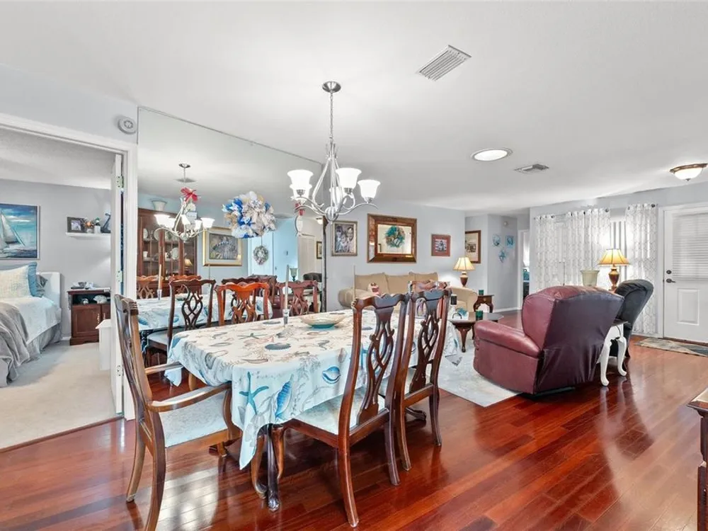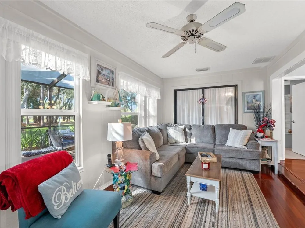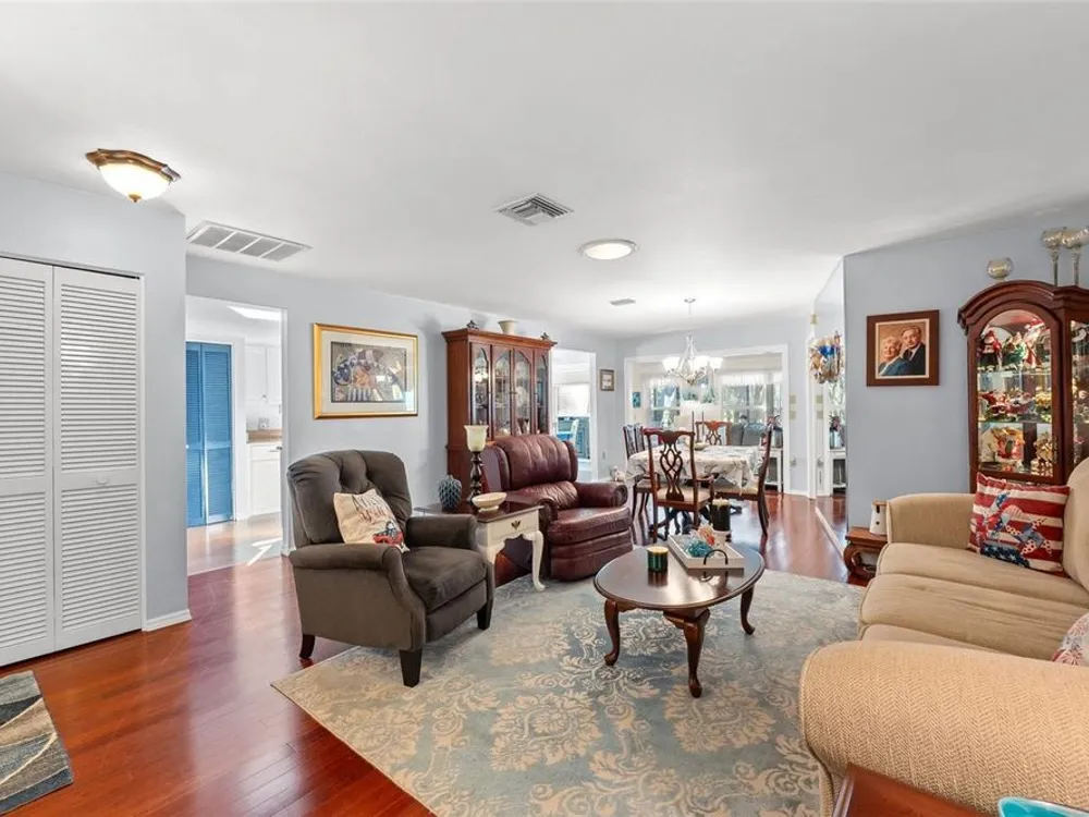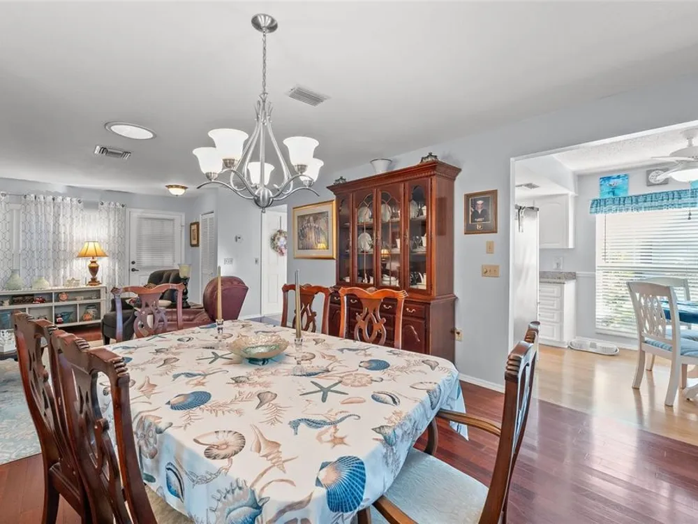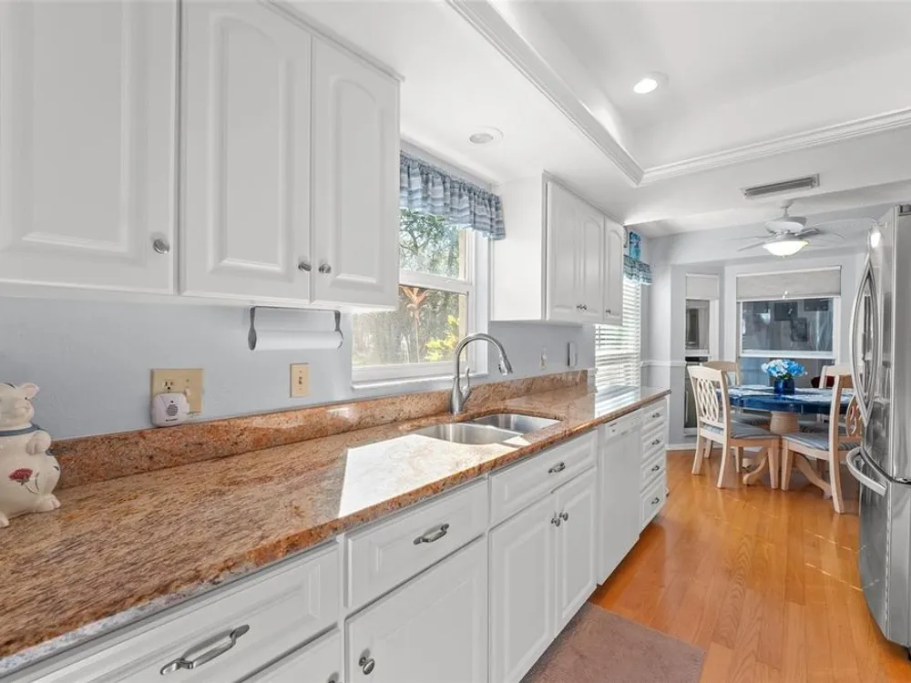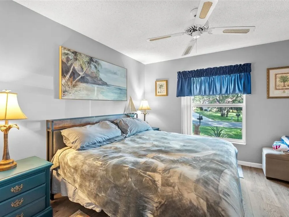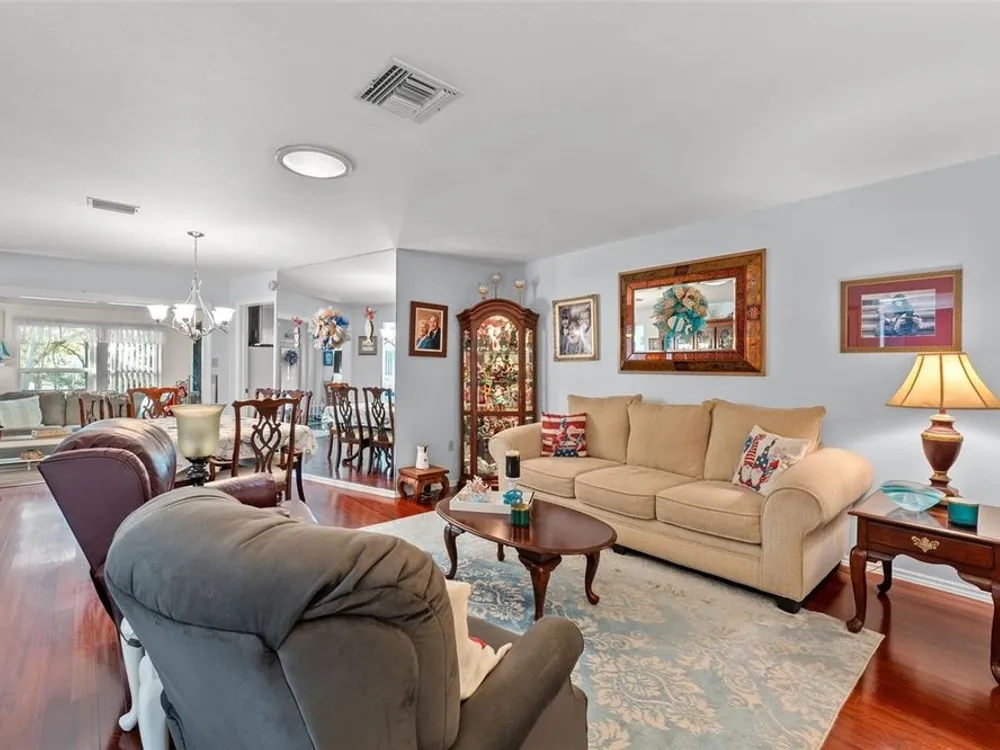 PENDING. WELCOME TO YOUR AWESOME GOLF COURSE HOME in the AWARD-WINNING 55+ COMMUNITY OF TIMBER PINES! Formerly a model center for Timber Pines, this home is uniquely positioned on an oversized lot with beautiful views of the #9 hole of the Hills Golf Course. It blends style, comfort, and location—perfect for Florida living. Step inside to a freshly painted interior, featuring wood flooring, a solar tube for natural light, and a spacious open-concept living and dining area. You'll love the generous lanai under heat and air, ideal for entertaining or relaxing year-round. The updated kitchen shines with granite countertops, new microwave and refrigerator, pantry, and a cozy kitchen nook. NEWER WINDOWS! The guest bedroom includes a large closet, and the guest bath features a granite-topped vanity and a tub/shower combo. The primary suite includes a walk-in closet and an en-suite bath with granite vanity, walk-in shower, and linen closet. Enjoy morning coffee or evening sunsets from your screened patio overlooking the manicured fairways. Additional highlights include: Screened garage with bump-out for golf cart Golf cart included HVAC replaced in 2019 Transferable termite warranty Oversized lot Located in the highly sought-after Timber Pines, a gated 55+ active lifestyle community offering 4 golf courses, tennis, pickleball, 2 geothermal pools, clubhouse, fitness/wellness center, performing arts, Residents Activity Center, Full Service Restaurant, Dog Park, 24 hour Gated and Gaurded Security, Billiards Center, Wood Shop, Arts and Crafts, and over 100 Clubs. Spectrum High speed internet and 2 cable boxes included in HOA fee. A rare opportunity to own a former model home on a prime golf course lot—schedule your showing today!