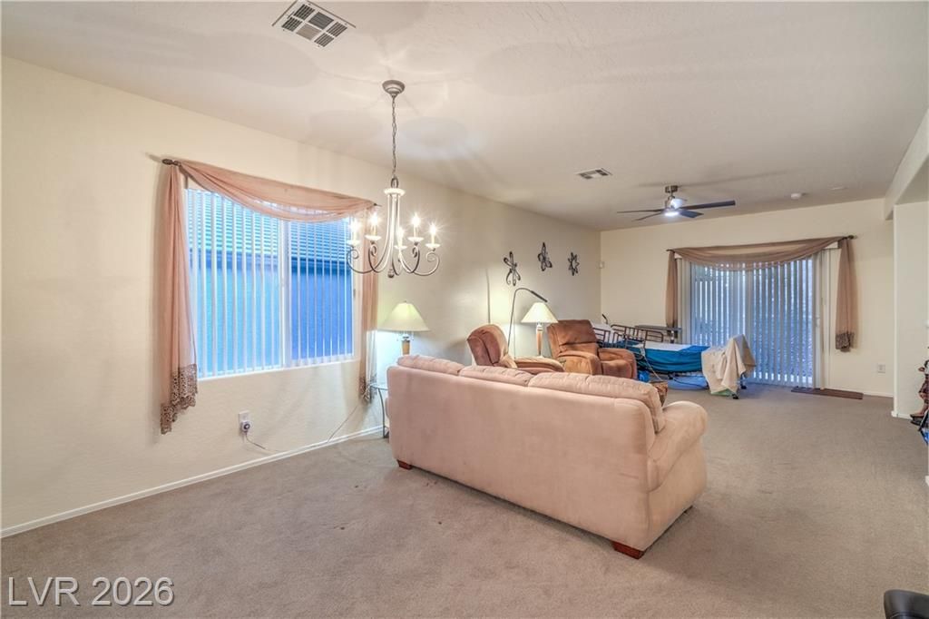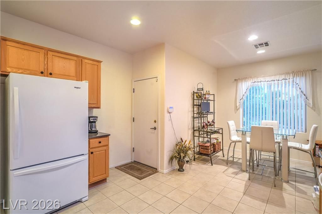 Charming Fremont Floor Plan in fantastic 55+ community! 1 story home with 1,425 sqft, 3 bedrooms, 2 baths, and a 2 car garage. The kitchen boasts Corian countertops, upgraded cabinets, large breakfast nook, pantry, recessed lighting, tile flooring, & all appliances. Enjoy a spacious great room w/ ceiling fan and dining area combination. The owner’s suite offers a ceiling fan, walk-in closet, and bath with double door entry, dual sinks, raised vanity, shower w/ enclosure, and comfort height toilet. Two secondary bedrooms with ceiling fans plus a secondary bathroom with raised vanity and shower w/ enclosure. Additional highlights include blinds, water filtration system, alarm system, laundry room with cabinets and washer/dryer, upgraded front door & security door, and freshly painted exterior (2 years ago). The backyard features a covered patio with gas BBQ stub, while the finished garage includes epoxy floor coating, cabinets, & refrigerator. Enjoy fabulous Solera at Anthem amenities!