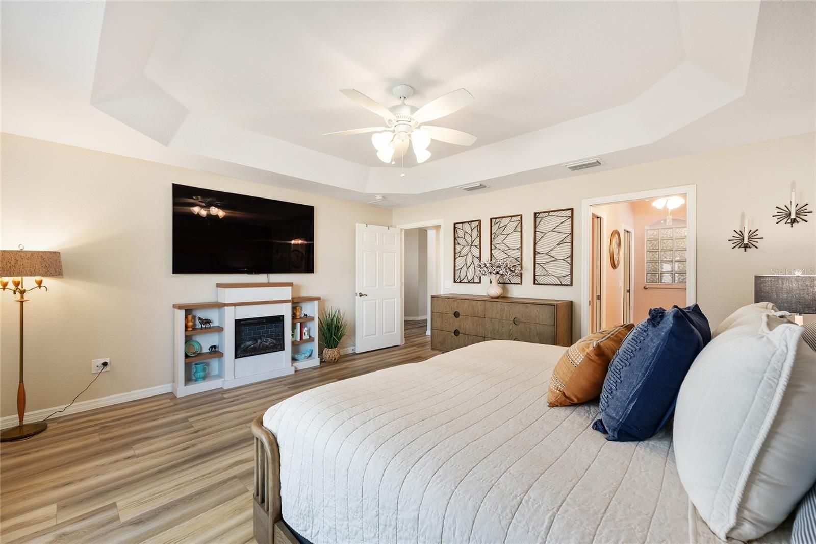 - Ceiling Fan(s), High Ceilings, Open Floorplan, Split Bedrooms, Thermostat, Tray Ceiling(s), Vaulted Ceiling(s), Walk-In Closet(s)