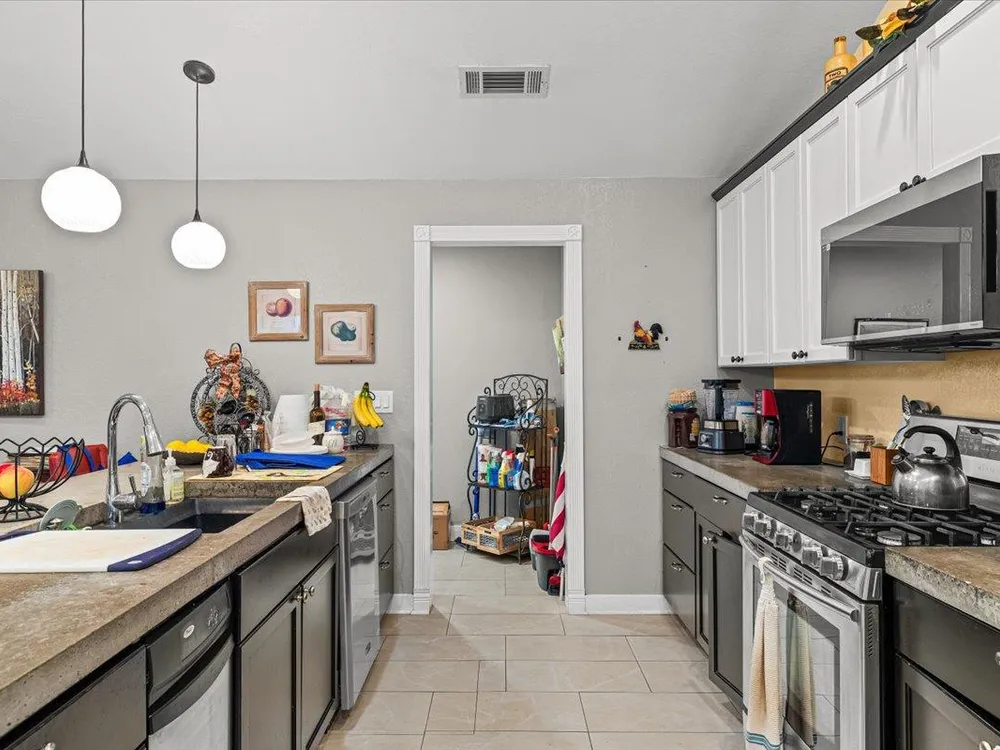 - Built-In Gas Range, Ice Maker, Dishwasher, Disposal, Microwave, Plumbed For Ice Maker, Tankless Water Heater