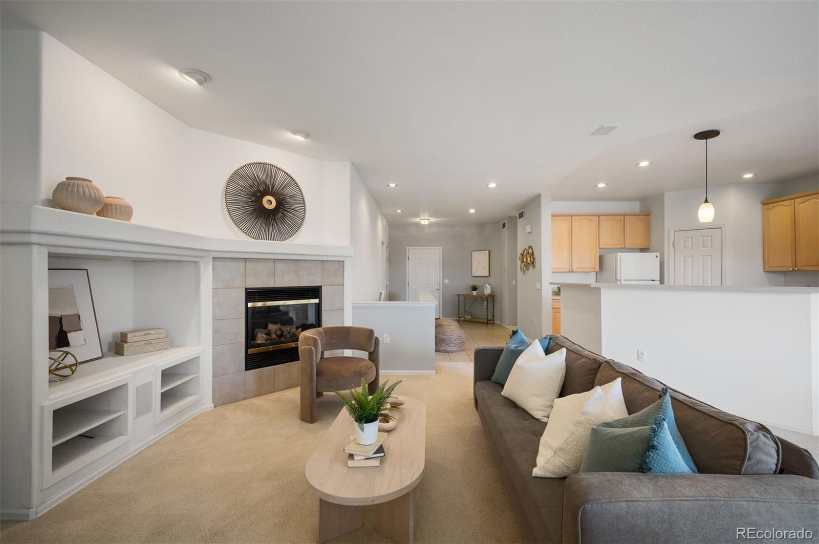 OPEN HOUSE: Saturday, Nov. 22 from 11am - 3pm - Call or Text listing agent Jen Kim for gate code 303-775-2200. NEW Roof! (2024). Plus, NEW Furnace and Water Heater! (2023). Active and social living in Heritage Eagle Bend Golf Club, a 45+ gated community featuring an 18-hole, par 72 championship golf course designed by highly regarded and prolific course architect Arthur Hills! A grand clubhouse, Eagle’s Nest restaurant for on-site dining, takeaway, wine, and snacks, indoor and outdoor pools, workout facility, multiple sport courts including pickleball, tennis and bocce, event spaces, a library, and a billiards room for vibrant socializing opportunities or simply enjoying the plentiful amenities. This Legacy 601 floorplan home features a covered front porch, 2 bedrooms and 2 bathrooms plus a generously sized laundry room with office space, and a walk-out, unfinished, basement to potentially double your home's finished square footage! Open kitchen with spacious walk-in pantry, smooth counters, and barstool height seating offers versatility for dining, cooking, and living. Gas fireplace and built-in entertainment nook in the living room add warmth in the central heart of the home. Two private patios - a deck on the main floor and a covered patio outside of the walk-out basement - for enjoying ideal Colorado weather. Attached 2-car garage with plentiful storage, built-in worktable, and shelving. Walk-out basement provides unfinished square footage to double your home’s living space and bring your design dreams to life with your custom touches!