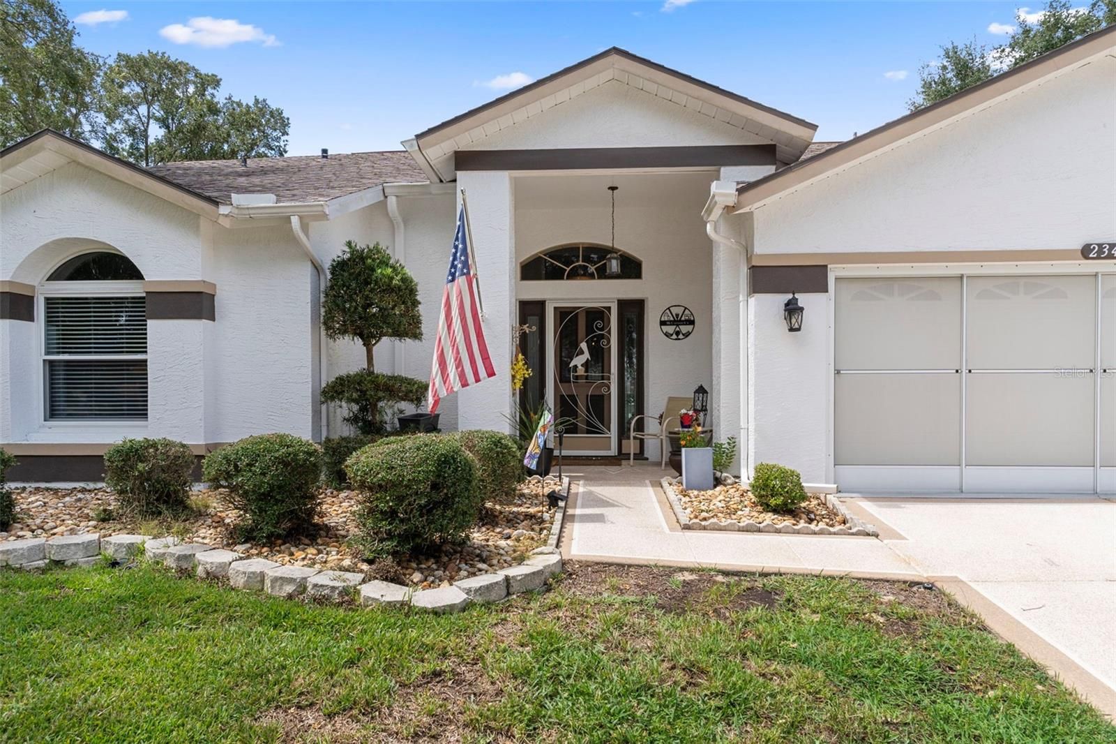 Welcome to this totally updated FURNISHED POOL HOME. SOLAR HEATED POOL WITH NEWER POOL PUMP. The open floor plan is so inviting to entertain guests and family. Upon entering the home through the etched lead lass font door you will notice the unique architectural flare of the arched entrance to the family room and the crown moldings. This home has character and shows pride of ownership. Once inside the family room thee custom built wet bar will be sure to catch your eye. The updated kitchen offers tons of cabinets and granite counter tops with a new microwave. New matching luxury vinyl flooring throughout except for the bathrooms and kitchen, Beautiful newer hurricane impact windows and sliders modernize this home. Welcome out back to your large pool deck which is large enough for many pool parties in your oversize 12X34 pool that is 6.5ft deep. In addition the newer hot tub will convey with the home. The pool cage has been recently rescreened and the home includes storm curtains to protect the lanai area. The home offers an inside laundry room with a 2 car garage that contains a club car golf cart included in the sale of the home. Attic fans and gutter guards were recently installed. In addition the primary bathroom has a walk in shower with no step down. This home will be perfect for your Florida living. In addition the home is located in the resort community of TIMBER PINES. Live in and enjoy this active and amazing community with 4 golf courses, 2 putting greens, a driving range, 2 pro--shops, tennis, pickleball, a multimillion dollar fitness center, 2 community pools and hot tubs, a full time restaurant, and a performing arts center. Numerous clubs and activities along with great entertainment throughout the year. Call today for a showing.