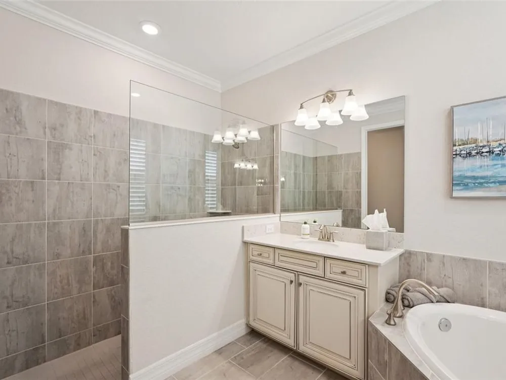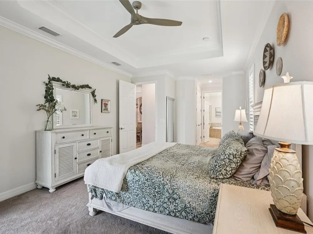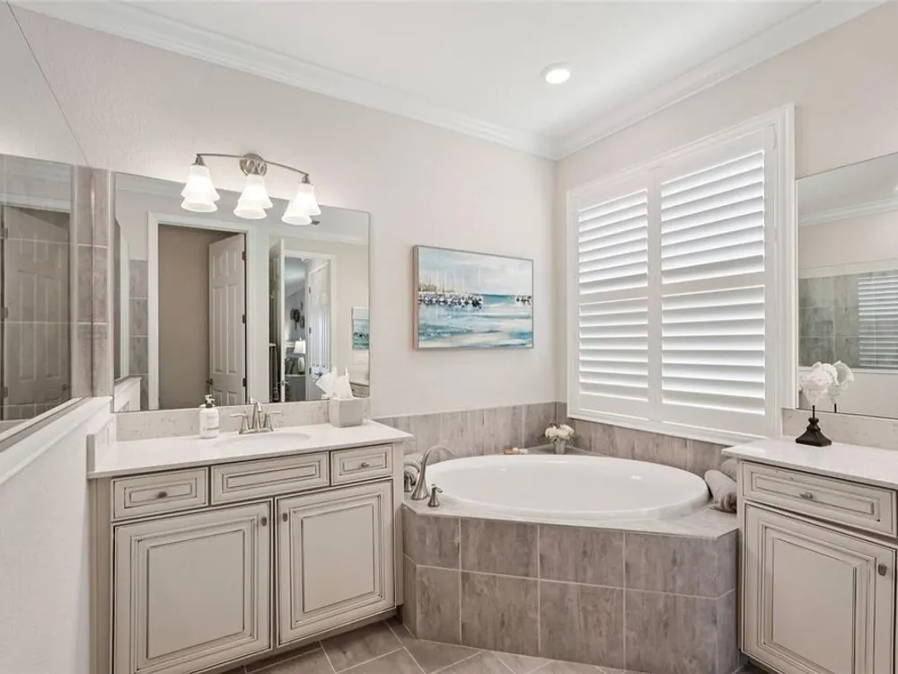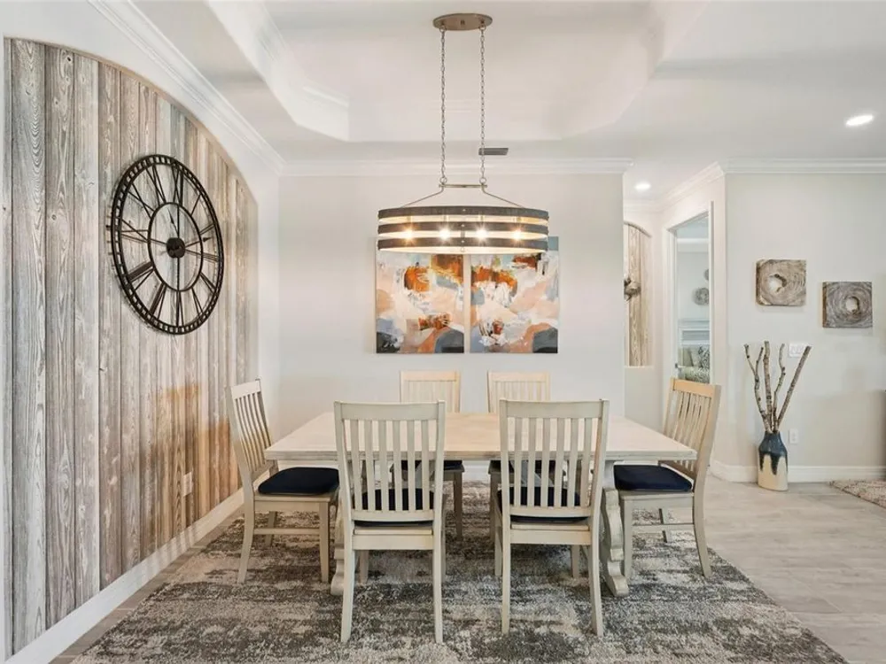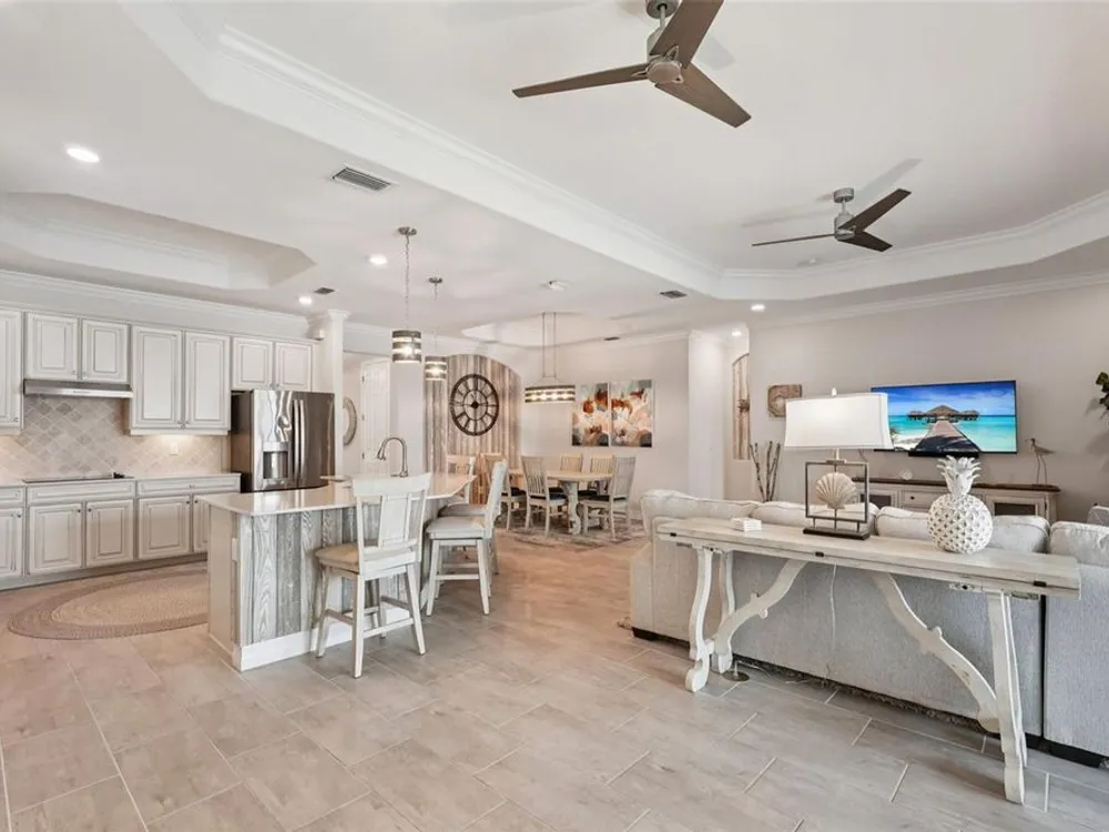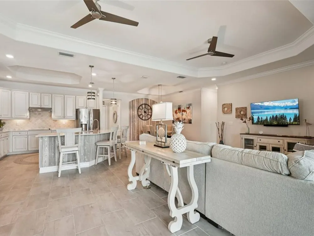 - Built-in Features, Ceiling Fan(s), Crown Molding, Dry Bar, Eat-in Kitchen, High Ceilings, In-Wall Pest Control, Kitchen/Family Room Combo, Living/Dining Room, Open Floorplan, Main Level Primary, Solid-Wood Cabinets, Stone Counters, Thermostat, Tray Ceiling(s), Walk-In Closet(s), Wet Bar, Window Treatments