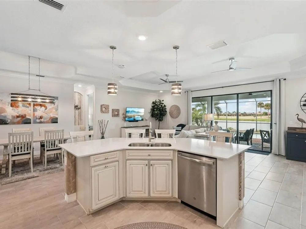 Seller to credit Buyer Golf Assessment at closing! This 2 bedroom, plus den/office, 3 bath pool home is on one of the premier lots in Sarasota National with beautiful sunsets out back over the pool. The water view takes you to the 11th fairway and this beautifully decorated home has over $25,000 in upgrades, a 15' x 30' saltwater pool situated in an extra large lanai with an outdoor bathroom for convenience. Inside, you'll find a bright, open floor plan with a spacious kitchen featuring modern appliances, granite countertops, ample cabinetry, wet bar, custom trim and a center island perfect for entertaining. The living and dining areas flow seamlessly out to the lanai with pool bath, creating an ideal indoor-outdoor lifestyle. The owner's suite includes a large walk-in closet and spa-like en-suite bath, while the den offers flexibility as a home office, media room, or guest space. Step outside to your privacy screened saltwater pool and Lanai, where you can relax and enjoy panoramic lake views and breathtaking sunsets, along with a front-row seat to Sarasota National's challenging 11th hole. A dream setting for golf lovers and nature enthusiasts alike.This home includes two golf memberships to the community's championship golf course that will be undergoing a multi-million dollar renovation in March, 2026. Sarasota National is managed by Troon and offers world-class, resort-style amenities, including tennis, pickleball, a fitness center, resort pool with spa, and more. Dine at the upscale Palm Club Restaurant or enjoy cocktails and conversation at the members-only 19th Hole or Poolside Tiki Bar. This home is also conveniently available furnished. Schedule your showing today and Live where you Play at 23463 Waverly Circle in Sarasota National's Golf Village!