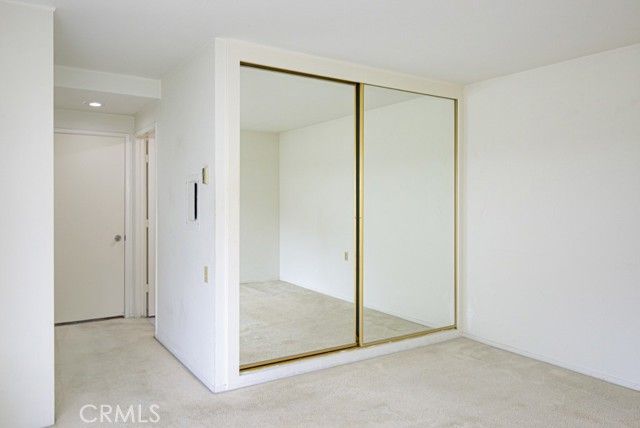 Welcome to 2347-B Via Mariposa West – a single-level, two-bedroom, two-bath San Sebastian residence in the Laguna Woods senior community. The living room has a vaulted ceiling and looks onto the front patio. There is a large en suite primary bedroom. The guest bedroom could serve as a home office, workout room or arts and crafts studio. One bathroom has a tub/shower combo while the other has a shower only. A heating/cooling wall unit is centrally located in the dining area as well as radiant heat throughout the unit. Hookups for a stackable washer-dryer unit are conveniently located in a hall closet. Aside from a few upgrades including smooth ceilings, granite kitchen countertops and mirrored bedroom closet doors, this property is mostly original and a terrific opportunity for a new owner to customize this home and make it their own. The covered front patio contains large storage cabinets and is well suited for year-round outdoor dining, entertaining and relaxing. A back door opens to a small courtyard shared by the other two units in the building. The positioning of the front and back doors provides a delightful cross breeze on warm days. This residence is conveniently close to Gate 5 but gets minimal road noise. Additional storage cabinets are located in the nearby assigned carport. There is also ample street parking for guests.