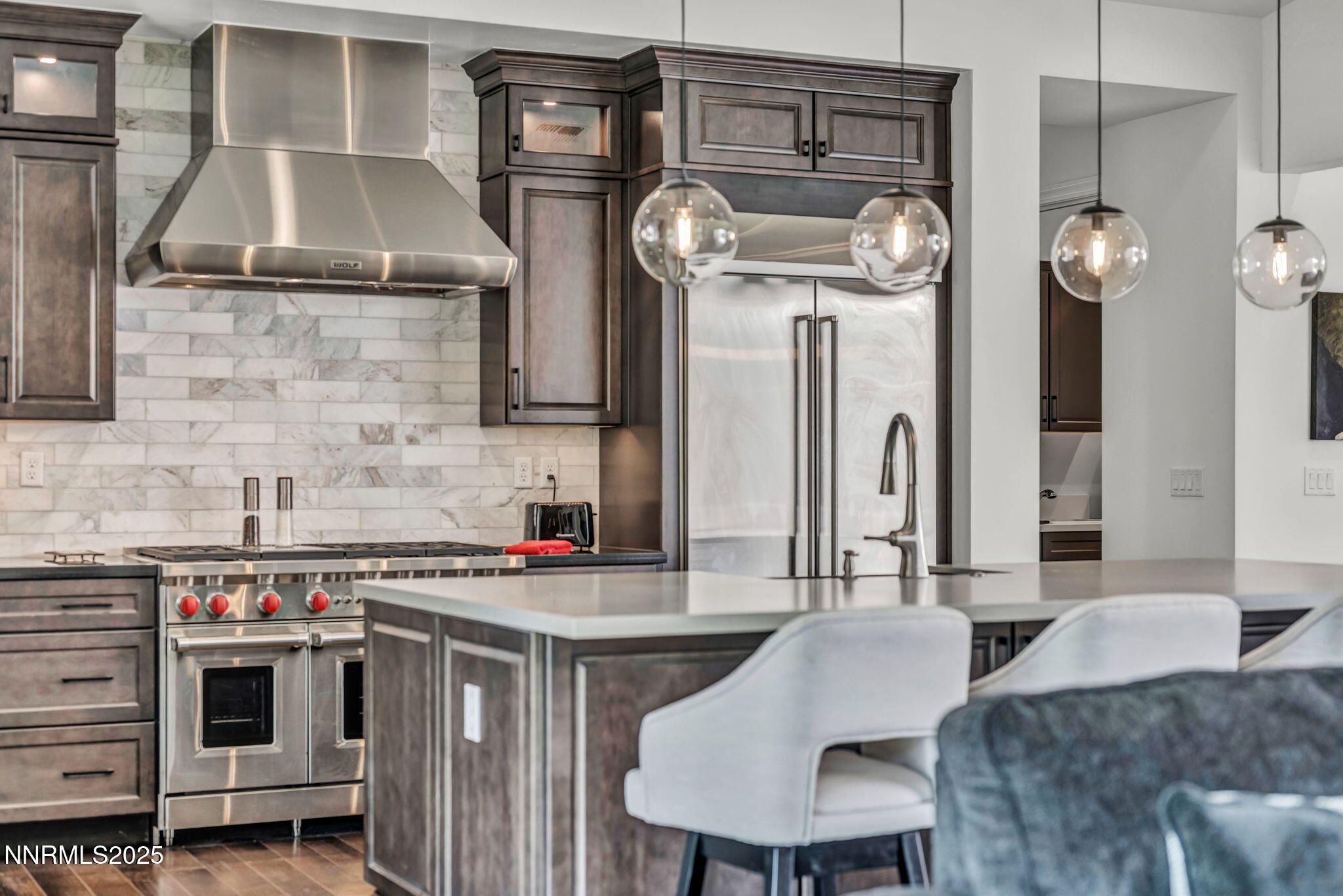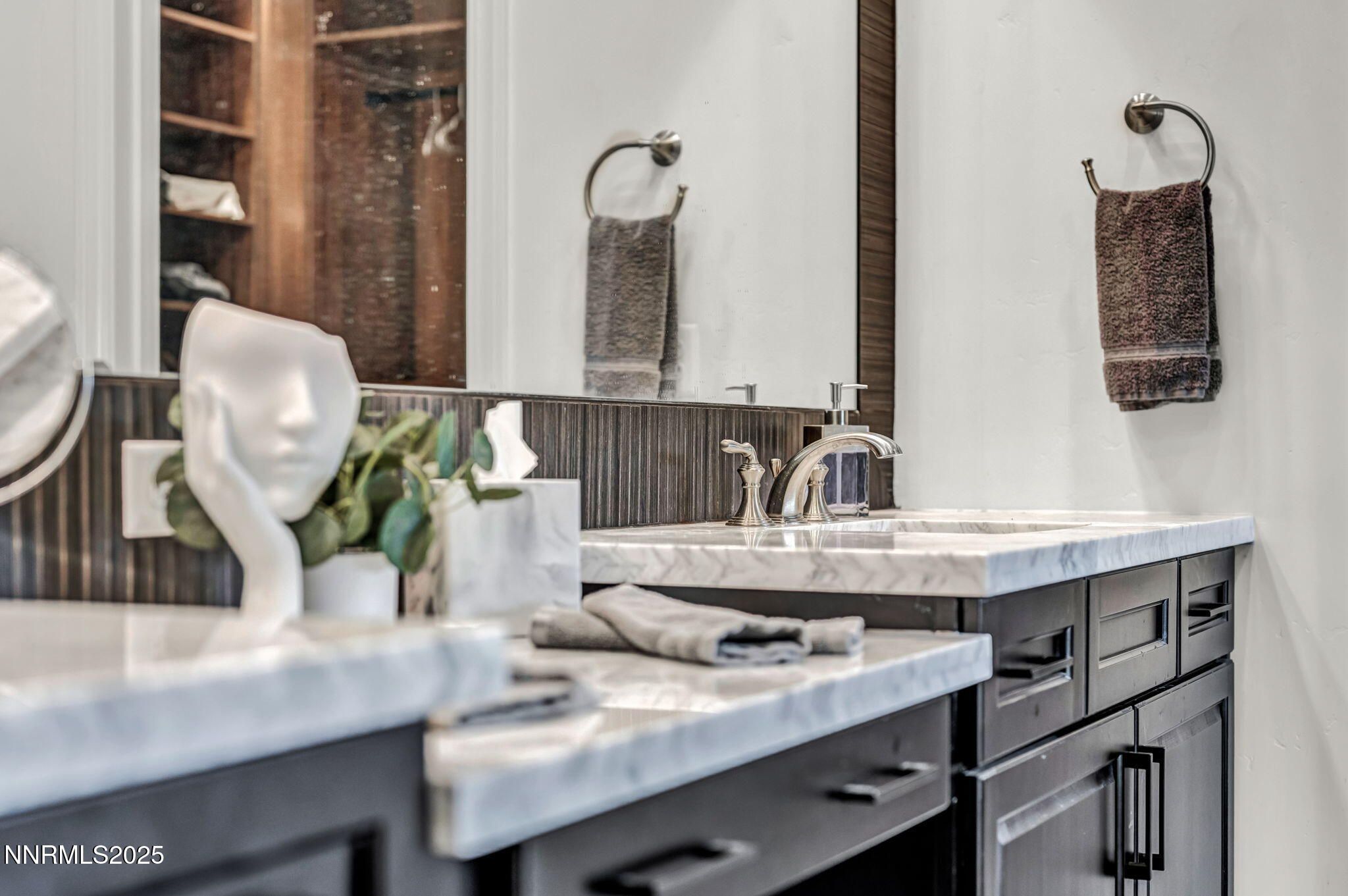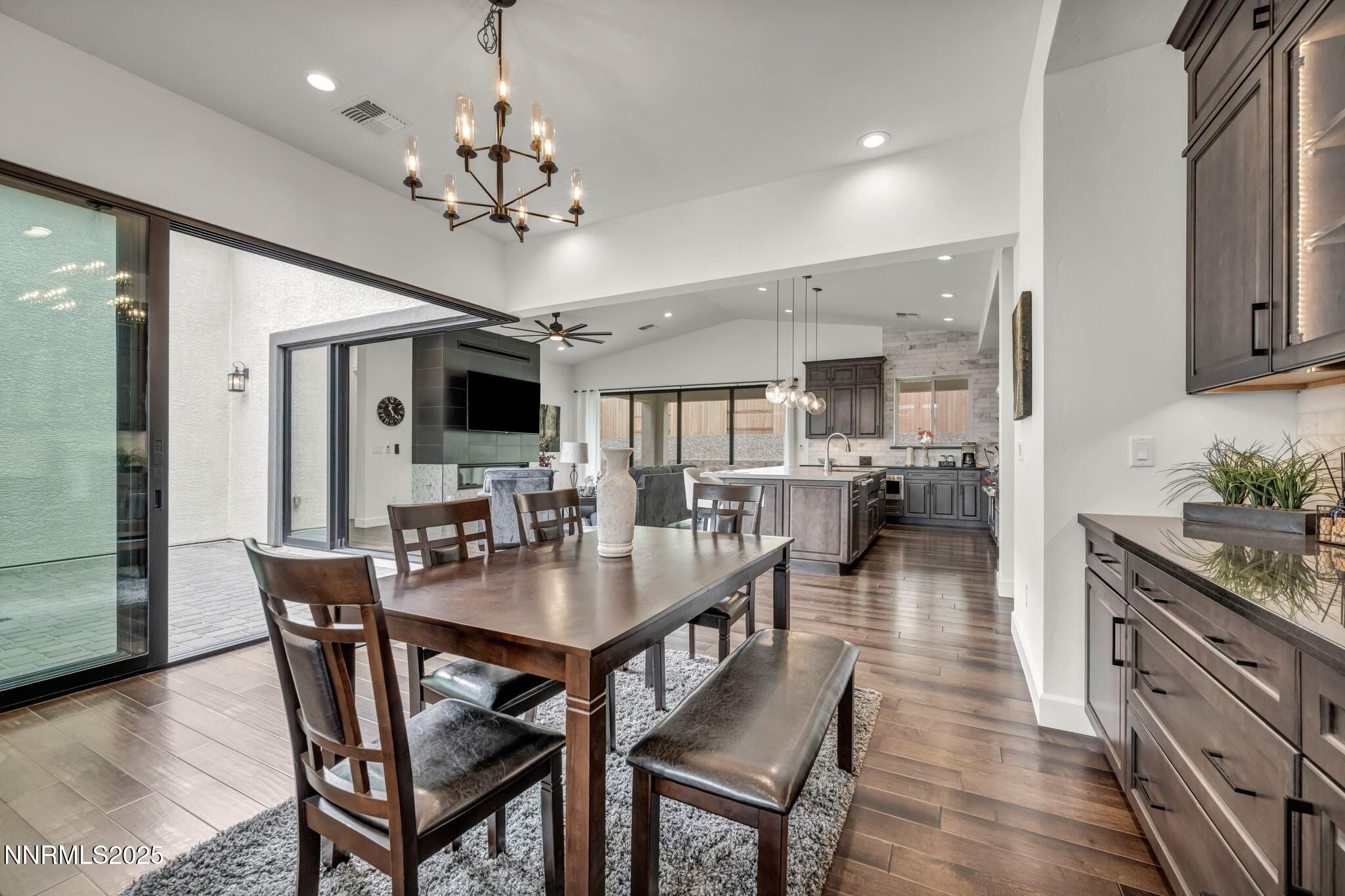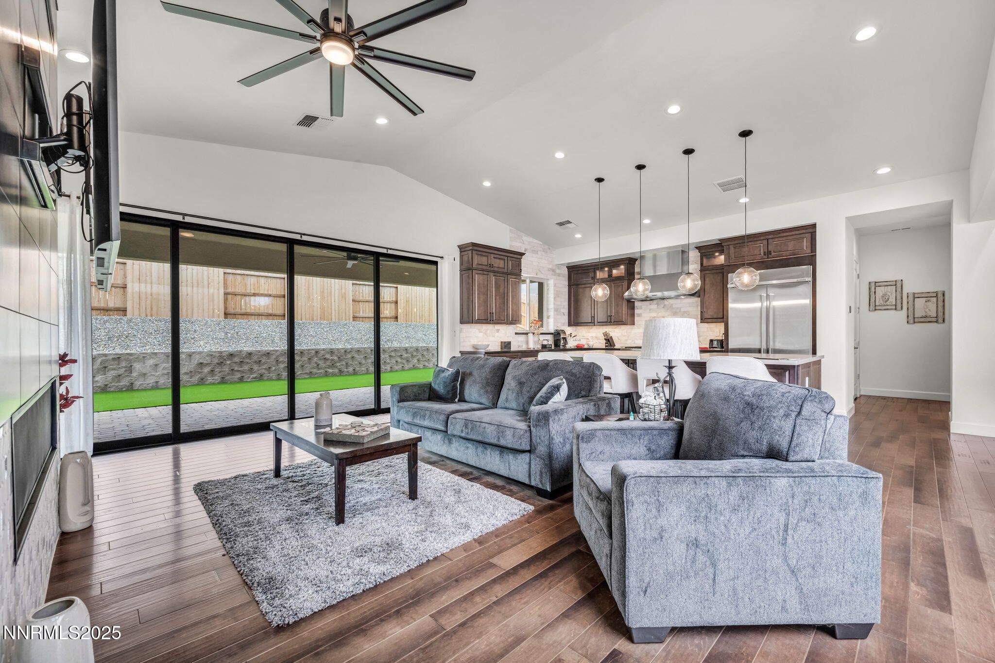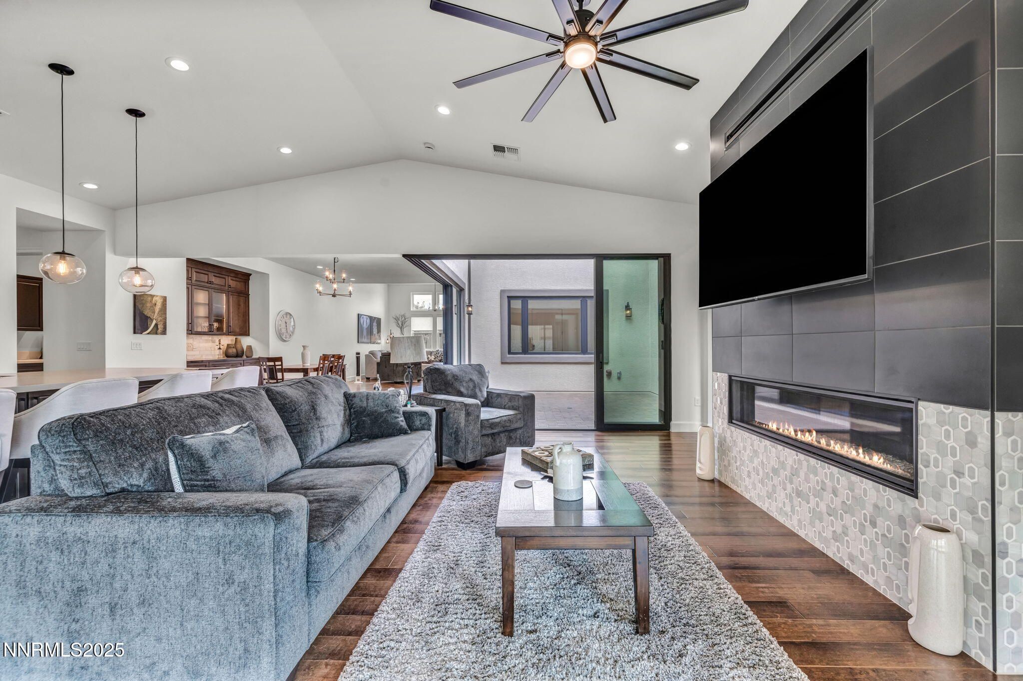 Built like a Model Home! Nestled just behind the private gates of Reno's most prestigious 55+ community, this home has all the bells and whistles to make you the talk of the neighborhood! Featuring a large open floor plan, and a Chef's kitchen with a large quartz Island, under cabinet lighting, high end WOLF appliances among other various high-end appliances, and high-quality cabinetry, entertaining is a breeze! The living room features tall-vaulted ceilings, a gorgeous floating 48' fireplace, engineered hardwood flooring, a 4-panel slider that creates a breezeway right into your backyard patio as well as a private and peaceful glass enclosed courtyard adjacent! The Primary bedroom is large and spacious, featuring a bathroom that is to die for! Complete with an incredible vanity with a makeup station and a huge single panel mirror, a Large walk-in shower with a sitting bench, and lastly a walk-in closet with high end built- ins', it's an absolute showstopper. Lastly, the back yard is as low maintenance as it gets fully outfitted in artificial turf and pavers for a nice, clean and easy look. There is so much more to this home with over 550k in custom upgrades throughout, Pictures don't do it justice. This home is an absolute must-see!