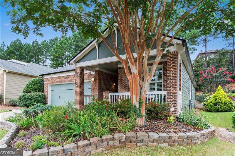 Welcome to this beautifully maintained 3BR/2BA, 1,937 sq ft ranch nestled in the guard-gated, amenity-rich community of Soleil Laurel Canyon. Built in 2007 and boasting a newer roof (2022) and NEW HVAC (2025), this home offers worry-free living in a vibrant, active-adult setting. Charming curb appeal greets you with lush landscaping and a classic covered front porch. Inside, elegant details like wainscoting, crown molding, plantation shutters, and faux-wood laminate flooring create a warm and refined ambiance. The spacious, open-concept layout includes a formal dining area and a large living room with a cozy fireplace-perfect for relaxing or entertaining. The bright, functional kitchen features a gas range, white cabinetry, built-in microwave, side-by-side refrigerator, and a cheerful breakfast nook. Retreat to the serene primary suite with tray ceilings, generous closet space, and a spa-inspired en suite bath complete with a garden tub, step-in shower, dual vanities, and a built-in makeup station. Two additional bedrooms and a full bath offer comfortable accommodations for guests. Enjoy your morning coffee or evening wine in the screened-in porch, or head out to the fenced backyard-ideal for gardening, grilling, or pets. Residents of Soleil Laurel Canyon enjoy world-class amenities: indoor/outdoor pools, fitness center, 30,000 sq ft clubhouse with commercial kitchen, 18-hole golf course, fishing lake, tennis & pickleball courts, walking trails, community garden, 50+ clubs, and more. Additional features include a 2-car garage, laundry room, professionally maintained landscaping, and a prime location-just 1.8 miles to Publix, 44 miles to Downtown Atlanta, and 55 miles to ATL Airport. Live your best life in one of Georgia's most sought-after 55+ communities!