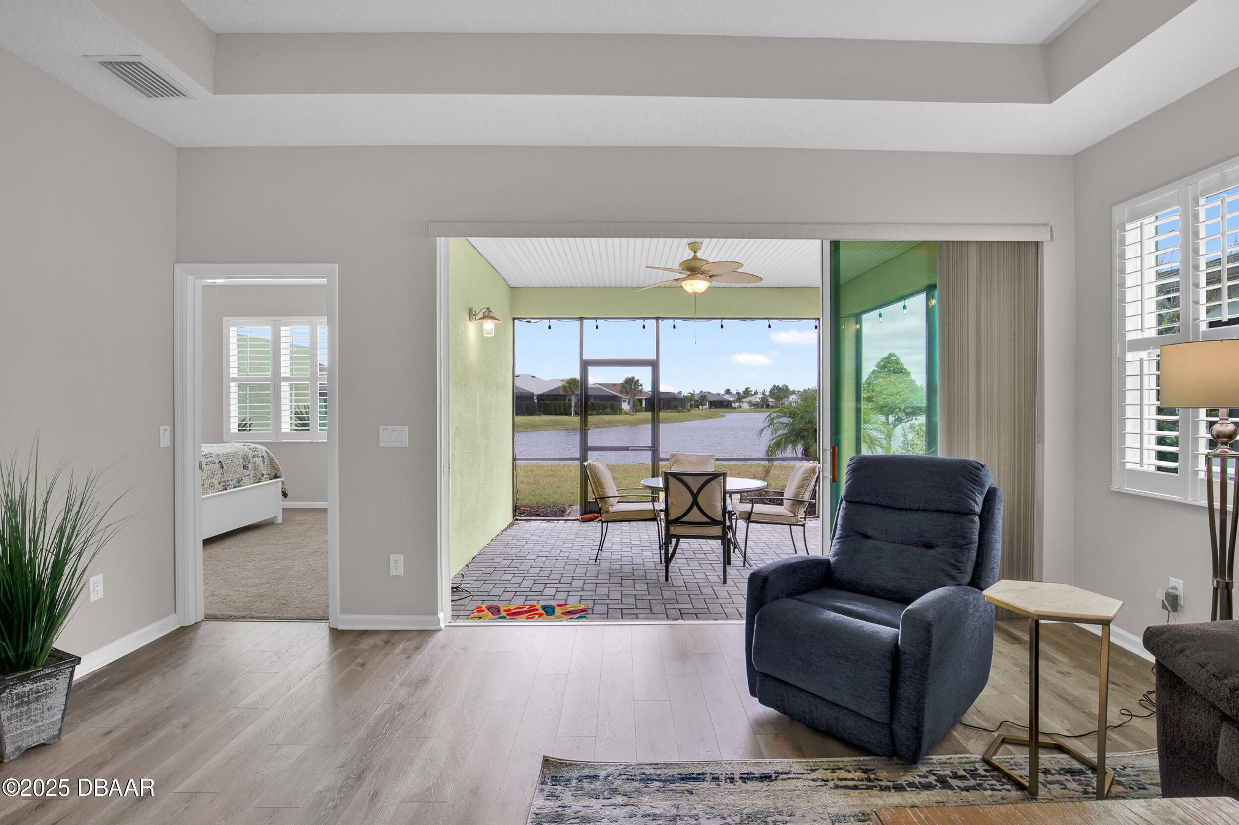 Beautiful Furnished Antigua Villa with Long Pond Views + Resort Living! Live the Latitude Margaritaville dream in this 3BR/2BA villa with serene pond views and a screened lanai. Short distance to Town Square and all the action. Enjoy a split floorplan, 2-car garage, laminate flooring, carpeted bedrooms, plantation shutters, and ceiling fans in every room. The bright kitchen features white cabinetry, quartz counters, French door fridge, double sink, pull-out drawers, and corner glass cabinet. Primary suite overlooks the pond; ensuite bath offers seamless glass walk-in shower. Bedroom 3 doubles as a den. Laundry room includes washer/dryer and lower cabinet storage. Residents enjoy a resort-style pool, Fins Up! Fitness Center, Latitude Bar & Chill restaurant, Free movies at the Last Mango Theater, Wood workshop, pickleball courts, and nonstop entertainment at Town Square.