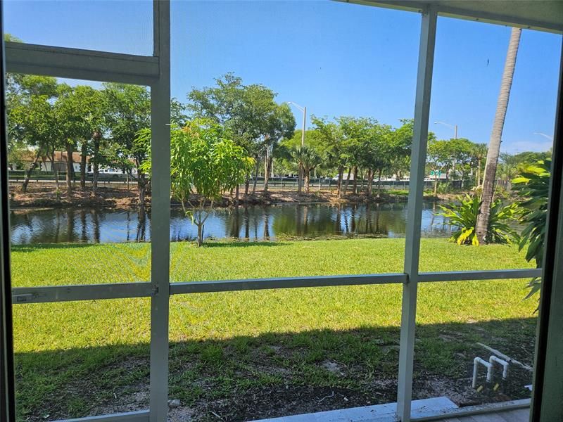 Updated 1/1 on the first floor in Century Village East, Durham F. New impact windows and front door, water resistant laminate throughout, new bathroom, 2 mini split a/c units, new water heater, updated kitchen with quartz counter and counter height bar, stainless appliances, new disposal, recessed lighting, and new interior doors. Enjoy the water view from your patio that has new screen and travertine pavers. Also, NO POPCORN on ceiling! Must see!!