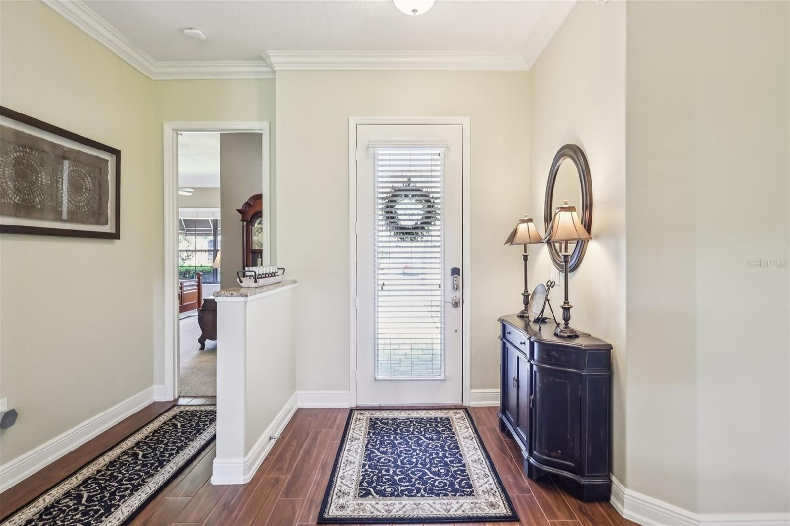 Live the Resort Life Every Day! This impeccably maintained Palm Island model offers the perfect blend of elegance and ease in the heart of Solivita’s award-winning 55+ community. From the moment you arrive, the exceptional curb appeal, featuring designer landscape curbing and lush tropical plantings, tells you this home is special. Step inside this spacious 2-bedroom, 2.5-bathroom sanctuary; where 8-foot doors, bay extensions and soaring windows flood the open-concept layout with natural light. The centerpiece of the home is the upgraded kitchen featuring gourmet LG appliances, solid wood cabinetry with crown molding and high-end pull-out shelving. Relax in the primary bedroom; a private owner's suite featuring a massive walk-in closet and adult-height vanities. The home has high-end finishes with a thoughtful mix of ceramic tile, wood-look tile, and designer lighting/ceiling fans throughout. The expansive great room transitions seamlessly to a screened-in lanai with newly finished epoxy-coated flooring—your private oasis for morning coffee or evening cocktails. THE SOLIVITA LIFESTYLE - Owning here isn't just about a house; it’s about access to over 150,000 square feet of world-class amenities. Break a sweat at the Riviera Spa with its indoor track and heated lap pool, or the tech-forward Palms Amenity Complex with a gorgeous lap pool, hot tubs, meeting rooms and a state of the art fitness center. There are two 18-hole championship golf courses (The Oaks and The Cypress), 17 Pickleball courts, 9 Tennis courts, Bocce, and Softball. Join any of the 250+ social clubs, take a class at Solivita University, or enjoy dinner at one of three on-site restaurants. The HOA provides true "lock-and-leave" convenience, covering complete lawn care (mowing, weeding, and irrigation), 24/7 guarded security, and even your high-speed internet and TV packages. This golf-cart-friendly community is located just minutes from the vibrant Village Center. Don't just buy a home—invest in your best life. Schedule your private tour today!