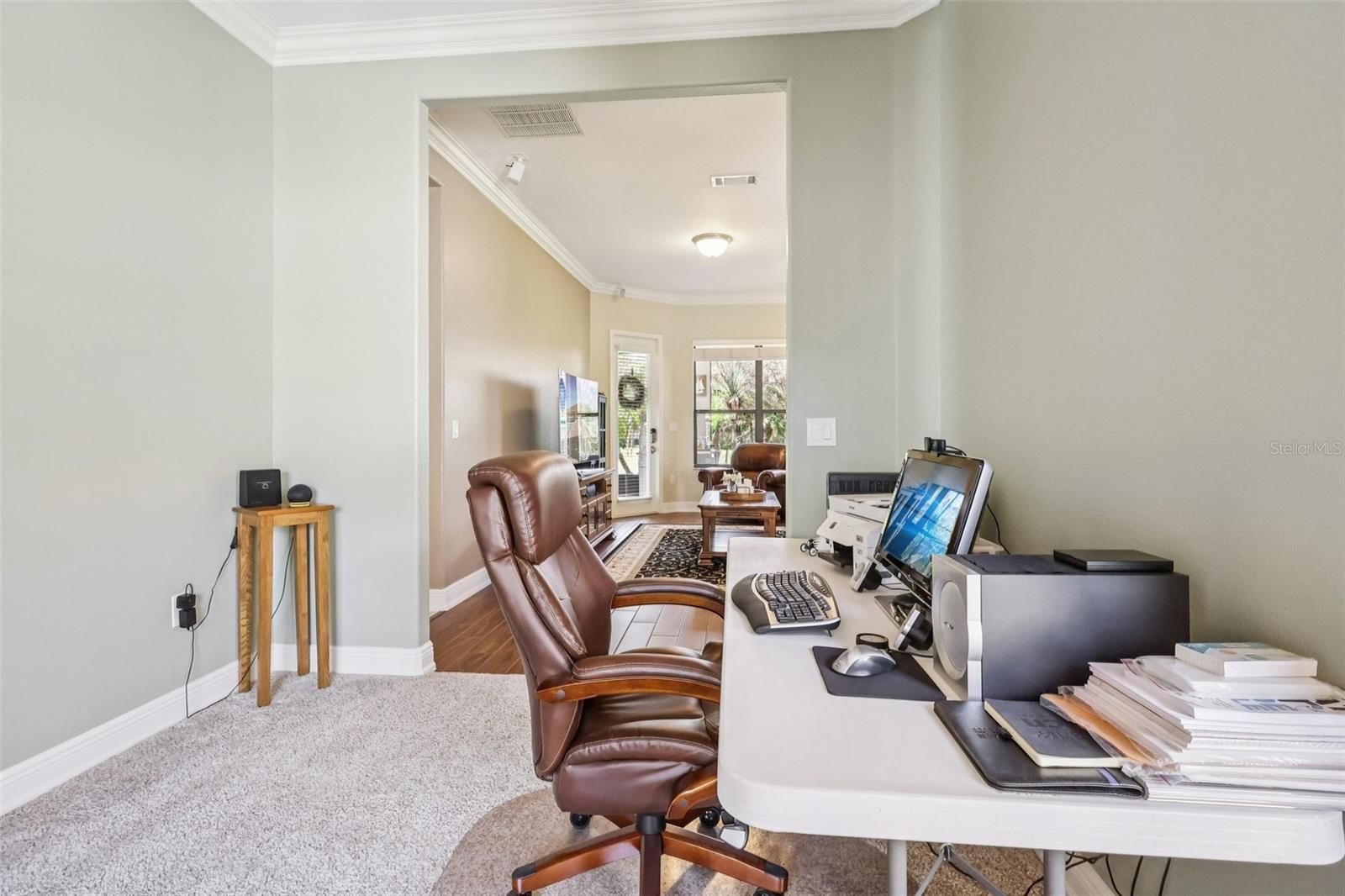 - Ceiling Fan(s), Crown Molding, Eat-in Kitchen, High Ceilings, Living/Dining Room, Open Floorplan
