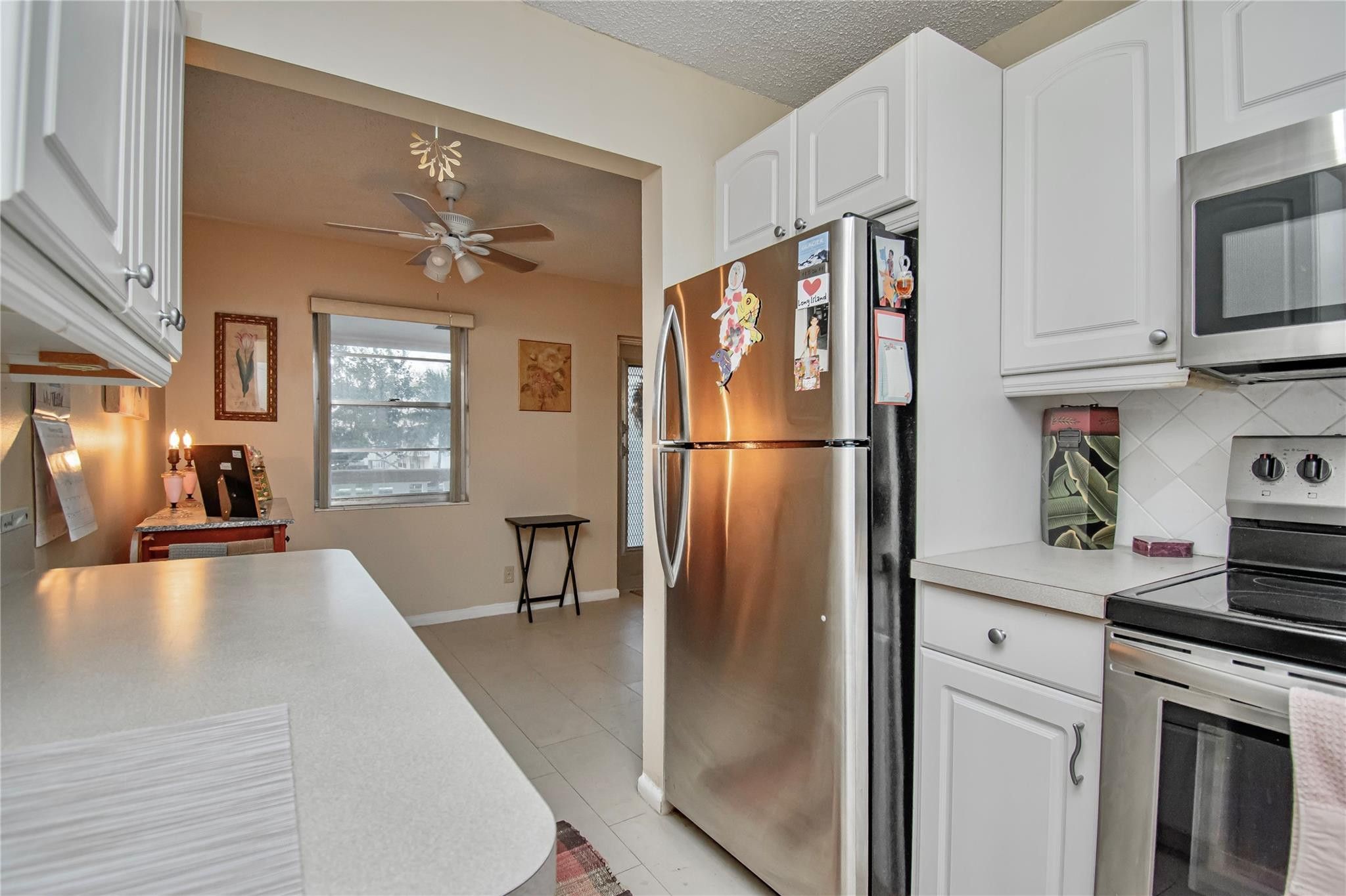 Discover this immaculate 2-bedroom condo in the highly sought-after gated community of Century Village. Enjoy resort-style amenities, including a massive clubhouse with a ballroom and theater, indoor & outdoor pools, tennis, shuffleboard, a state-of-the-art fitness center, sailing, and billiards room. Peace of mind with 24-hour security guards, along with all amenities included in the HOA. This well-maintained building received a new roof in 2022, and has no special assesments. The unit also features an updated kitchen with stainless steel appliances, white shaker cabinets, and a tile backsplash. Enjoy your morning coffee in the enclosed Florida Room with hurricane impact windows, you'll also be protected with front accordion hurricane shutters. 2021 AC. Call listing agent now for a tour!