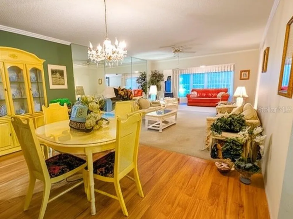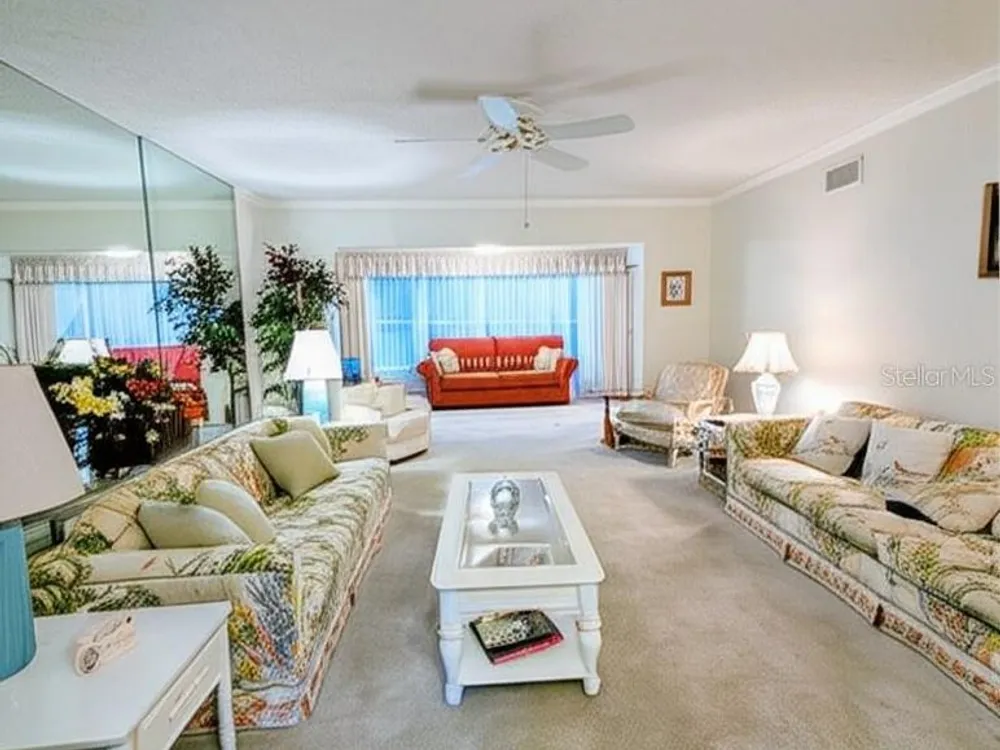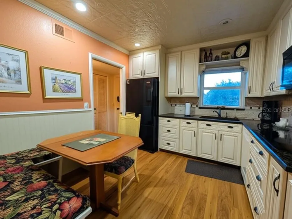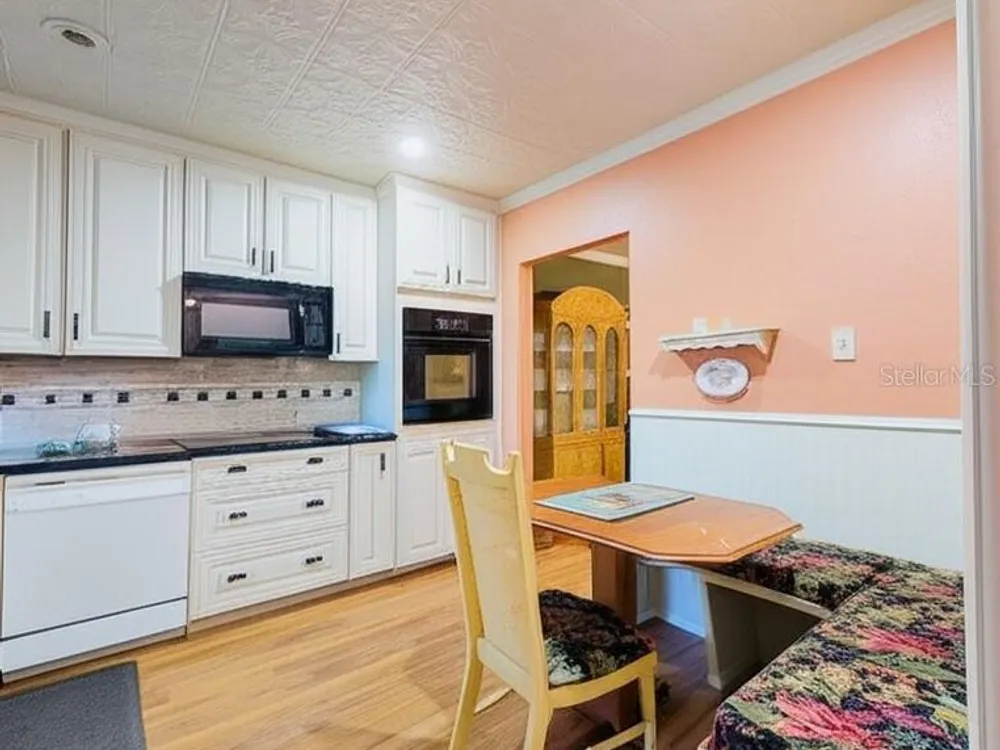 Spacious 2-bedroom, 2-bath, 1,400 sq ft condo in the On Top of the World community. A bright Florida room with a wall of windows brings in abundant natural light, and the living and dining areas provide comfortable space. The kitchen features ivory soft-close cabinets, granite countertops, a tin ceiling, and built-in banquette seating. The primary suite offers generous closet space and a tiled walk-in shower with a seamless glass door, complemented by rich cherry cabinets. Additional storage is available throughout the home. Community amenities include golf courses, pools, fitness centers, tennis, shuffleboard, social clubs, and more. This condo is offered fully furnished for an easy move-in.