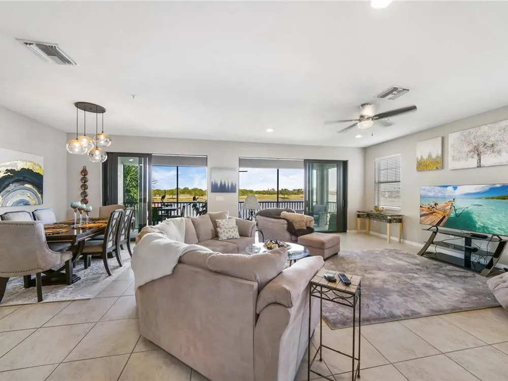 WCI Build and known for luxury quality homes. Sarasota National Turn-key Condo ready for new owners! Is that you? This condo features a Water AND Golf course view, and the view means a Golf Membership IS included. Inside you will find 2 full bedrooms with a den for your additional guests or home office/entertainment with custom French doors AND a sitting room aside from your open living and kitchen area. California Closets in the owners suite along with sleep number bed conveying. Wood flooring on stairway offers a clean entry. Lanai floor just freshly painted. Storage space added in the garage and additional fridge creates any extra storage you may need. Schedule your showing today!