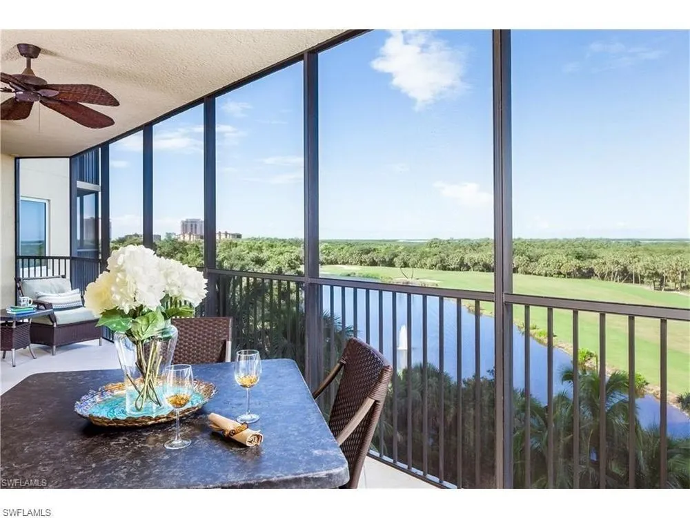 Welcome to Navona at The Colony at Pelican Landing! A fabulous retreat with an excellent view of the bay, golf course, pool and sunsets! Lowest priced sky home in The Colony by hundreds of thousands! One parking space under the building and one parking space on top of the garage. Total TWO spaces. Turnkey furnished! Recent updates include whole home freshly painted in neutral hues 2 years ago. All new tile flooring in the main living areas and den. 2 new toilets, new refrigerator, oven, range & microwave. Navona at The Colony has its own resort style pool, theatre room, gym, full time front desk manager and more! Residents of The Colony at Pelican Landing enjoy the following ALL included in your residency in addition to the building amenities. No Membership Required. TWO canoe and kayak parks with access to watercraft on Spring Creek. Tennis galore! Pickleball, bocce, fitness and a idyllic beach park island on The Gulf of Mexico with chairs, umbrellas, bathrooms. INCLUDED. Lastly, every resident in The Colony at Pelican Landing enjoys complimentary Membership to The Bay Club. A fabulous dining and activities club situated on the serene Estero Bay with formal and casual dining, live music at sunset a few times a week, event nights like NYE, Holiday dinners, Sports themed gatherings, Mothers Day and Easter Brunches, Trivia Nights, Pasta Nights and more! Don't miss this gorgeous home. Looking forward to meeting you and showing you around!